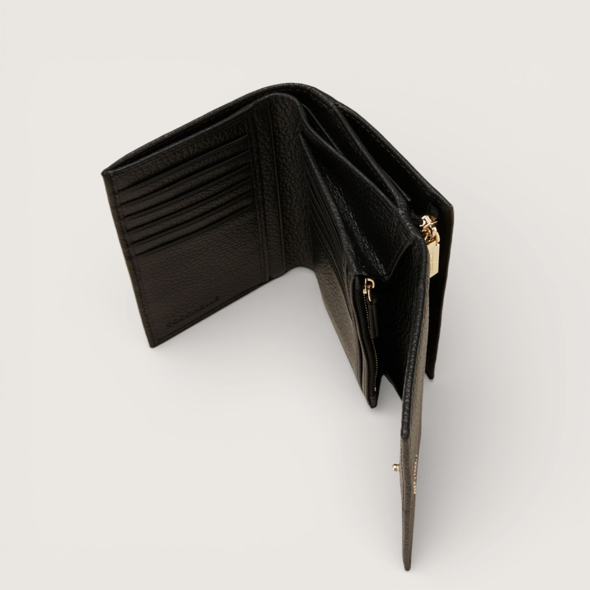 Гаманець Coccinelle виконаний із натуральної зернистої шкіри, що поєднує міцність та м’якість на дотик. Компактний формат робить його зручним для щоденного використання, а внутрішні відділення дозволяють організовано зберігати банківські картки, купюри чи дрібні речі. Стильний та практичний, цей гаманець стане ідеальним доповненням до сучасного ритму життя.