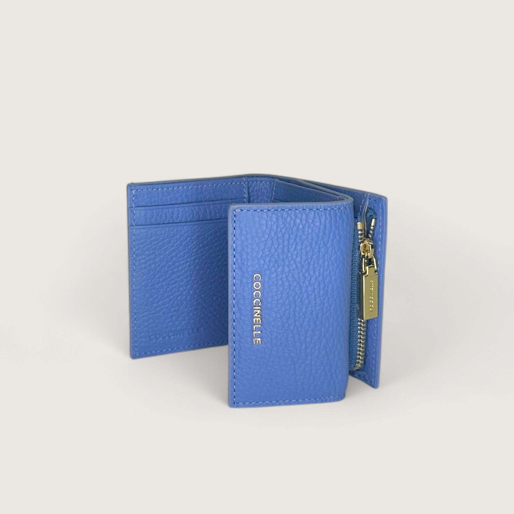 Елегантний і місткий гаманець з металевим відблиском прикрашений фірмовим логотипом Coccinelle. Його продумана та функціональна конструкція забезпечує зручне зберігання ваших речей, допомагаючи підтримувати порядок і надійно захищати все найнеобхідніше. Модель виготовлена з натуральної шкіри, обробленої на спеціалізованому обладнанні, а потім підданої тисненню для збереження її м’якості. Це міцний та невибагливий у догляді матеріал, що робить гаманець ідеальним для щоденного використання.