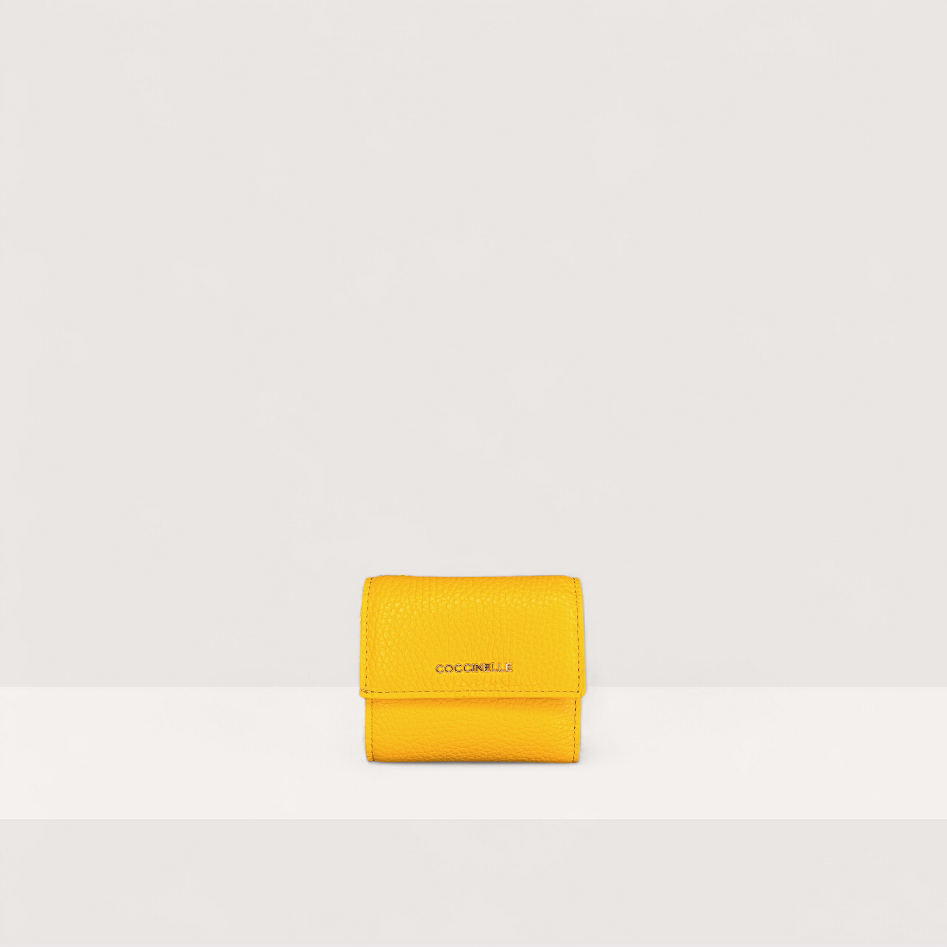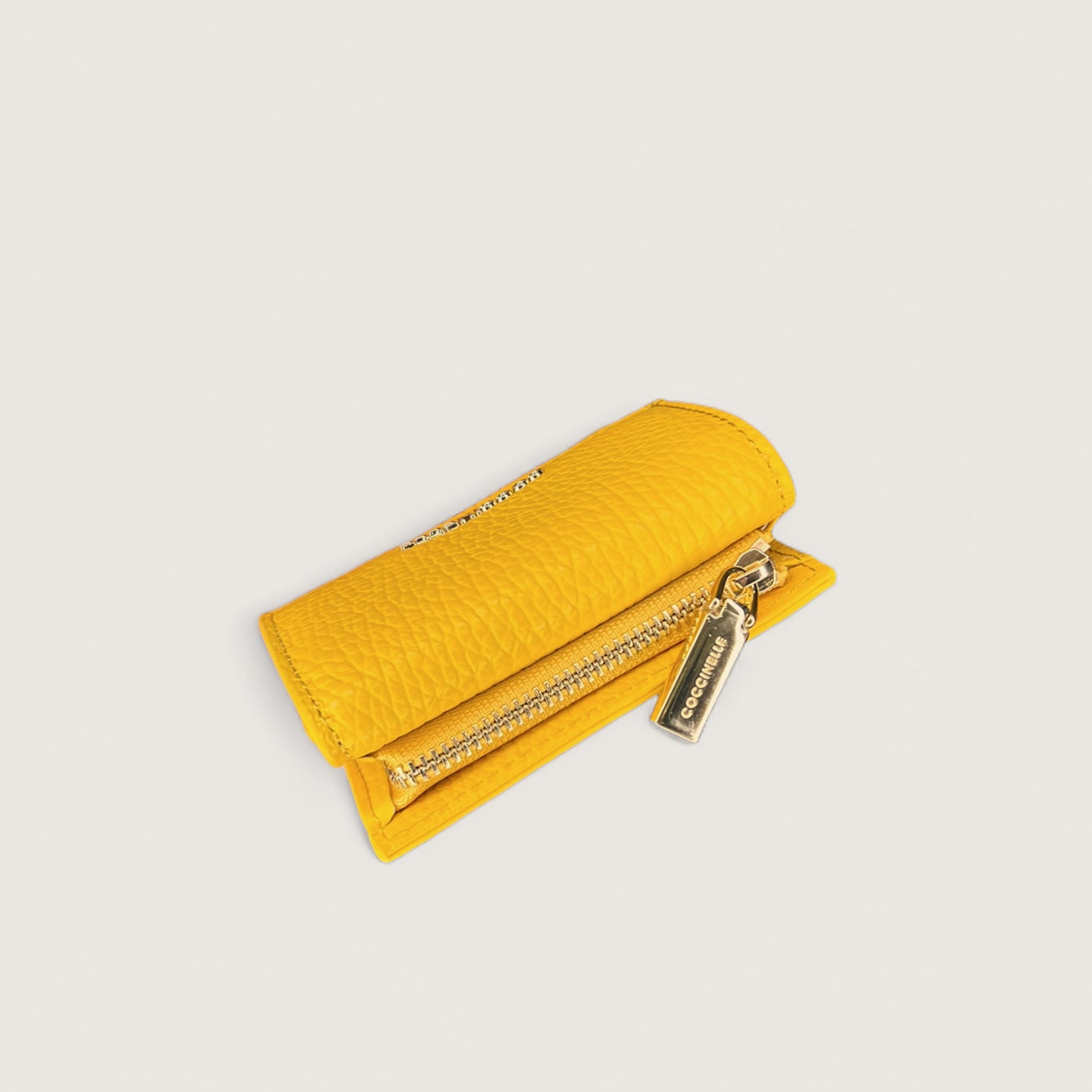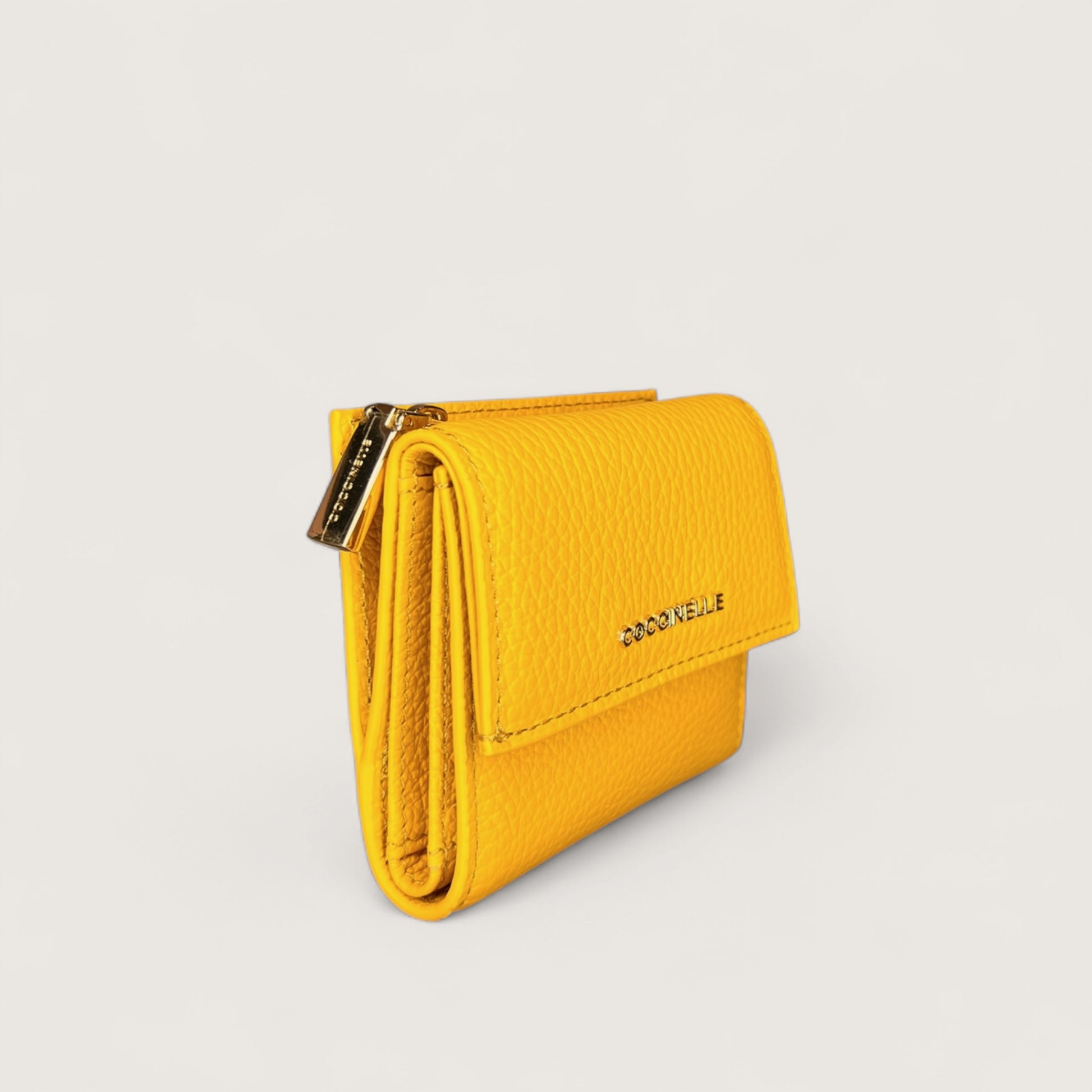 Елегантний і місткий гаманець з металевим відблиском прикрашений фірмовим логотипом Coccinelle. Його продумана та функціональна конструкція забезпечує зручне зберігання ваших речей, допомагаючи підтримувати порядок і надійно захищати все найнеобхідніше. Модель виготовлена з натуральної шкіри, обробленої на спеціалізованому обладнанні, а потім підданої тисненню для збереження її м’якості. Це міцний та невибагливий у догляді матеріал, що робить гаманець ідеальним для щоденного використання.