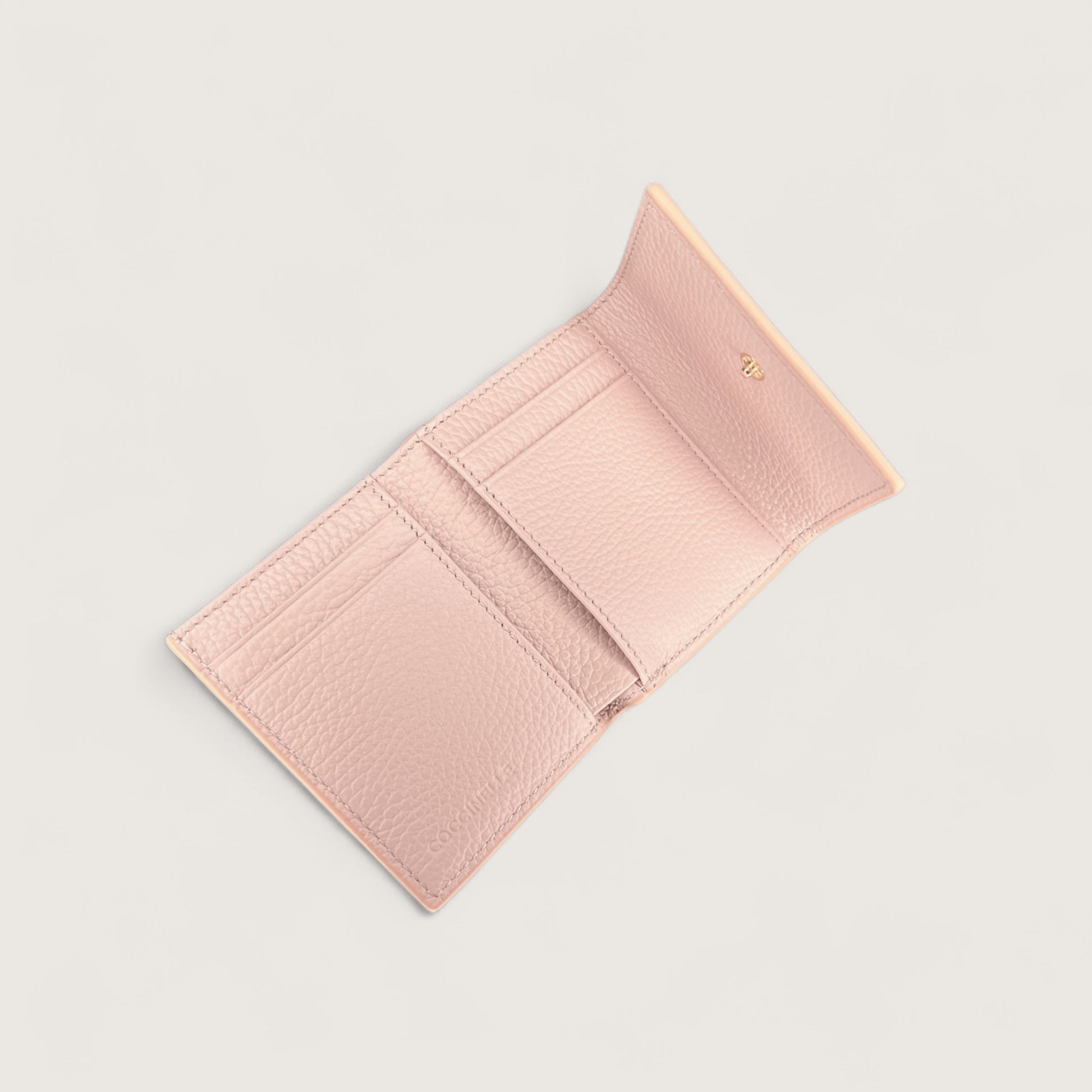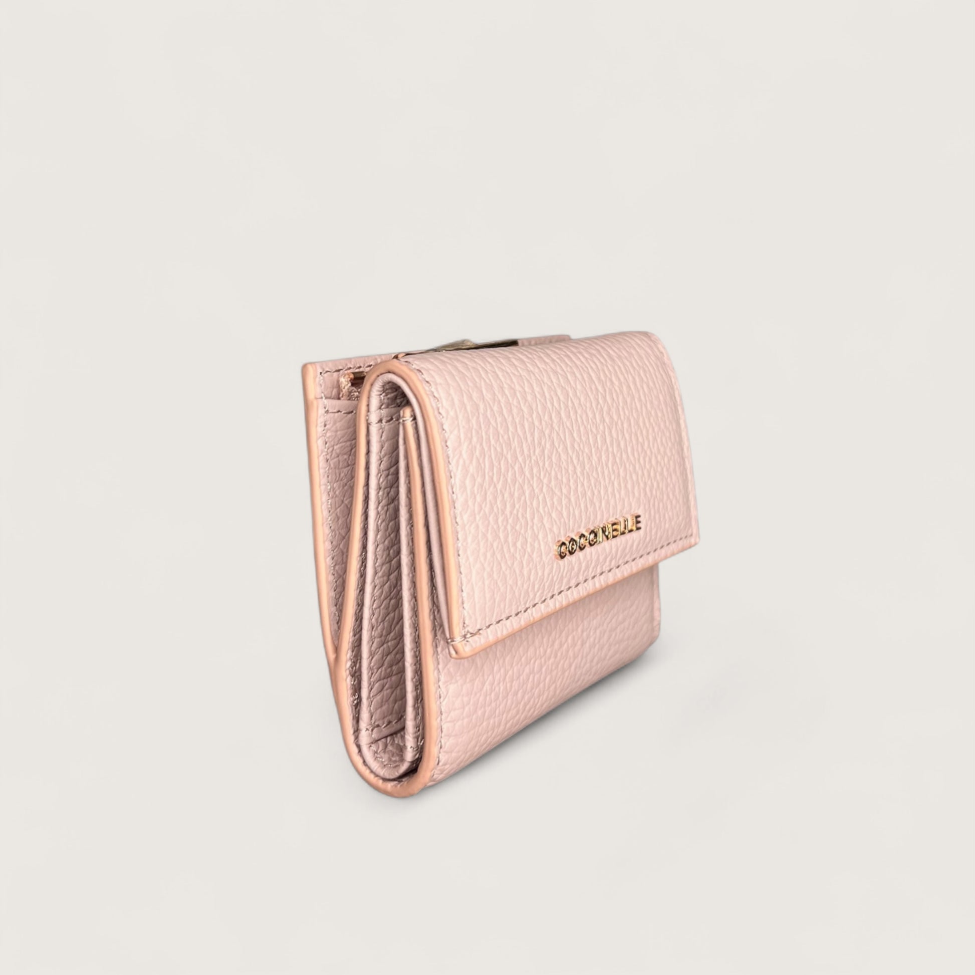 Елегантний і місткий гаманець з металевим відблиском прикрашений фірмовим логотипом Coccinelle. Його продумана та функціональна конструкція забезпечує зручне зберігання ваших речей, допомагаючи підтримувати порядок і надійно захищати все найнеобхідніше. Модель виготовлена з натуральної шкіри, обробленої на спеціалізованому обладнанні, а потім підданої тисненню для збереження її м’якості. Це міцний та невибагливий у догляді матеріал, що робить гаманець ідеальним для щоденного використання.
