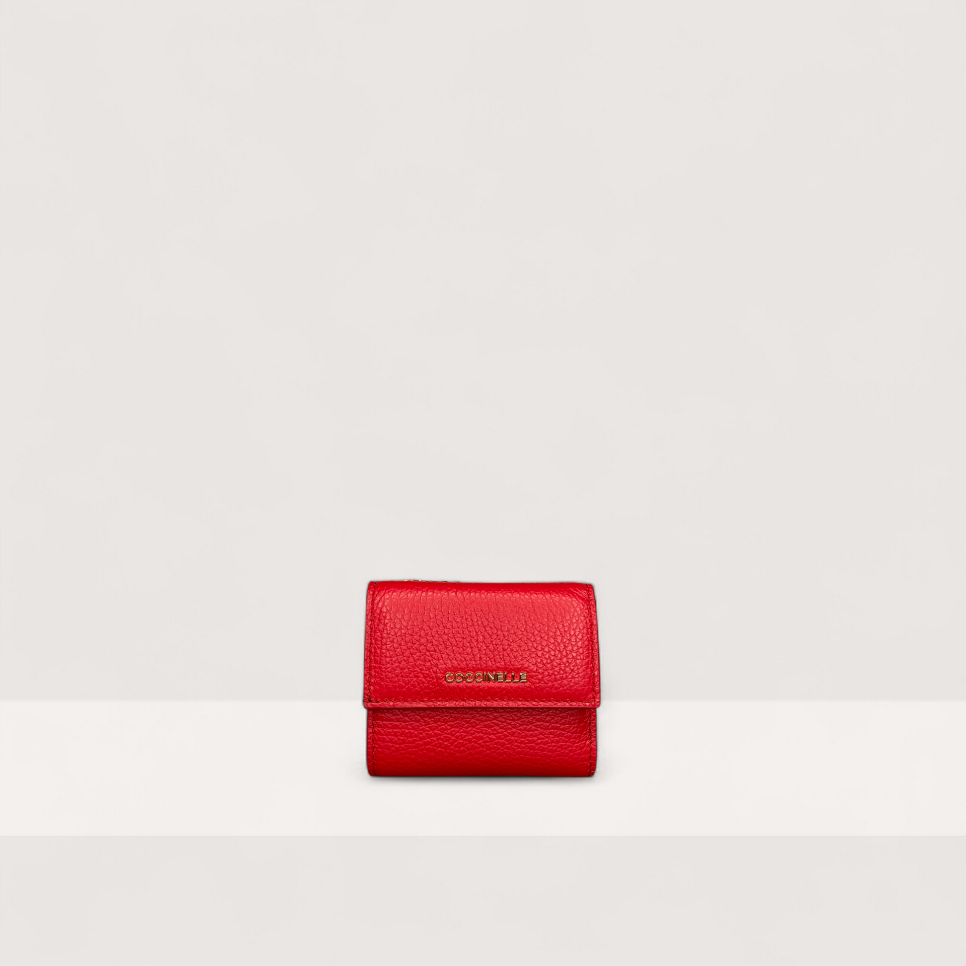 Елегантний і місткий гаманець з металевим відблиском прикрашений фірмовим логотипом Coccinelle. Його продумана та функціональна конструкція забезпечує зручне зберігання ваших речей, допомагаючи підтримувати порядок і надійно захищати все найнеобхідніше. Модель виготовлена з натуральної шкіри, обробленої на спеціалізованому обладнанні, а потім підданої тисненню для збереження її м’якості. Це міцний та невибагливий у догляді матеріал, що робить гаманець ідеальним для щоденного використання.