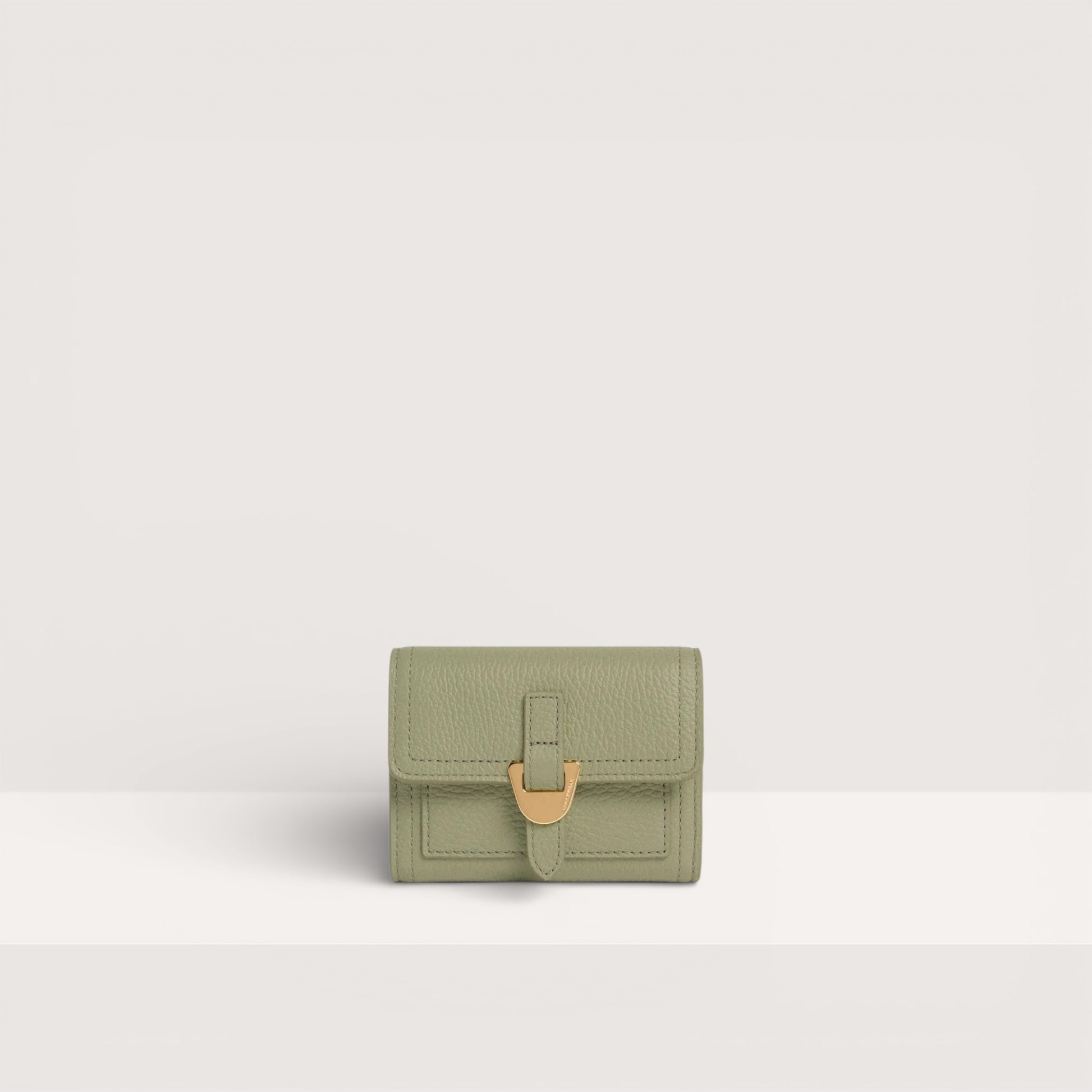 Цей гаманець з лінії Coccinelle Campus прикрашений металевим елементом у формі медіатора — фірмовою деталлю бренду. Внутрішній простір добре організований, що дозволяє зручно та охайно зберігати всі необхідні речі. Модель виготовлена зі шкіри, обробленої на спеціалізованому обладнанні та пом’якшеної методом барабанної обробки для збереження м’якості. Шкіра відзначається високою міцністю та легкістю в догляді, що робить цей гаманець ідеальним для щоденного використання.