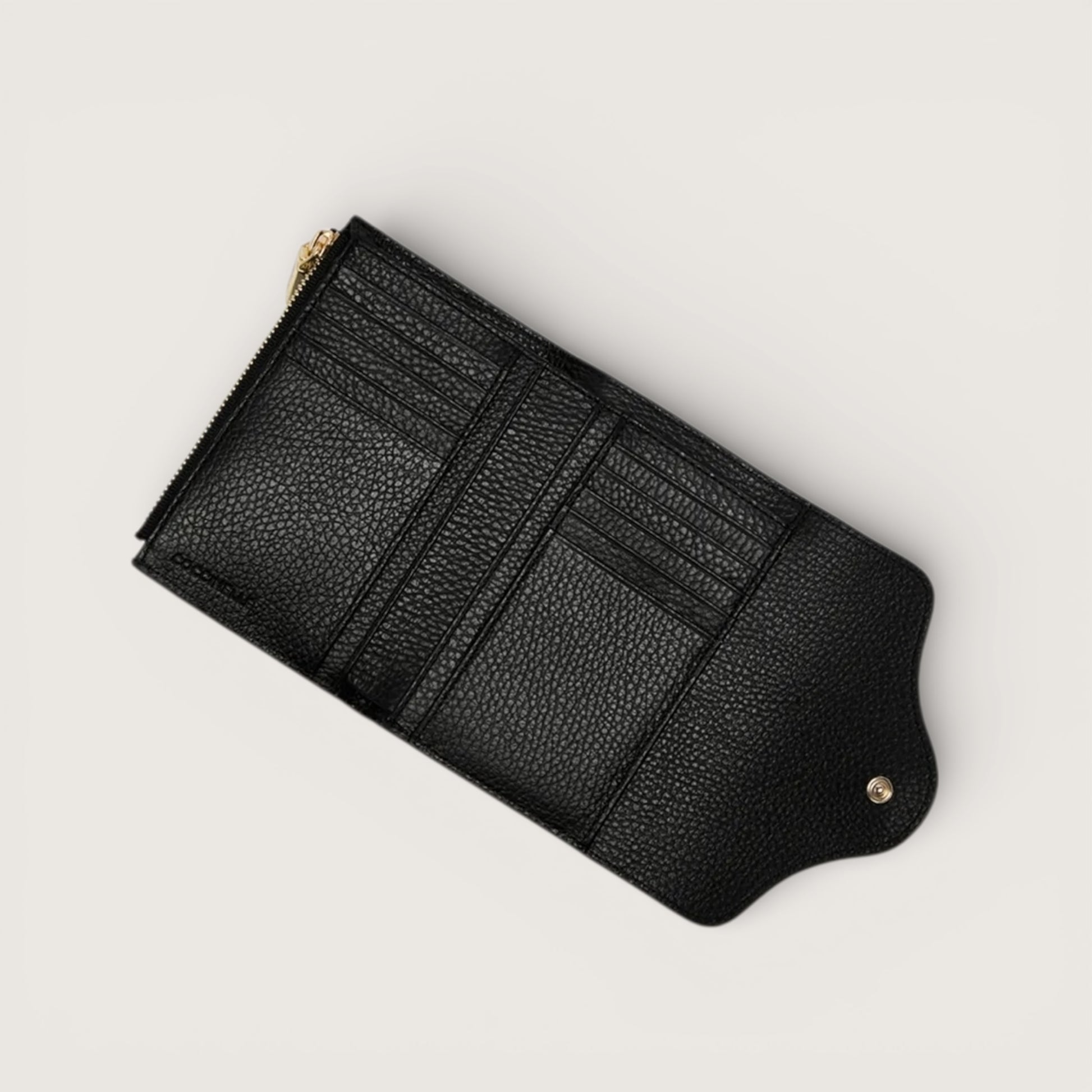 Цей гаманець з лінії C-Me прикрашений оновленим логотипом із літерою C, яка обвивається навколо медіатора — культового елемента бренду. Його внутрішній простір добре організований для зручного зберігання необхідних речей. Ця модель виготовлена зі шкіри, обробленої за допомогою спеціальних машин, а потім пом’якшеної в барабані для збереження її м’якості. Це дуже міцна шкіра, яка легко чиститься та є ідеальною для щоденного використання.