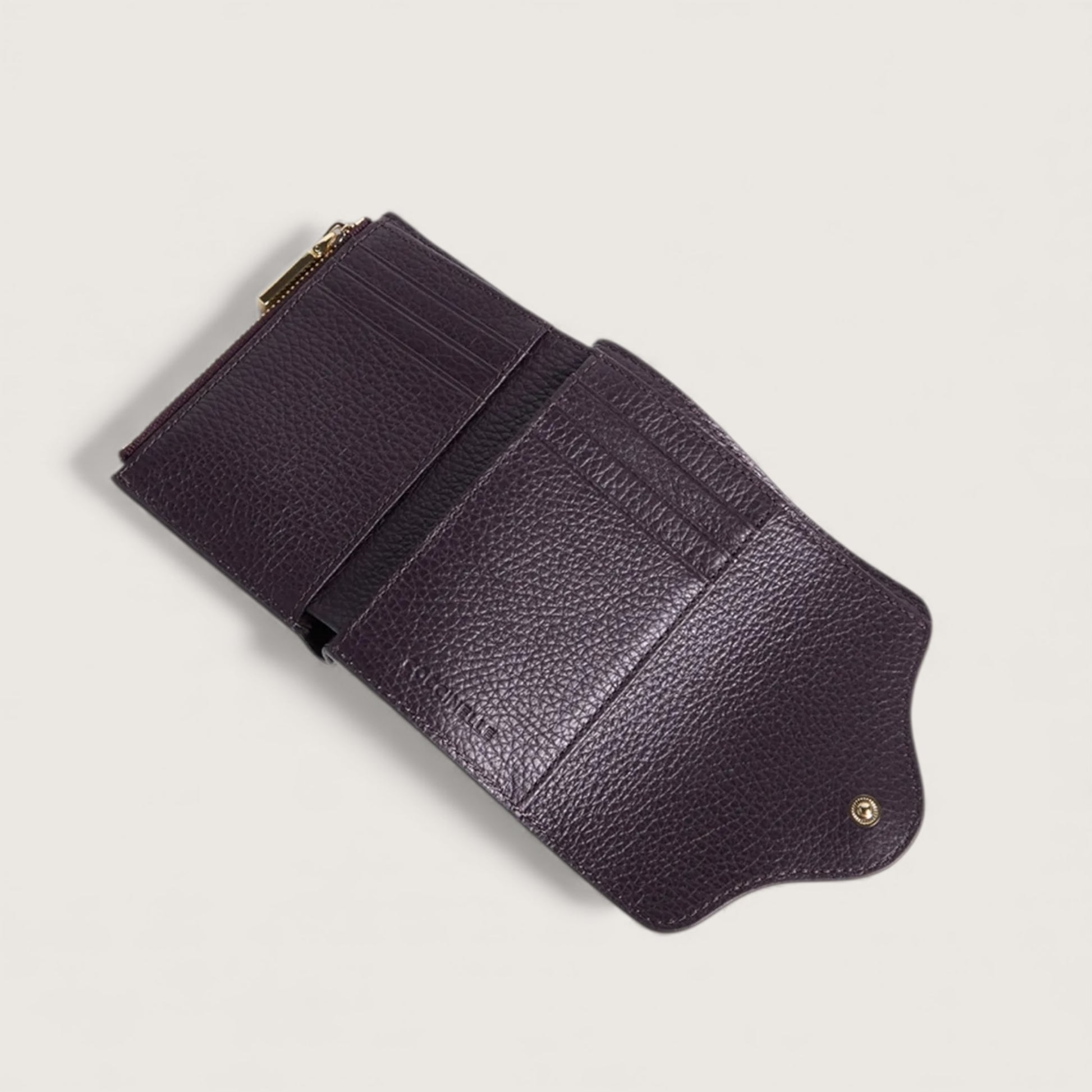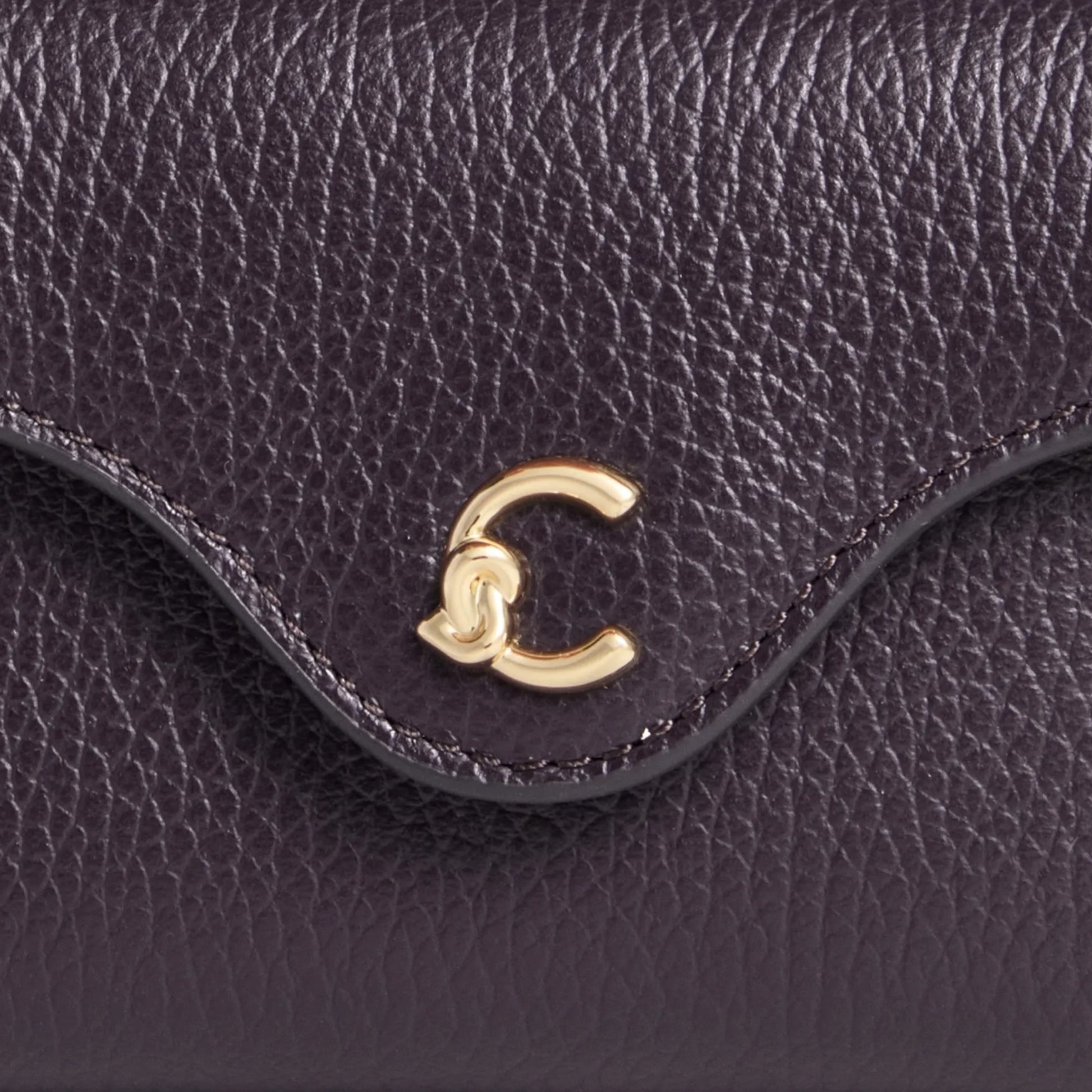 Цей гаманець з лінії C-Me прикрашений оновленим логотипом із літерою C, яка обвивається навколо медіатора — культового елемента бренду. Його внутрішній простір добре організований для зручного зберігання необхідних речей. Ця модель виготовлена зі шкіри, обробленої за допомогою спеціальних машин, а потім пом’якшеної в барабані для збереження її м’якості. Це дуже міцна шкіра, яка легко чиститься та є ідеальною для щоденного використання.