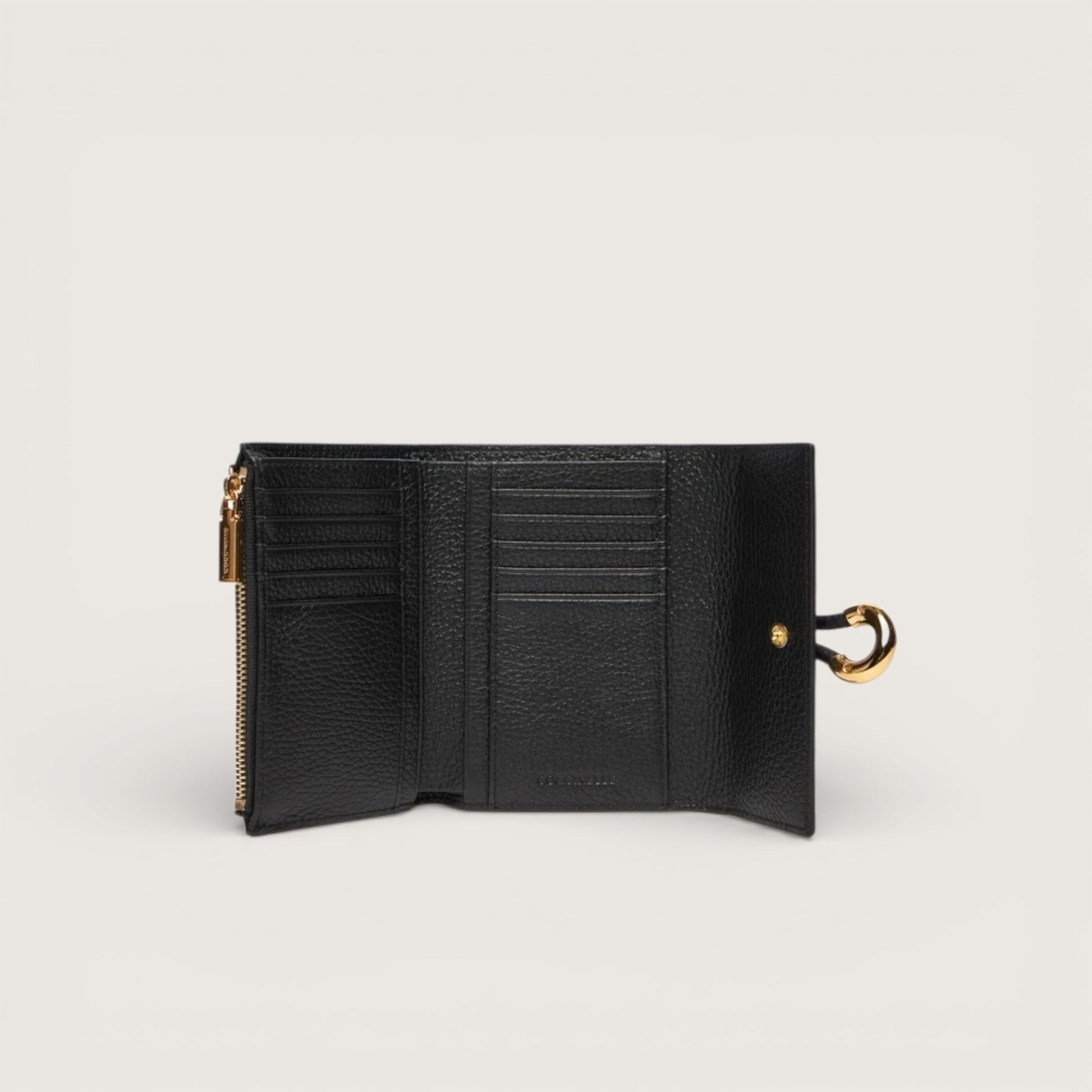 Цей гаманець прикрашений оновленим логотипом із літерою C. Його внутрішній простір добре організований для зручного зберігання необхідних речей. Ця модель виготовлена зі шкіри, обробленої за допомогою спеціальних машин, а потім пом’якшеної в барабані для збереження її м’якості. Це дуже міцна шкіра, яка легко чиститься та є ідеальною для щоденного використання.