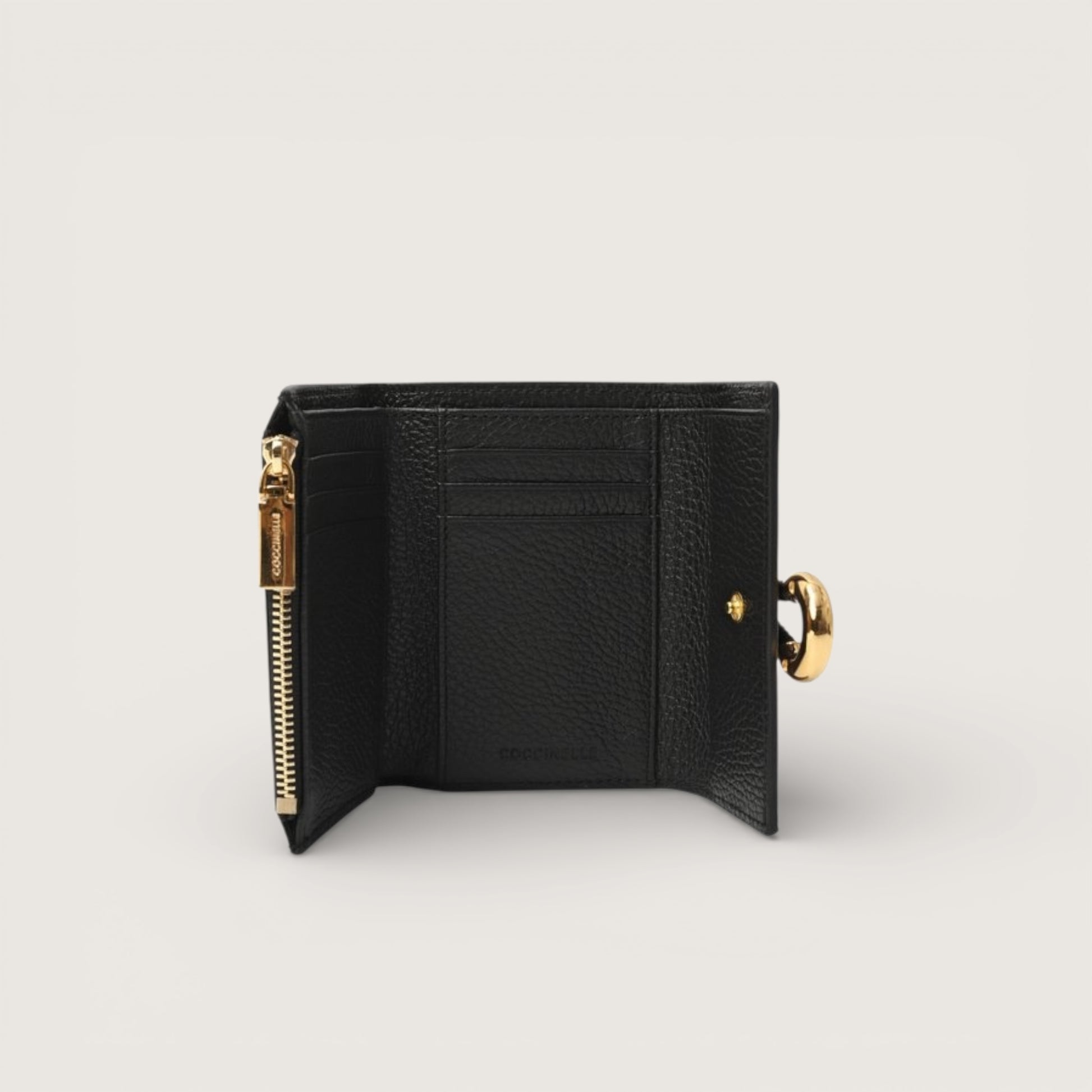 Цей гаманець прикрашений оновленим логотипом із літерою C. Його внутрішній простір добре організований для зручного зберігання необхідних речей. Ця модель виготовлена зі шкіри, обробленої за допомогою спеціальних машин, а потім пом’якшеної в барабані для збереження її м’якості. Це дуже міцна шкіра, яка легко чиститься та є ідеальною для щоденного використання.
