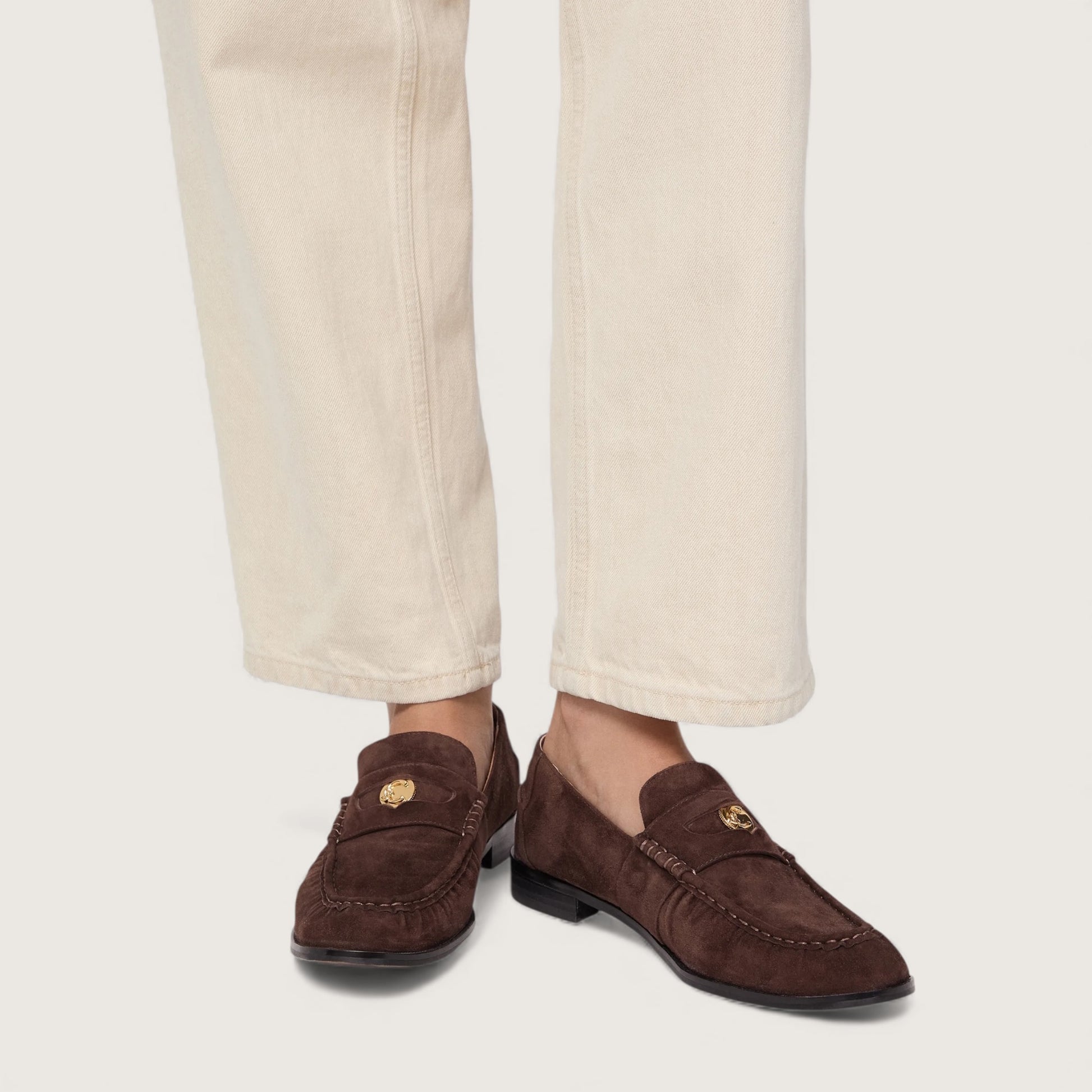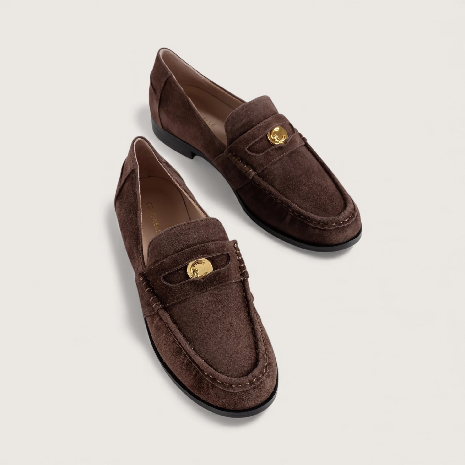 Лофери Coccinelle C-Penny поєднують м’якість форм і витончену елегантність. Їх вирізняє делікатна, але впізнавана деталь — монета C-Me, що додає фірмового шарму бренду. Це вишукана й універсальна модель, яка доповнить будь-який образ, зберігаючи характерний стиль Coccinelle. Виготовлені з матеріалу з ефектом замші, м’якого й оксамитового на дотик. Щоб зберегти їхню привабливість, рекомендується уникати контакту з водою, олією, жиром і спиртовмісними речовинами, а також не залишати поруч із джерелами тепла чи під дощем. Якщо взуття намокло, варто акуратно висушити його м’якою світлою тканиною.