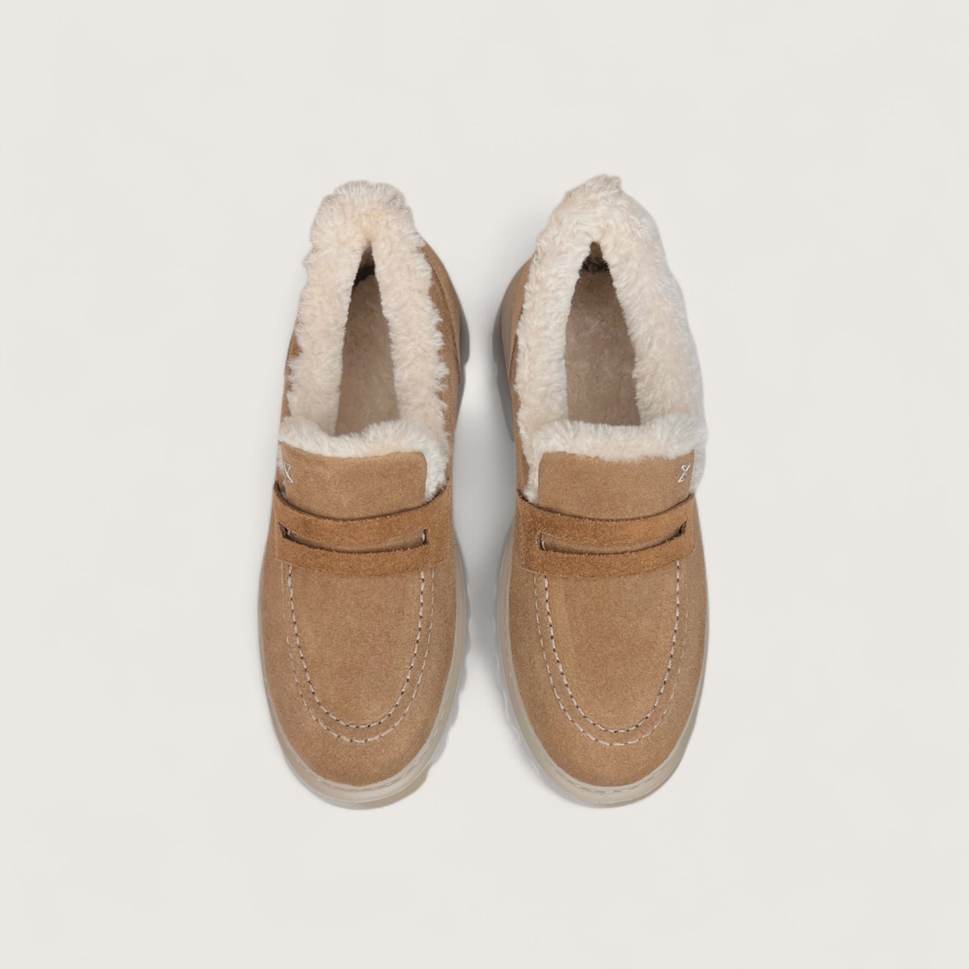 Лофери на хутрі — витончений вибір для прохолодного сезону. Натуральна замша надає взуттю стильного вигляду, а м’яка овчина всередині дарує тепло та комфорт упродовж усього дня. Зручна колодка та гнучка підошва забезпечують легкість під час ходьби. Ідеально поєднуються з пальто, брюками чи джинсами, доповнюючи образ елегантністю й затишком.