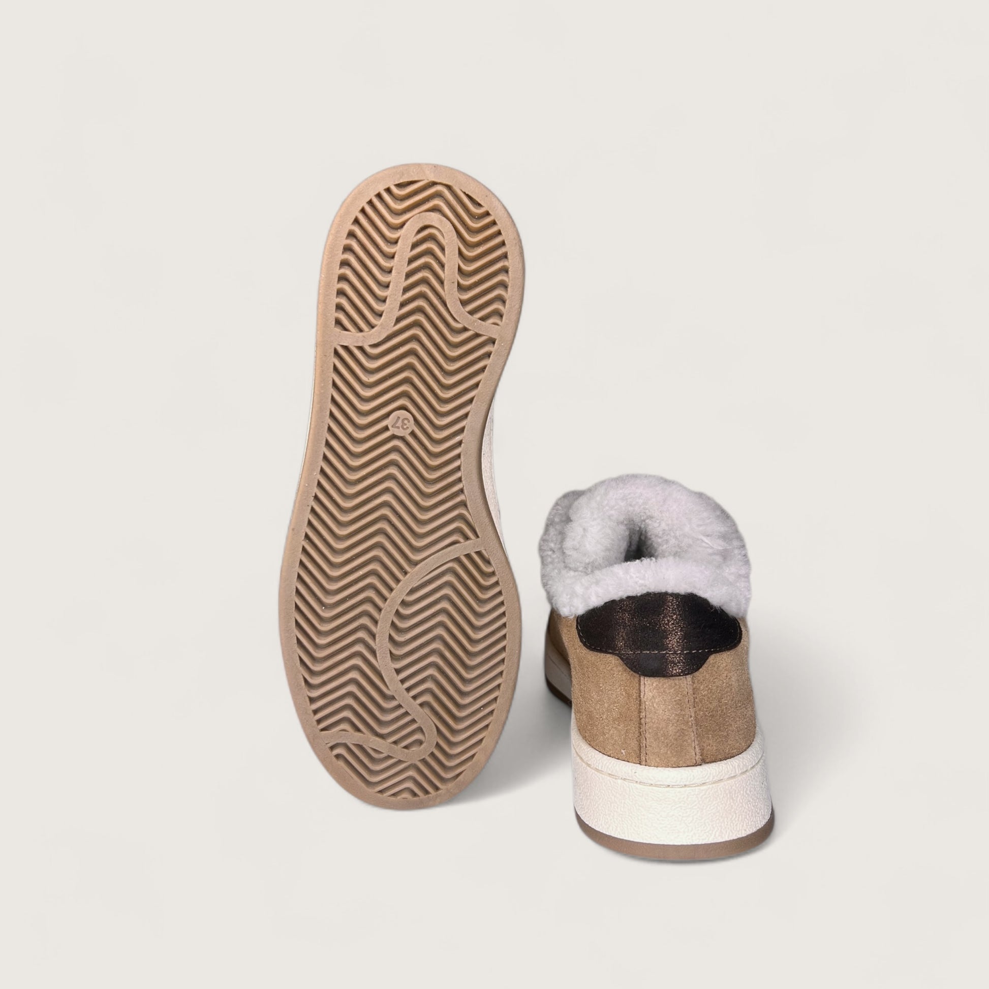 Кеди на хутрі — ідеальний вибір для прохолодного сезону. Натуральна замша зовні надає взуттю стильного вигляду, а м’яка овчина всередині забезпечує комфорт і тепло навіть у холодну погоду. Зручна підошва з гарним зчепленням гарантує стабільність під час ходьби, а класичний силует легко поєднується як із повсякденним, так і зі спортивним стилем.