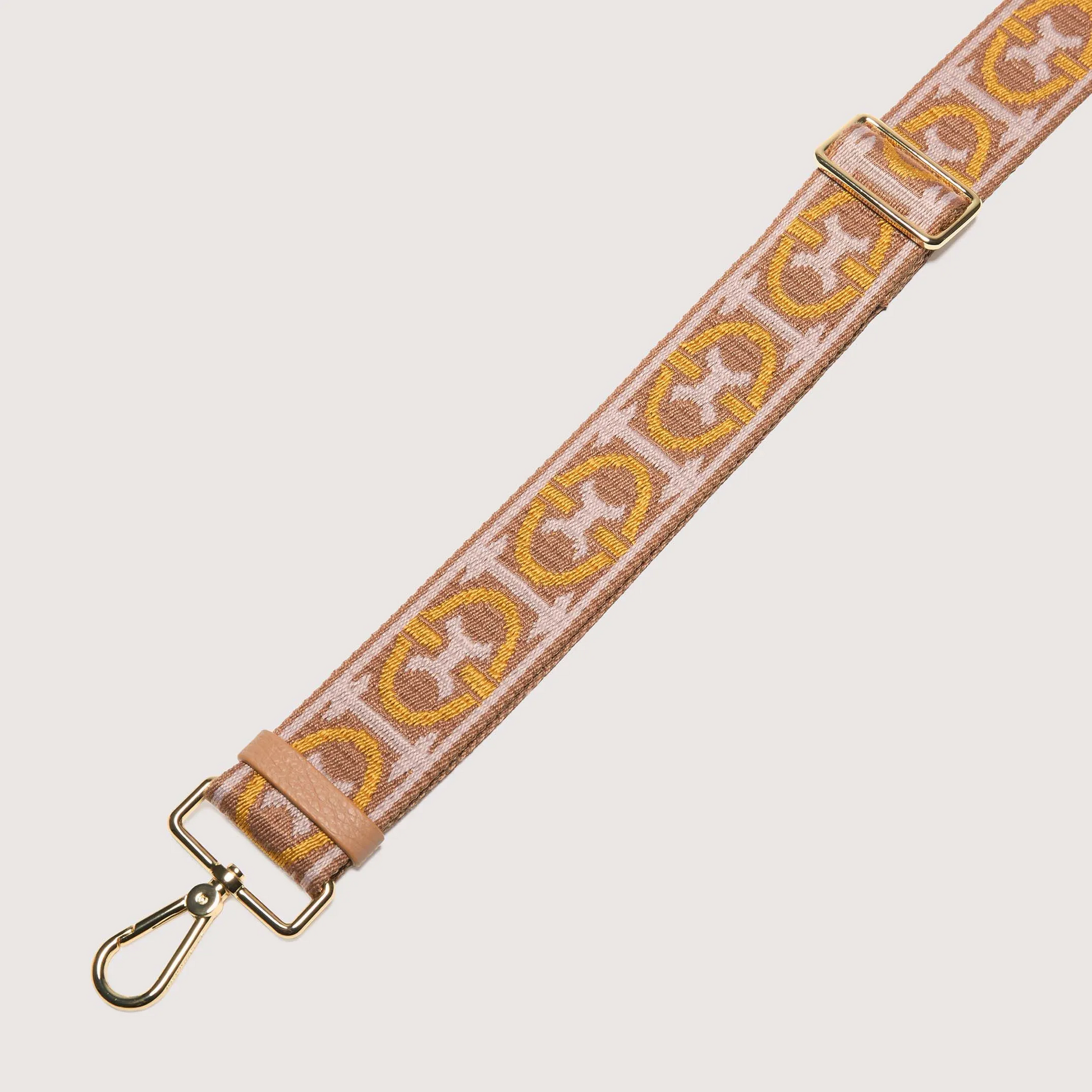 Плечовий ремінець із жакардової тканини з візерунком монограми Coccinelle. Регулюється за допомогою рухомої пряжки. Ідеально підходить для персоналізації вашої сумки. Ця модель виготовлена зі 100% бавовняної тканини. Жакардова тканина з монограмою створюється за допомогою спеціального ткацького верстата, здатного виконувати складні візерунки. Після завершення цей матеріал проходить додаткову обробку: на зворотний бік наноситься розчин проти зношування, а на зовнішній – водовідштовхувальне покриття. Чистити білою бавовняною тканиною, злегка змоченою водою, і залишити висихати на повітрі.