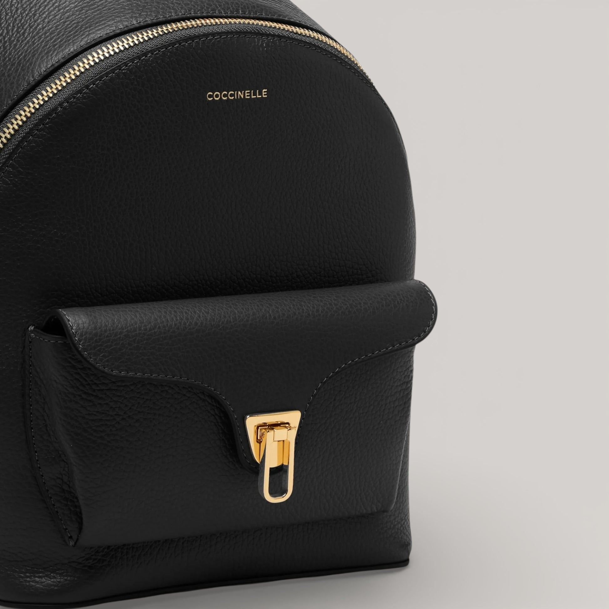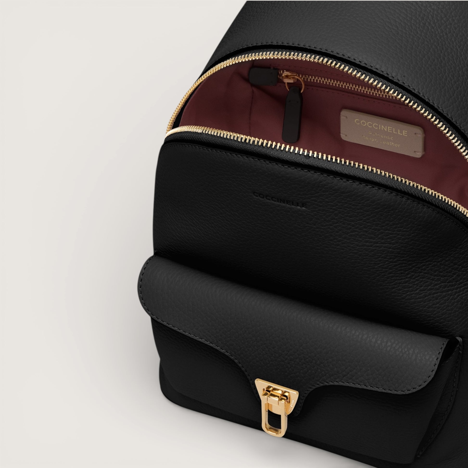 Coccinelle Beat — одна з культових ліній бренду, впізнавана завдяки фірмовій застібці з плектром, яка символізує ДНК Coccinelle та в цій колекції набуває сучасного й функціонального звучання. Цей рюкзак із застібкою-блискавкою створений як ідеальний супутник у подорожах, поєднуючи структурованість і м’якість, зручність і сучасний дизайн. Виготовлений зі шкіри, що проходить спеціальну машинну обробку, завдяки чому зберігає свою природну м’якість. Матеріал міцний, стійкий до зношування та легкий у догляді, що робить рюкзак ідеальним для щоденного використання.
