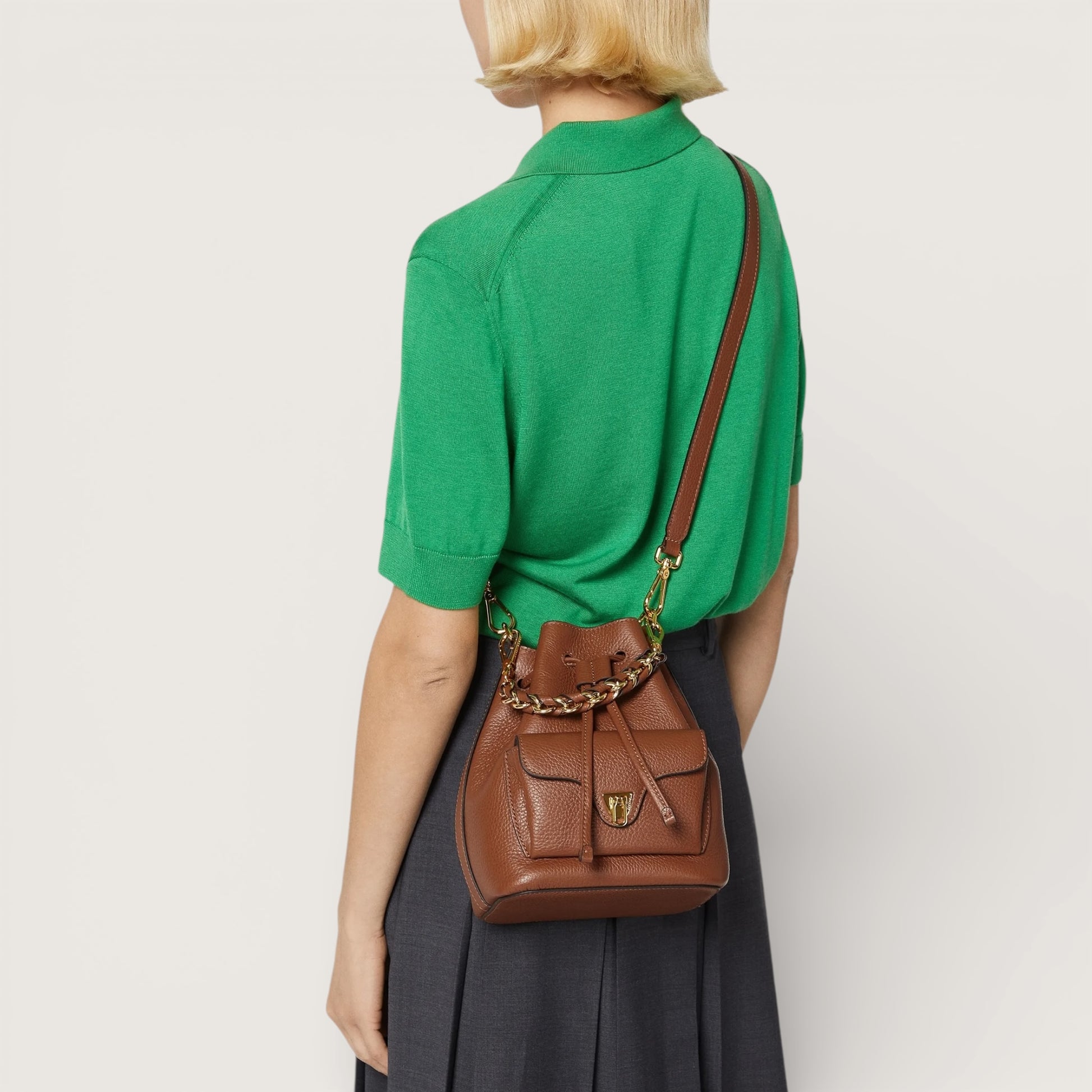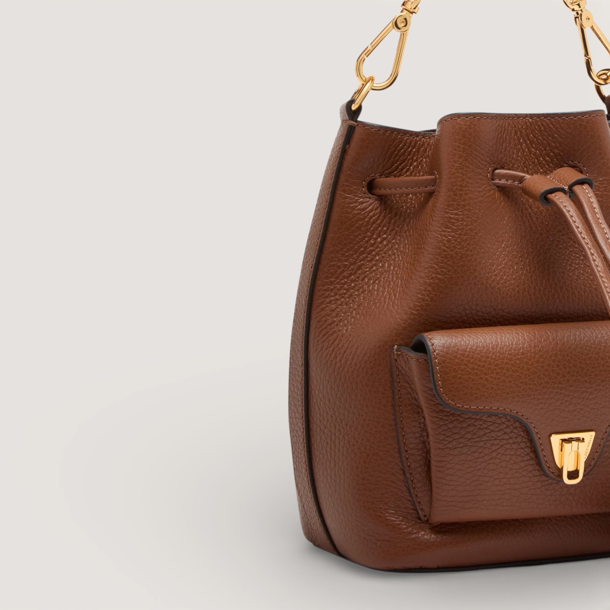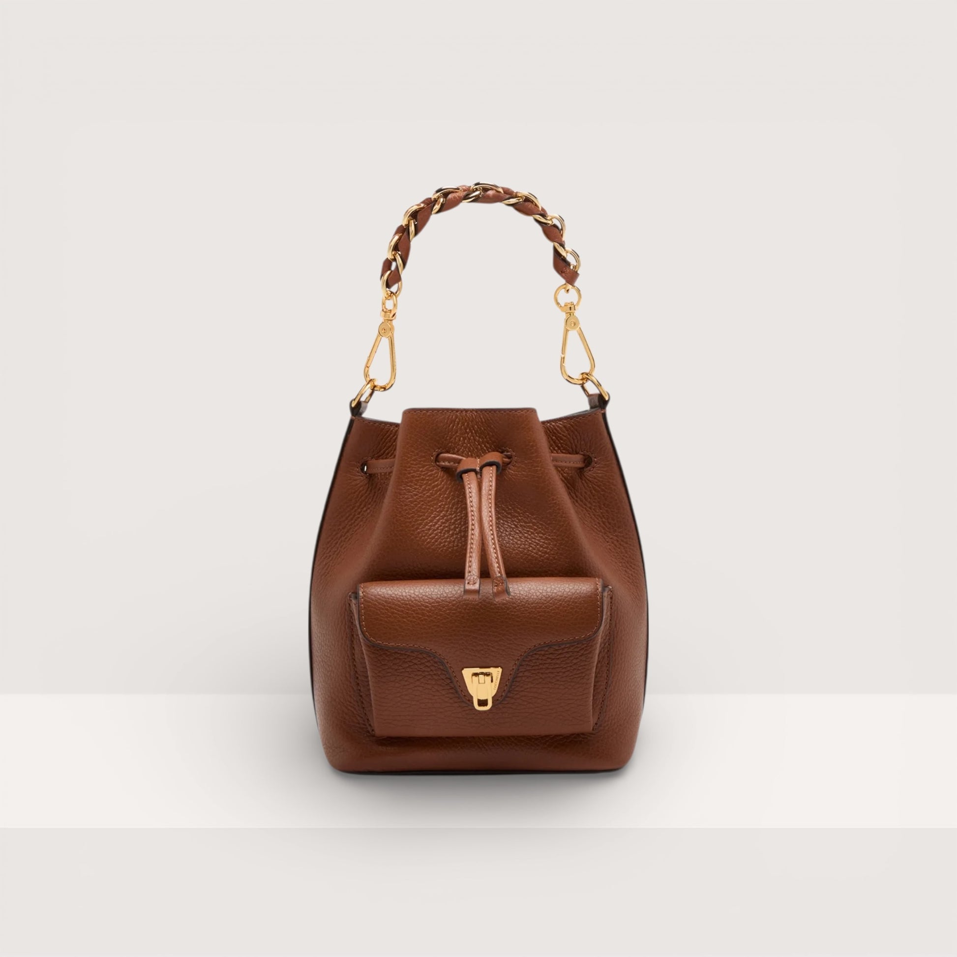 Лінія Coccinelle Beat — одна з іконічних у бренду. Характерна застібка-клапан із медіатором є символом ідентичності Coccinelle та в цій колекції переосмислена з елегантною, сучасною функціональністю. Мінісумка доповнена ручкою з поєднанням шкіри та ланцюжка — ідеальний баланс структури й м’якості, практичності та сучасного дизайну. .Модель виготовлена зі шкіри, обробленої на спеціалізованому обладнанні та додатково пом’ятої для збереження м’якості. Це дуже міцна й легка в догляді шкіра, що робить сумку ідеальною для щоденного використання.