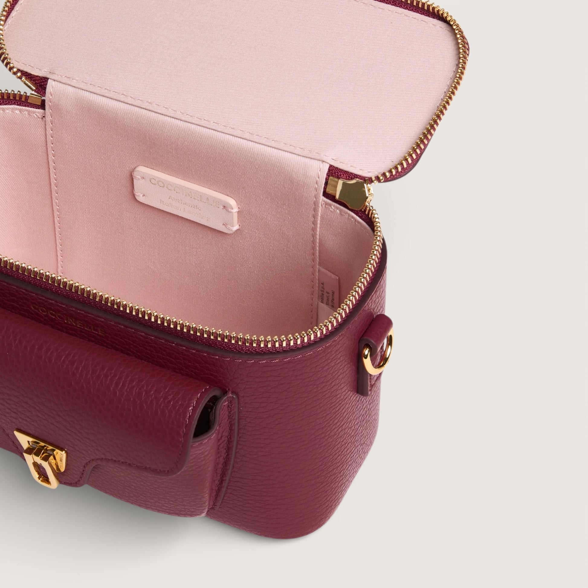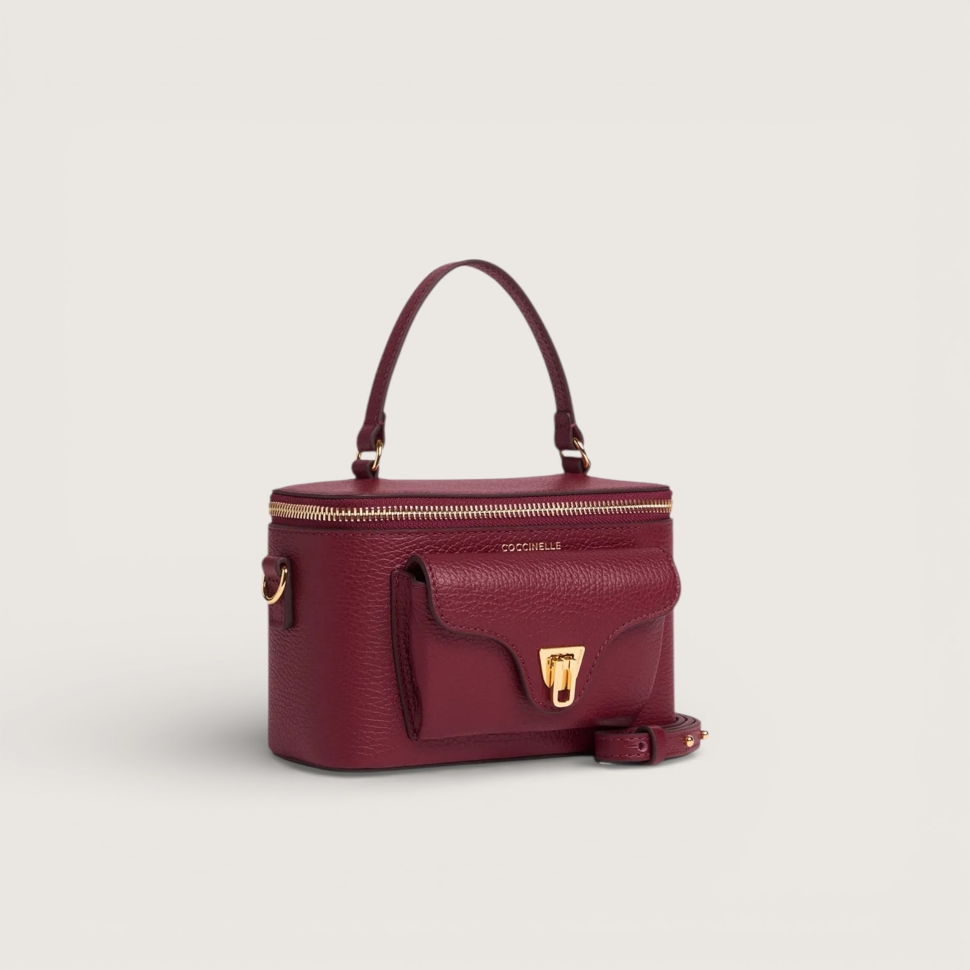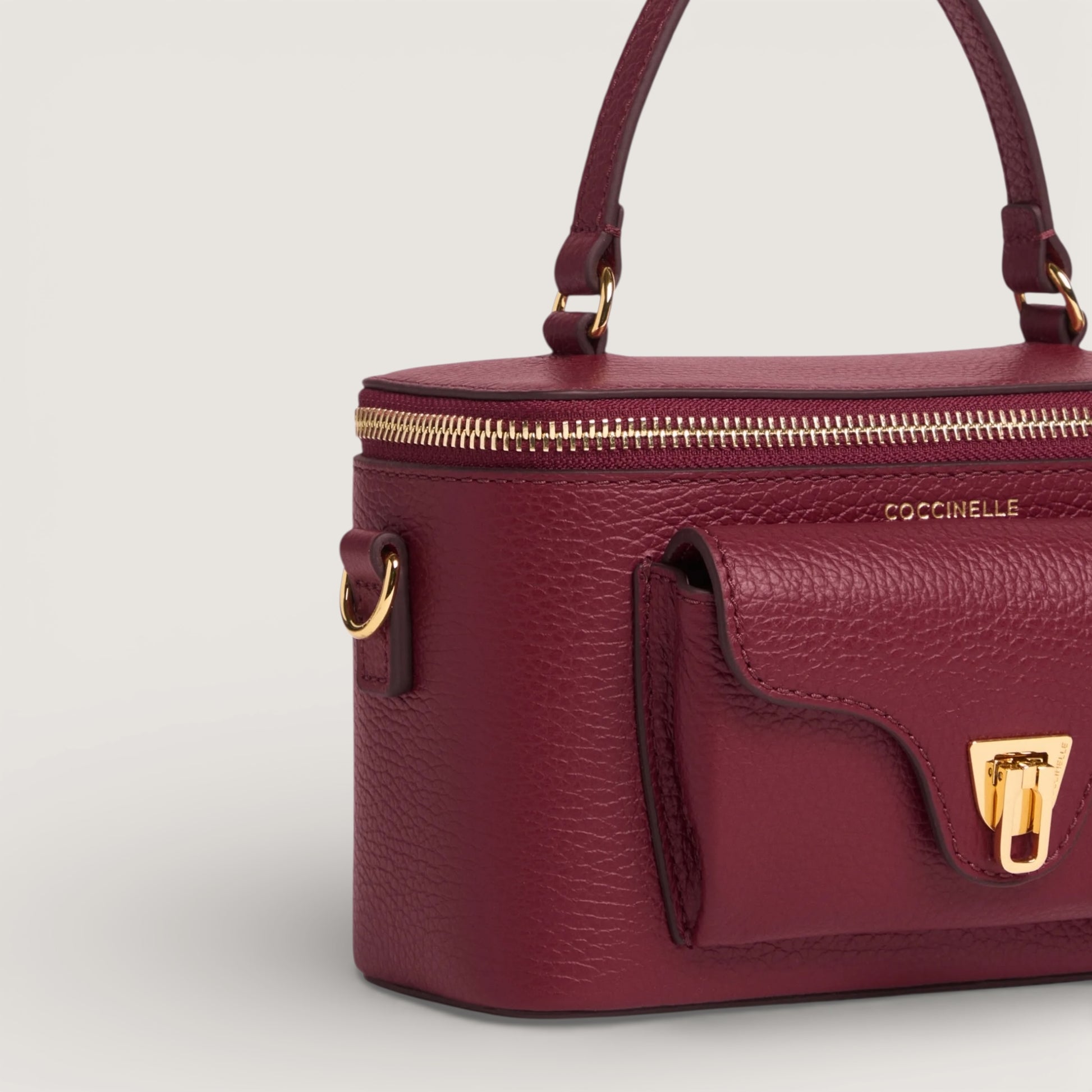 Лінія Coccinelle Beat — одна з найвідоміших у колекції бренду. Її впізнаваною ознакою є застібка у формі плектра, що стала символом стилю Coccinelle. Міні-сумка Beat із шкіряним плечовим ремінцем поєднує чіткий силует і м’які лінії, зручність і сучасну елегантність. Виготовлена зі шкіри, обробленої на спеціальному обладнанні та м’яко протумбованої, щоб зберегти її природну гнучкість. Матеріал витривалий, стійкий до щоденного носіння та легкий у догляді, що робить цю модель ідеальною для щоденного використання.