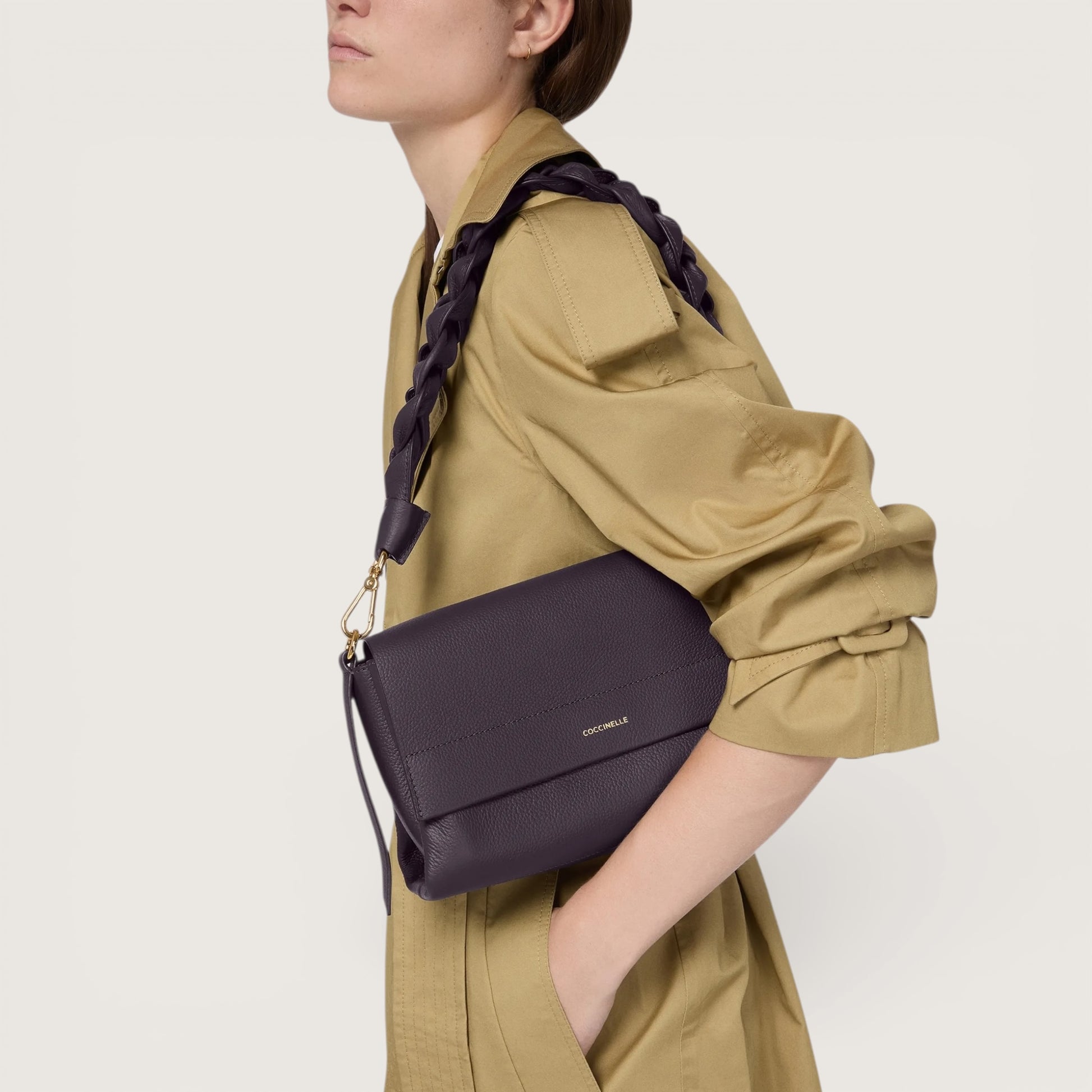 Coccinelle Boheme — лінія, створена з м’якої двосторонньої шкіри, що вирізняється плетеним ручним ремінцем, який надає моделі жіночності та сучасного характеру. Функціональна й містка, ця сумка ідеально підходить активним жінкам, які цінують комфорт і стиль. Виготовлена зі шкіри, що проходить спеціальну машинну обробку та м’який тумблінг, завдяки чому отримує надзвичайно ніжну текстуру. Особливість матеріалу — покриття з обох боків, яке створює ефект двосторонньої шкіри. Міцна та стійка до зносу, Boheme чудово підходить для щоденного використання.