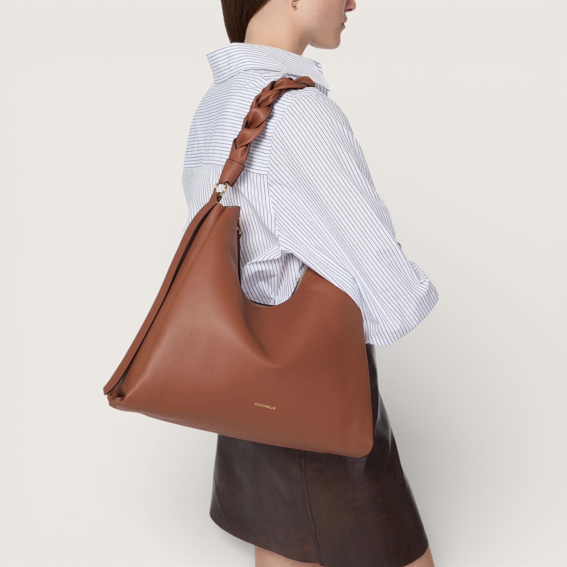 Coccinelle Boheme – це лінія сумок із м’якої двосторонньої шкіри, з витонченою плетеною ручкою, що надає їм жіночності та сучасного вигляду. Компактна, але водночас достатньо містка, ця модель дозволяє носити з собою всі необхідні речі, роблячи її ідеальним вибором для найдинамічніших жінок. Сумка виготовлена зі шкіри, обробленої за допомогою спеціалізованих машин і підданої тисненню для надзвичайної м’якості. Особливістю цього матеріалу є обробка пігментами з обох боків, що створює ефект двосторонньої шкіри. Завдяки своїй міцності, ця модель чудово підходить для щоденного використання.
