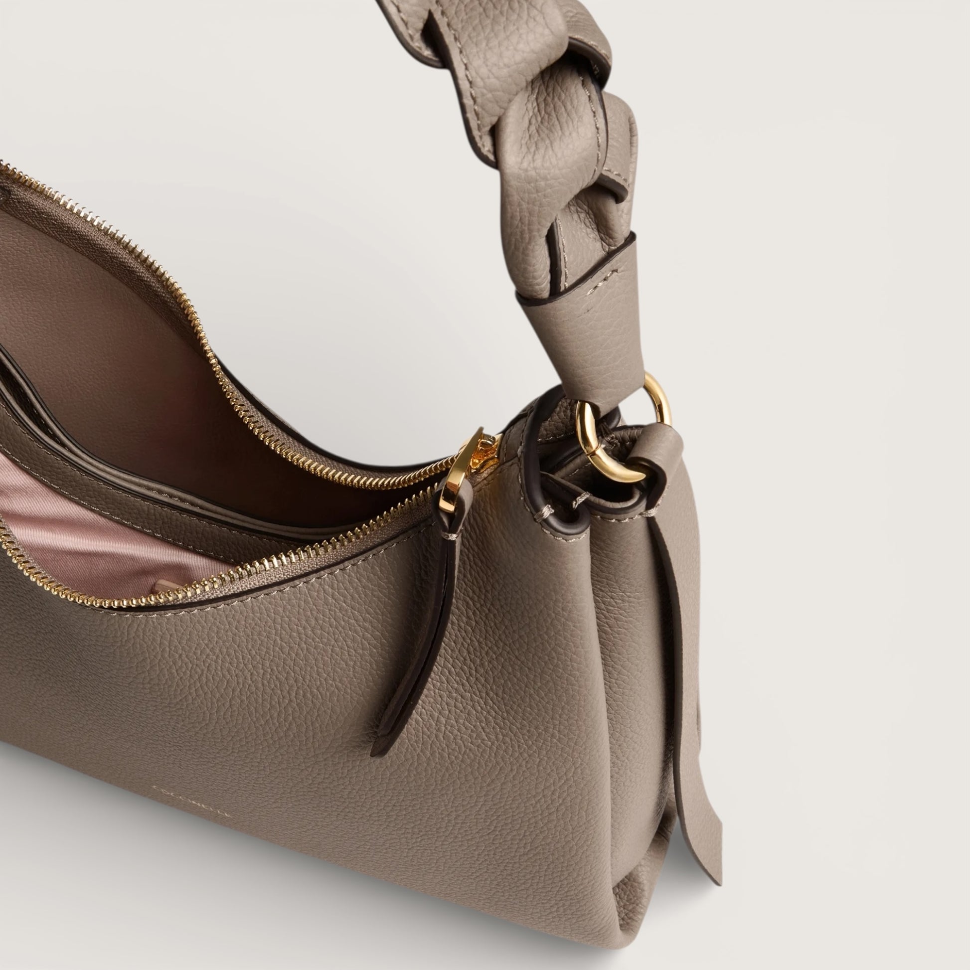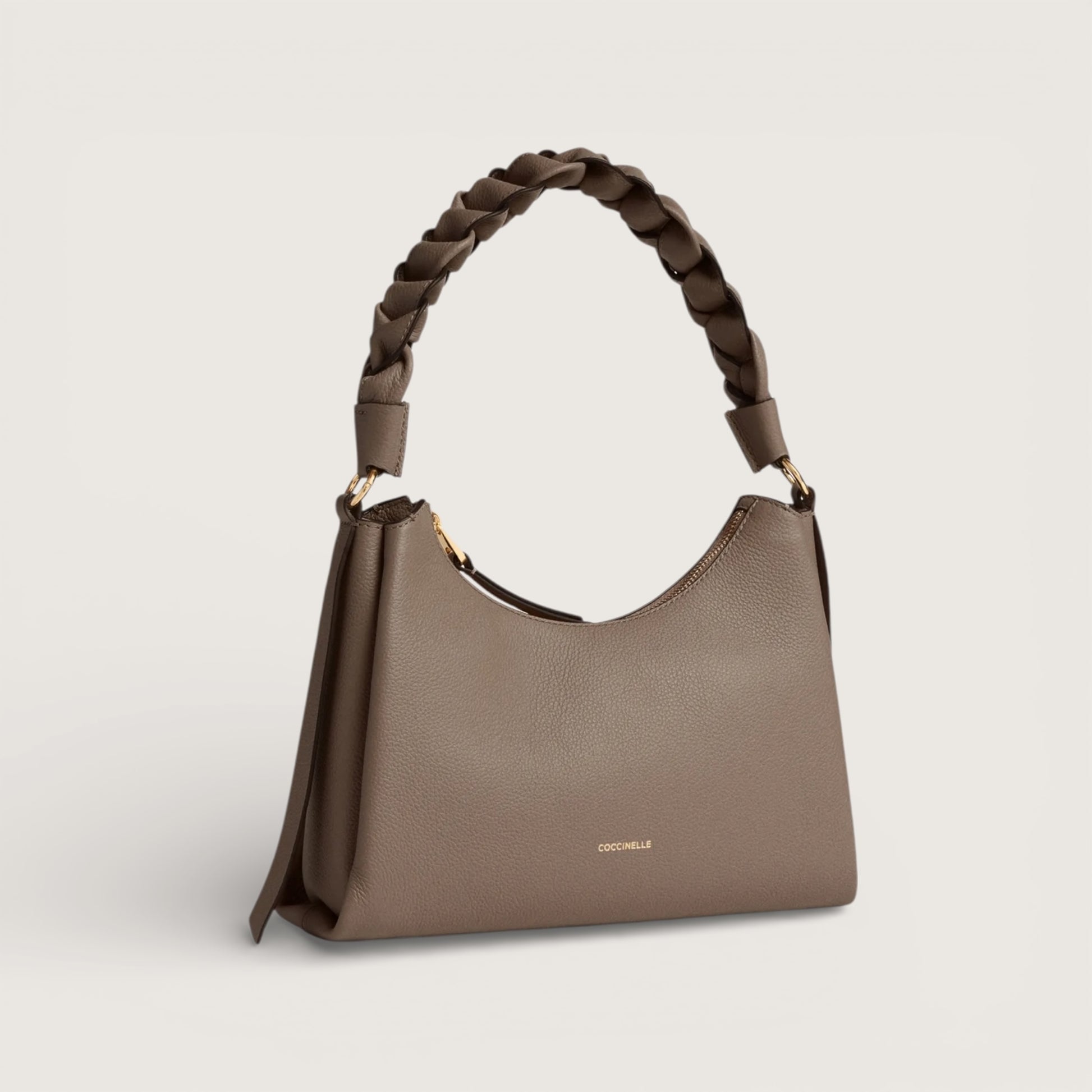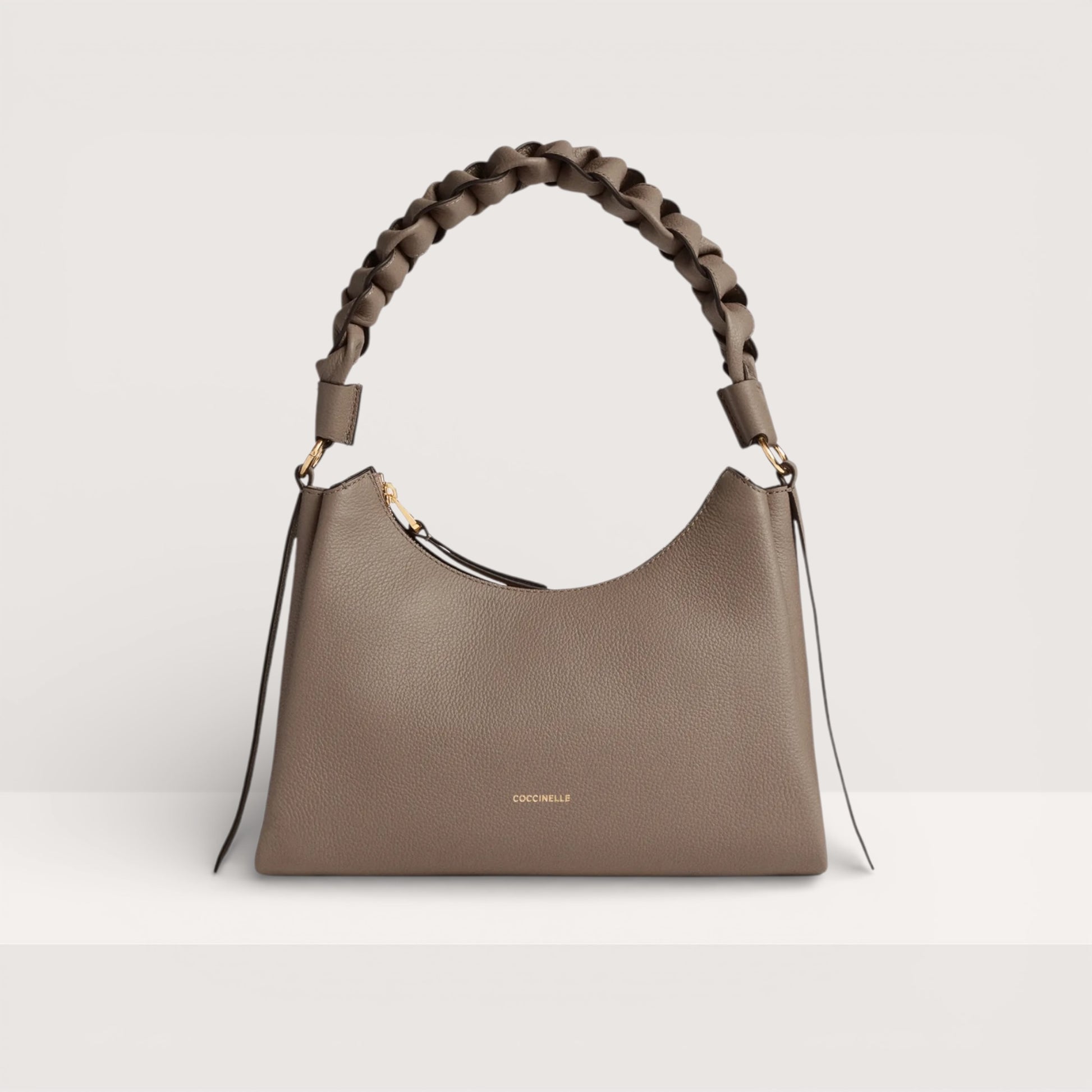 Coccinelle Boheme – це лінія сумок із м’якої двосторонньої шкіри, з витонченою плетеною ручкою, що надає їм жіночності та сучасного вигляду. Компактна, але водночас достатньо містка, ця модель дозволяє носити з собою всі необхідні речі, роблячи її ідеальним вибором для найдинамічніших жінок. Сумка виготовлена зі шкіри, обробленої за допомогою спеціалізованих машин і підданої тисненню для надзвичайної м’якості. Особливістю цього матеріалу є обробка пігментами з обох боків, що створює ефект двосторонньої шкіри. Завдяки своїй міцності, ця модель чудово підходить для щоденного використання.