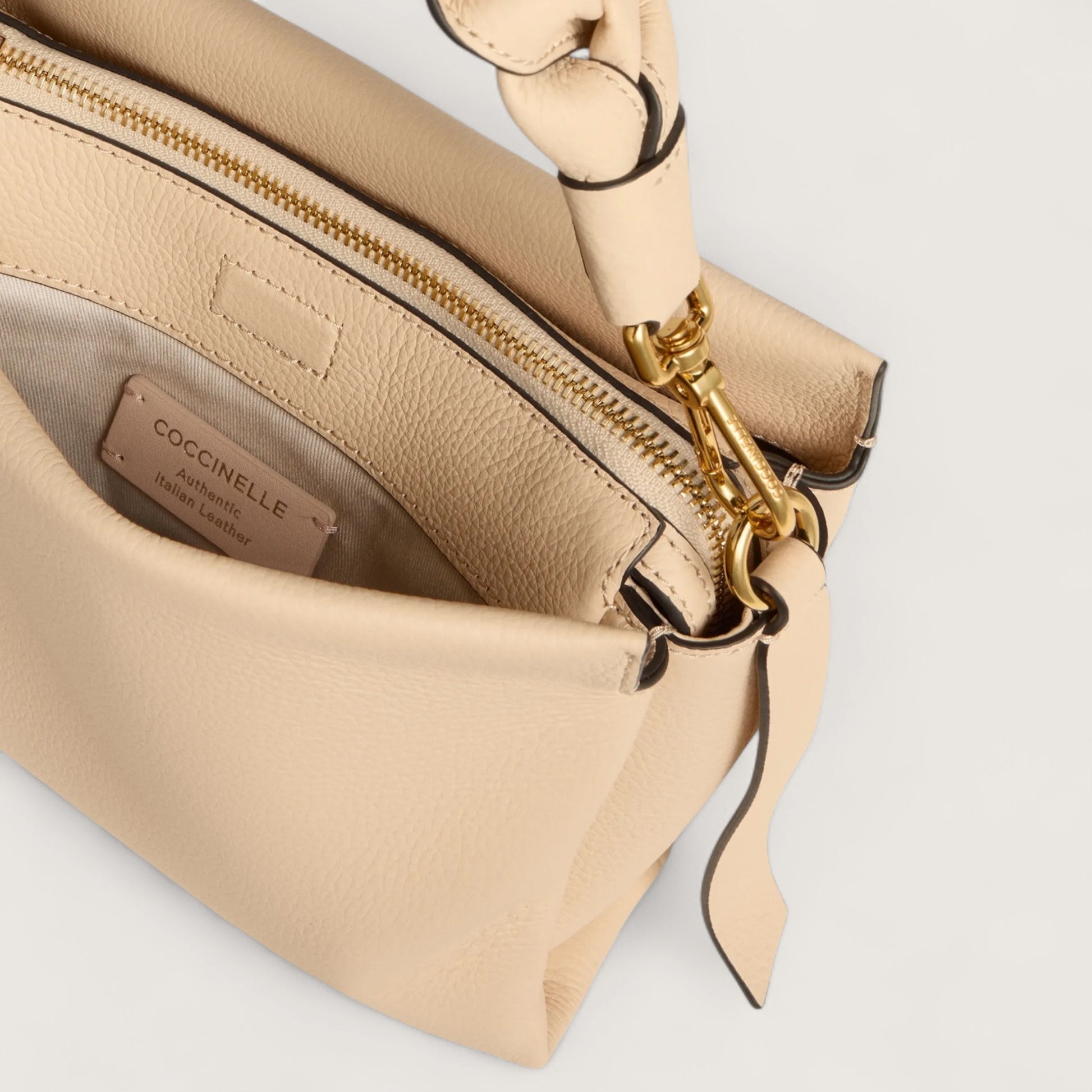 Coccinelle Boheme – це лінія сумок із м’якої двосторонньої шкіри, з витонченою плетеною ручкою, що надає їм жіночності та сучасного вигляду. Компактна, але водночас достатньо містка, ця модель дозволяє носити з собою всі необхідні речі, роблячи її ідеальним вибором для найдинамічніших жінок. Сумка виготовлена зі шкіри, обробленої за допомогою спеціалізованих машин і підданої тисненню для надзвичайної м’якості. Особливістю цього матеріалу є обробка пігментами з обох боків, що створює ефект двосторонньої шкіри. Завдяки своїй міцності, ця модель чудово підходить для щоденного використання.