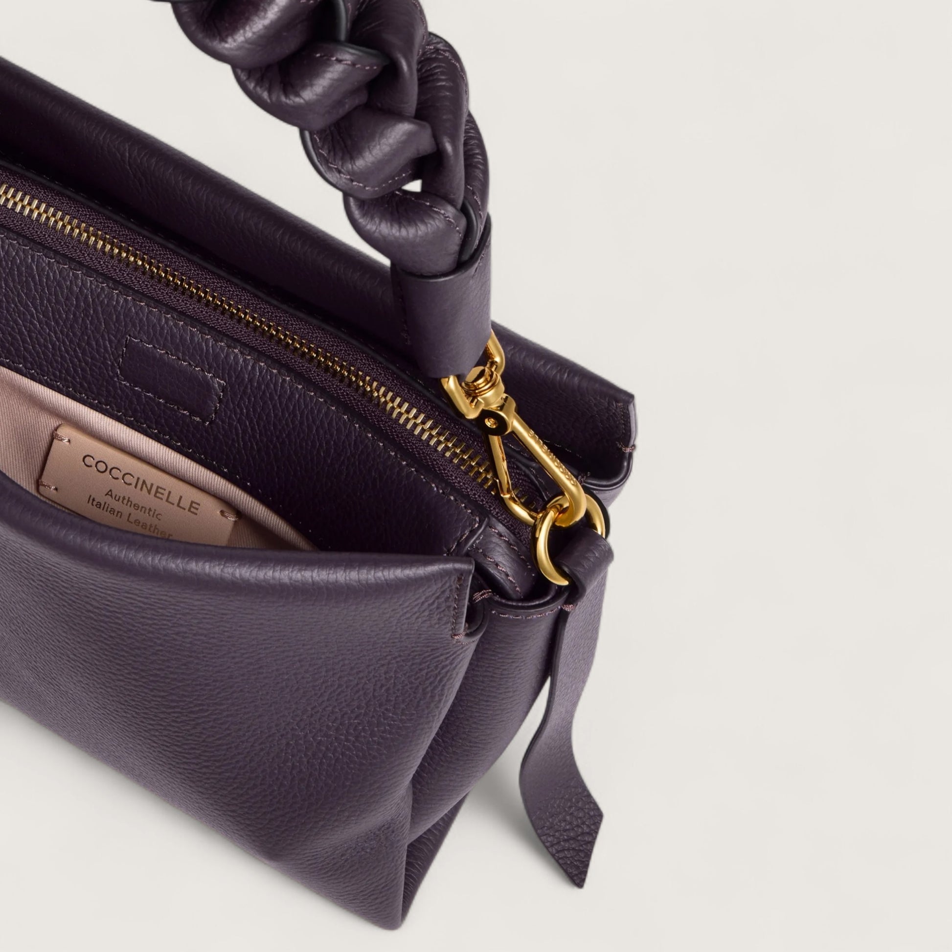 Coccinelle Boheme – це лінія сумок із м’якої двосторонньої шкіри, з витонченою плетеною ручкою, що надає їм жіночності та сучасного вигляду. Компактна, але водночас достатньо містка, ця модель дозволяє носити з собою всі необхідні речі, роблячи її ідеальним вибором для найдинамічніших жінок. Сумка виготовлена зі шкіри, обробленої за допомогою спеціалізованих машин і підданої тисненню для надзвичайної м’якості. Особливістю цього матеріалу є обробка пігментами з обох боків, що створює ефект двосторонньої шкіри. Завдяки своїй міцності, ця модель чудово підходить для щоденного використання.