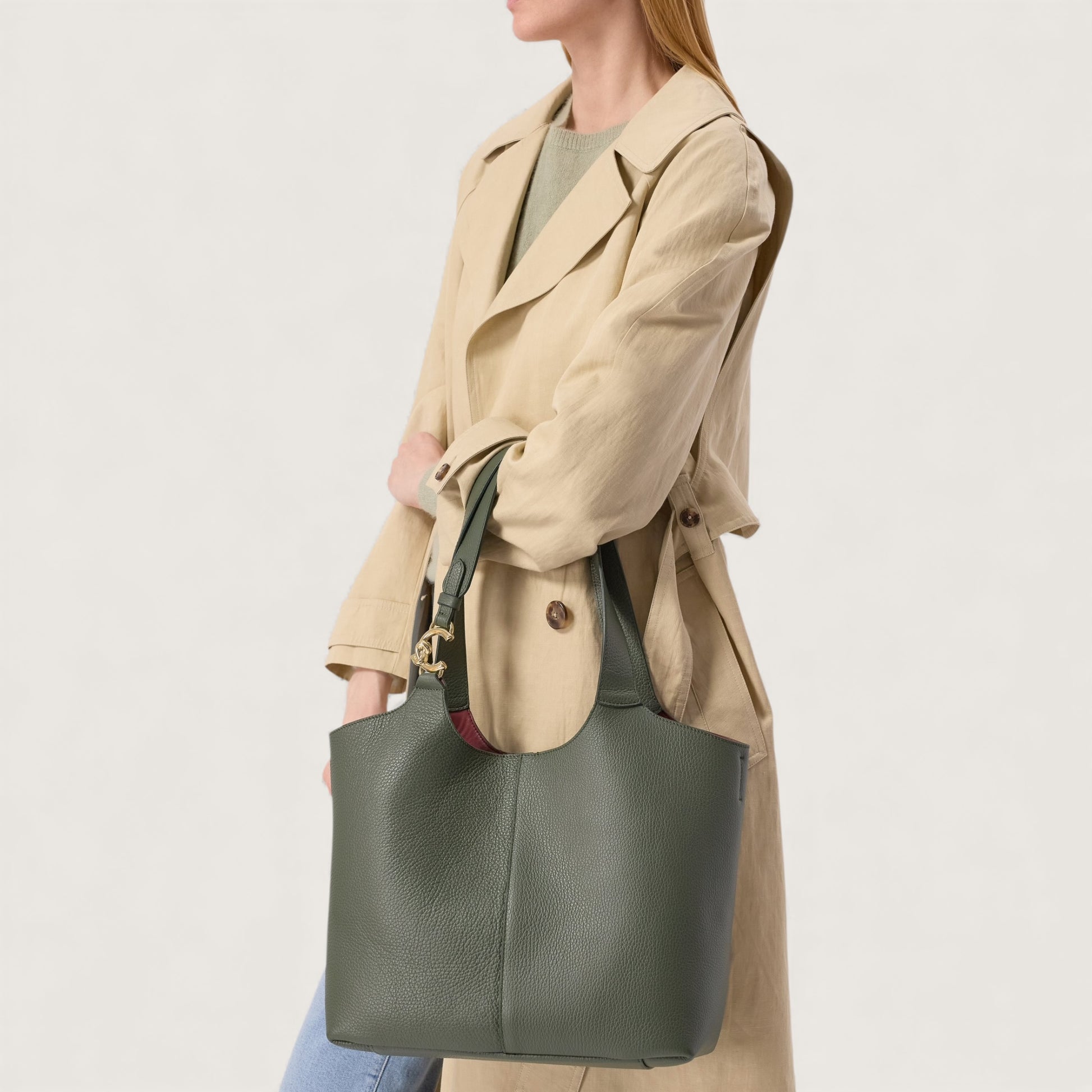 Сумка-тоут Coccinelle C-Easy привертає увагу своїми плавними лініями, які елегантно демонструють вишуканість шкіряного матеріалу. Родзинкою дизайну є металева деталь на ручці з оновленим логотипом C-Me, що додає сяйва цій неймовірно практичній моделі. Для виготовлення цієї сумки використовується спеціально оброблена та пом'якшена в барабані шкіра, що забезпечує її ніжність на дотик і водночас високу зносостійкість. Завдяки цим властивостям, а також легкості у догляді, ця сумка стане чудовим вибором для щоденного використання.