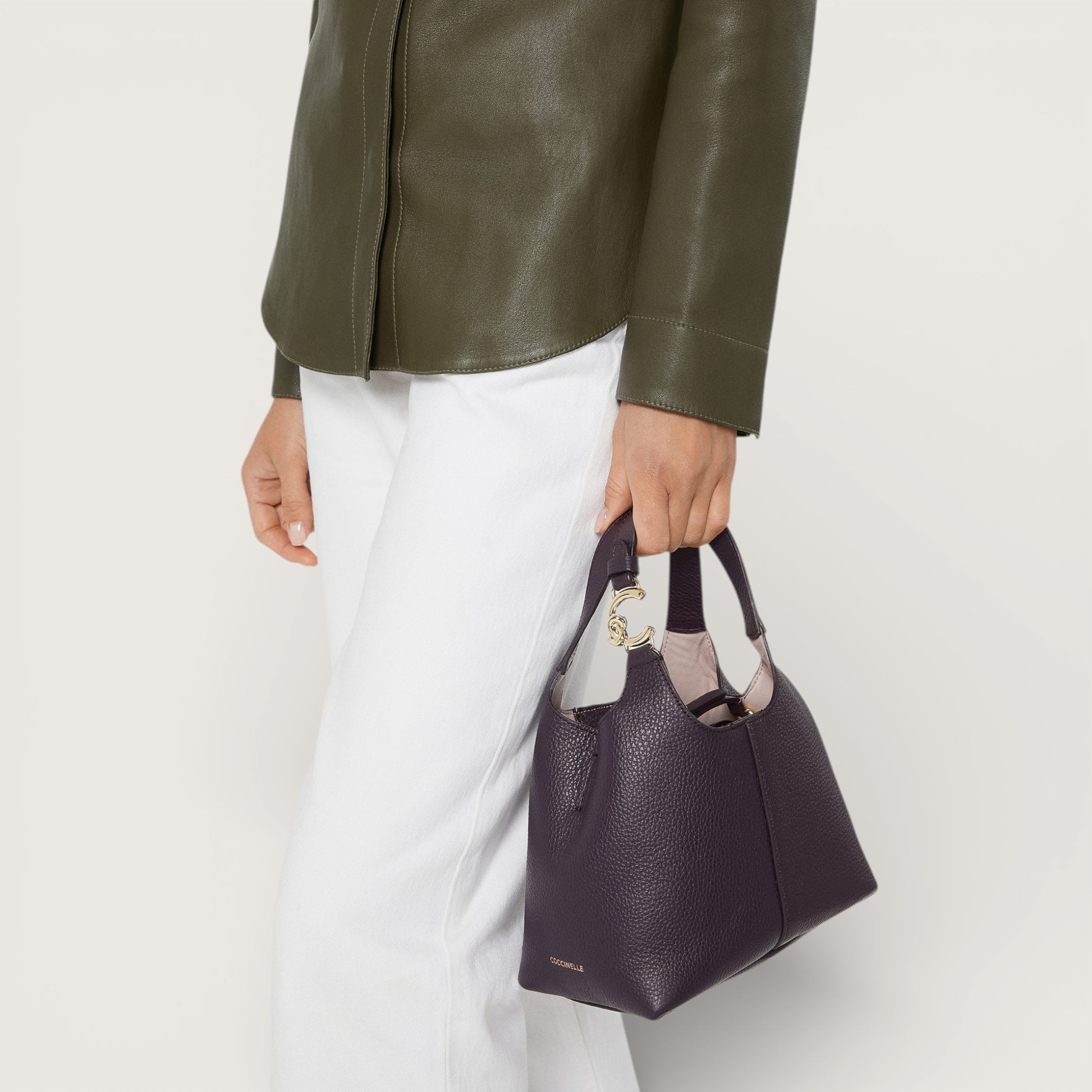 Сумка-тоут Coccinelle C-Easy привертає увагу своїми плавними лініями, які елегантно демонструють вишуканість шкіряного матеріалу. Родзинкою дизайну є металева деталь на ручці з оновленим логотипом C-Me, що додає сяйва цій неймовірно практичній моделі. Для виготовлення цієї сумки використовується спеціально оброблена та пом'якшена в барабані шкіра, що забезпечує її ніжність на дотик і водночас високу зносостійкість. Завдяки цим властивостям, а також легкості у догляді, ця сумка стане чудовим вибором для щоденного використання.