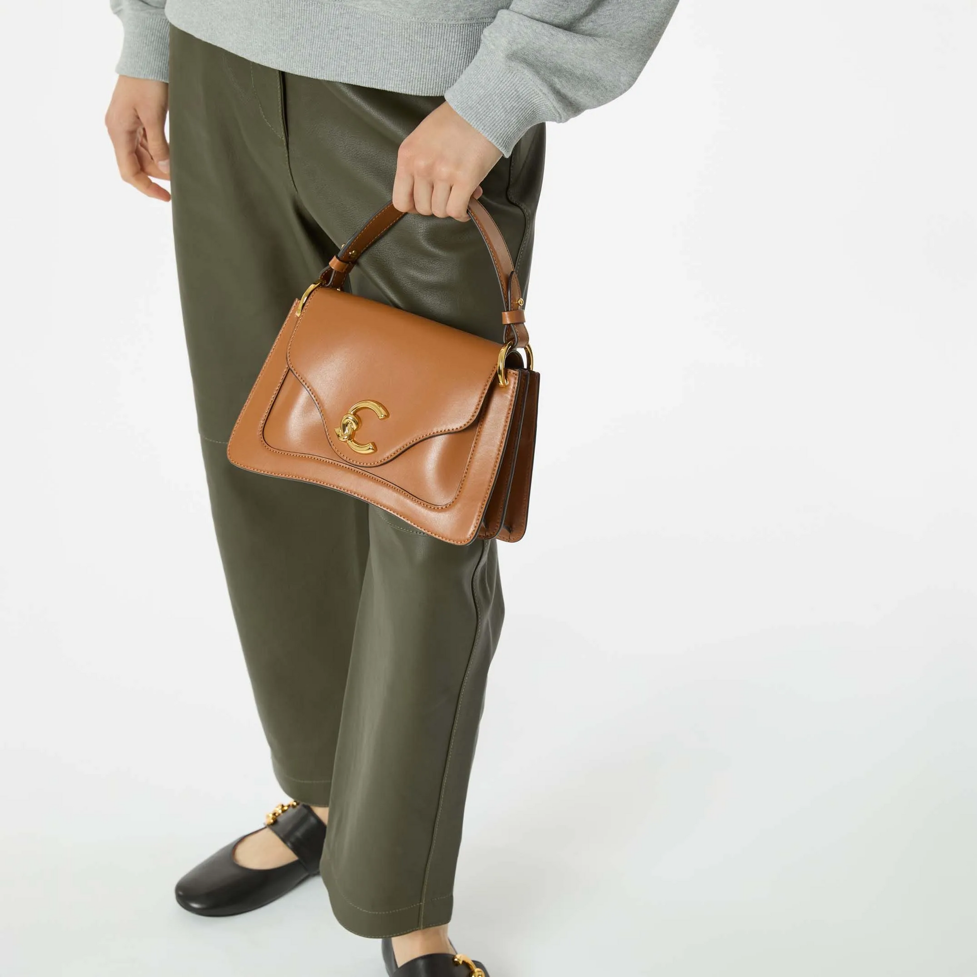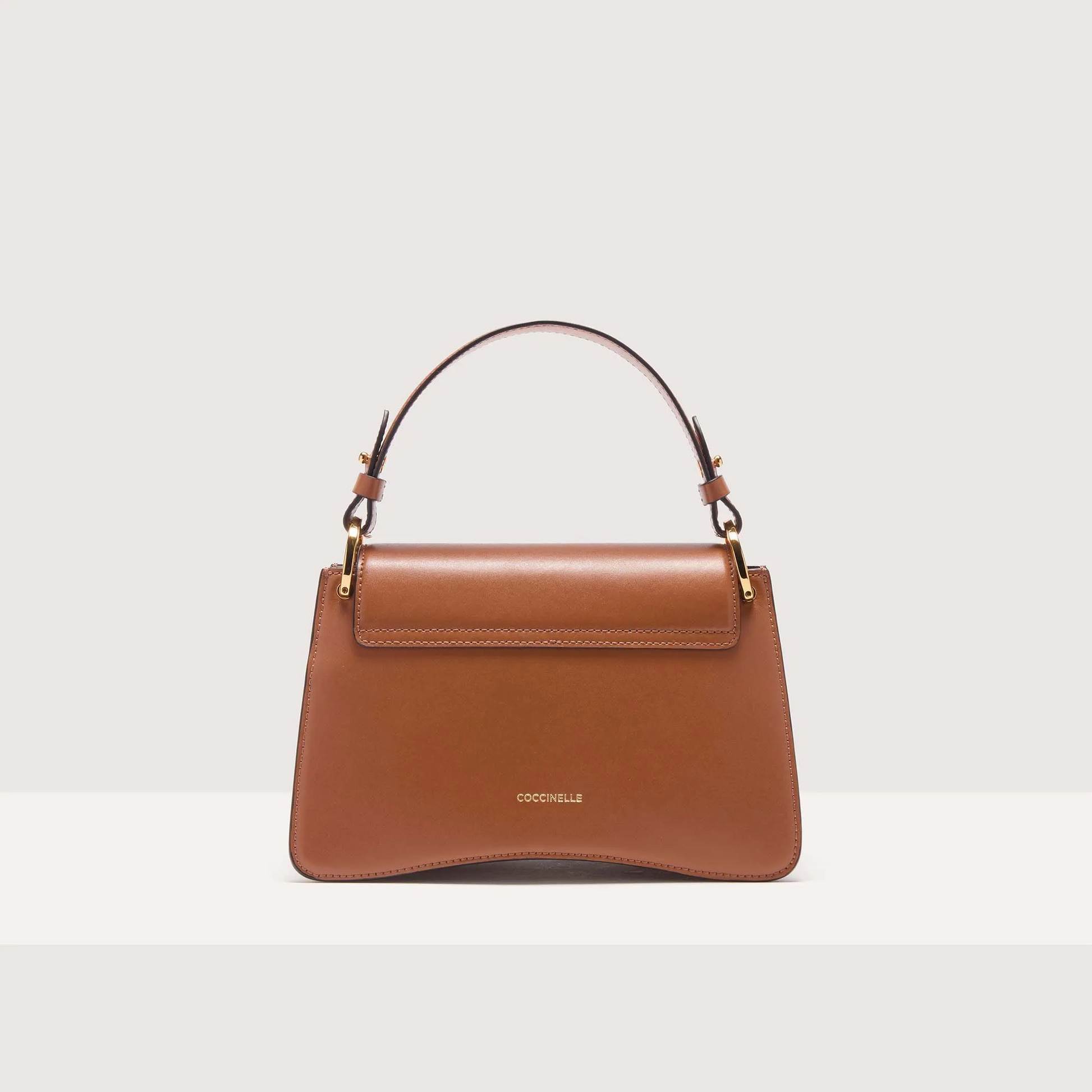 У колекції Coccinelle з’являється новий знаковий елемент – C-Me. Логотип переосмислено: літера «C» із назви бренду витончено огортає і переплітається з медіатором – культовим символом Coccinelle, що уособлює нерозривний зв’язок між минулим і теперішнім у житті жінки. Геометричні лінії та елегантні вигини підкреслюють дизайн, а конструкція з ластовицями поєднує в цій сумці функціональність і стриману елегантність, призначену для того, щоб бути незамінним супутником жінки Coccinelle протягом усього дня. Модель виготовлена з гладкої шкіри, що пройшла спеціальне тиснення з маслами, що надає їй довговічності та витонченого вигляду.
