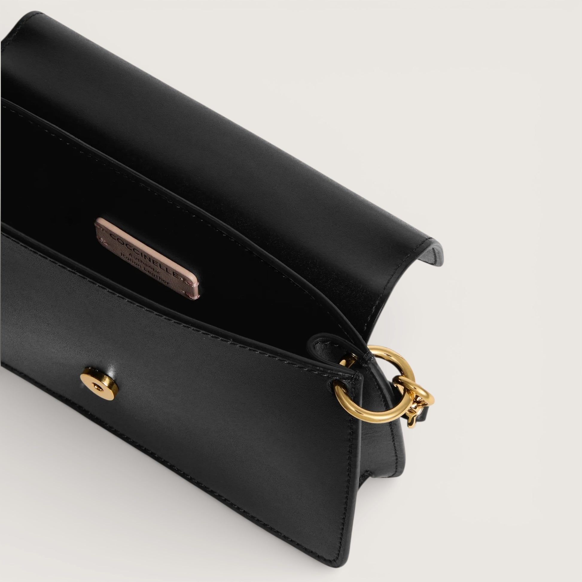 Coccinelle C-Me — новий фірмовий символ бренду. Літера “C” обвиває медіатор — знаковий елемент Coccinelle, уособлюючи зв’язок між минулим і сучасністю в житті жінки. Геометричні лінії та витончені вигини підкреслюють сучасний характер моделі, а складна бокова конструкція (gusseted) додає зручності й стриманої елегантності. Ця сумка задумана як універсальний супутник жінки протягом усього дня. Виготовлена зі шкіри, що проходить спеціальну машинну обробку, завдяки чому зберігає свою природну м’якість. Матеріал міцний, стійкий до зносу й легкий у догляді, тому сумка чудово підходить для щоденного використання.