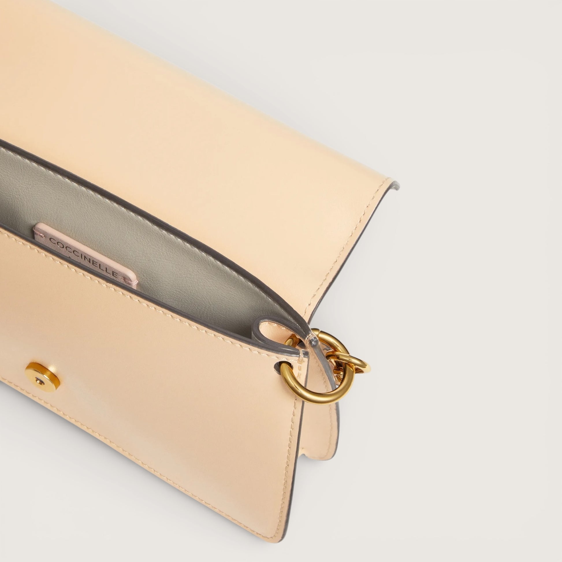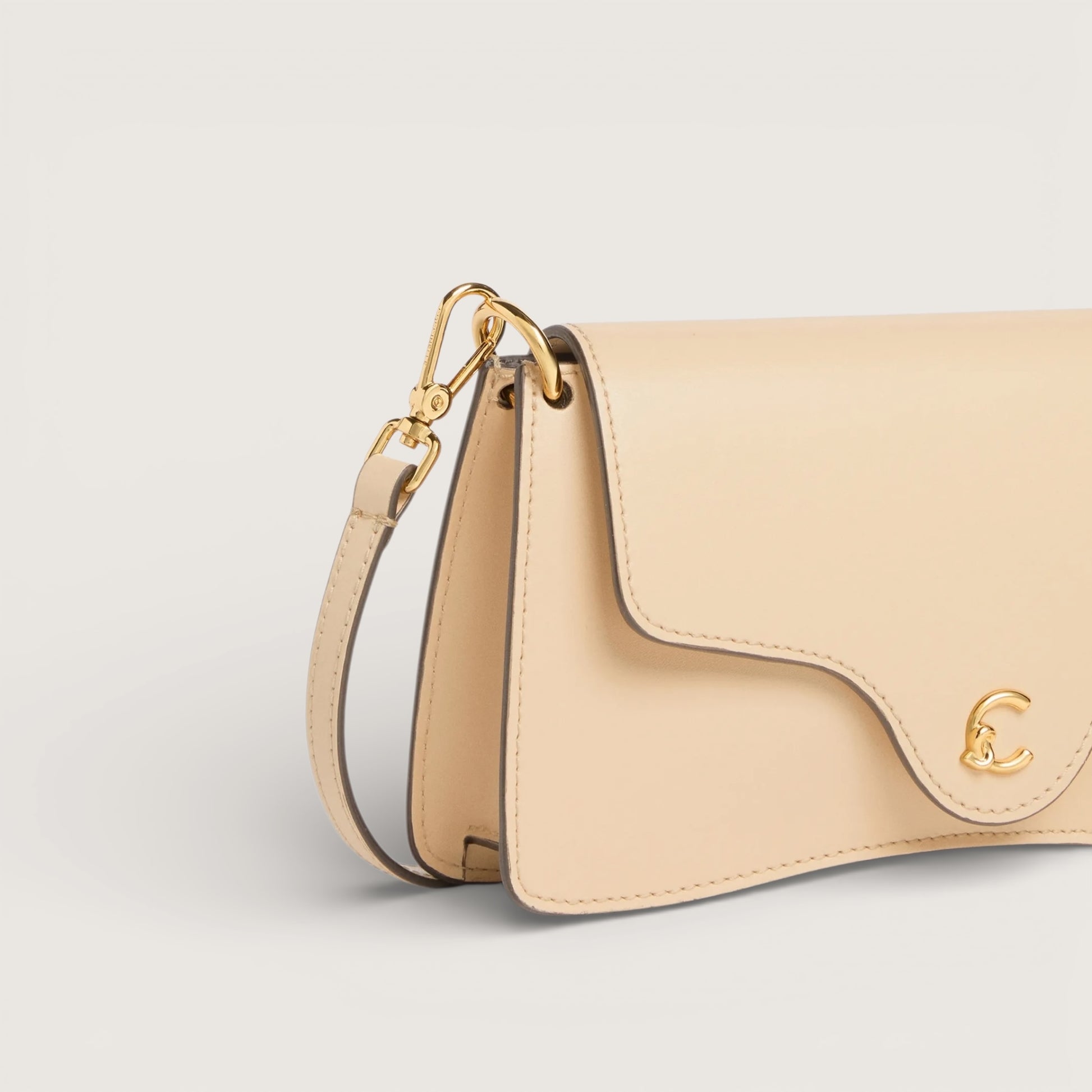 Coccinelle C-Me — новий фірмовий символ бренду. Літера “C” обвиває медіатор — знаковий елемент Coccinelle, уособлюючи зв’язок між минулим і сучасністю в житті жінки. Геометричні лінії та витончені вигини підкреслюють сучасний характер моделі, а складна бокова конструкція (gusseted) додає зручності й стриманої елегантності. Ця сумка задумана як універсальний супутник жінки протягом усього дня. Виготовлена зі шкіри, що проходить спеціальну машинну обробку, завдяки чому зберігає свою природну м’якість. Матеріал міцний, стійкий до зносу й легкий у догляді, тому сумка чудово підходить для щоденного використання.