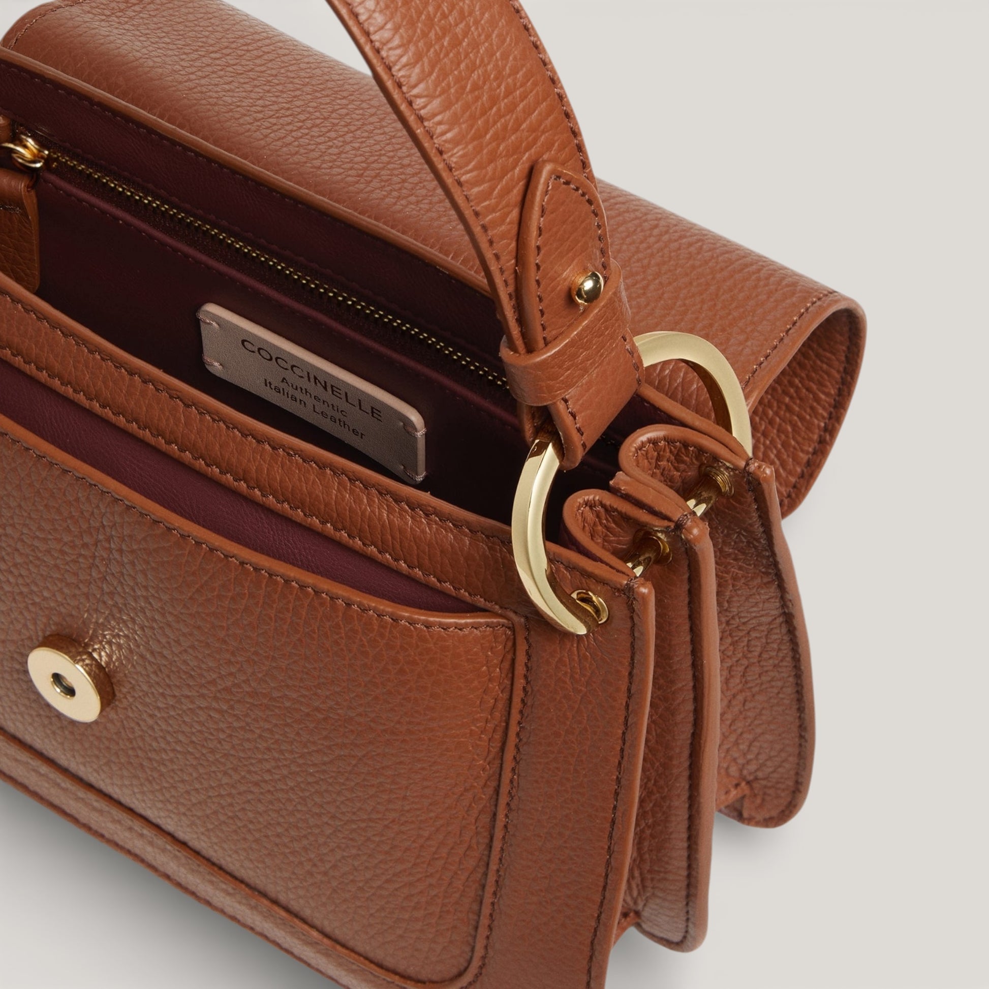 У колекції Coccinelle з’являється новий знаковий елемент – C-Me. Логотип переосмислено: літера «C» із назви бренду витончено огортає і переплітається з медіатором – культовим символом Coccinelle, що уособлює нерозривний зв’язок між минулим і теперішнім у житті жінки. Геометричні лінії та елегантні вигини підкреслюють дизайн, а конструкція з ластовицями поєднує в цій сумці функціональність і стриману елегантність, призначену для того, щоб бути незамінним супутником жінки Coccinelle протягом усього дня. Ця модель виготовлена зі шкіри, обробленої на спеціалізованих машинах, а потім вивернутої, щоб зберегти її м’якість. Це дуже міцна шкіра, яка легко чиститься, що робить її ідеальною для щоденного використання.