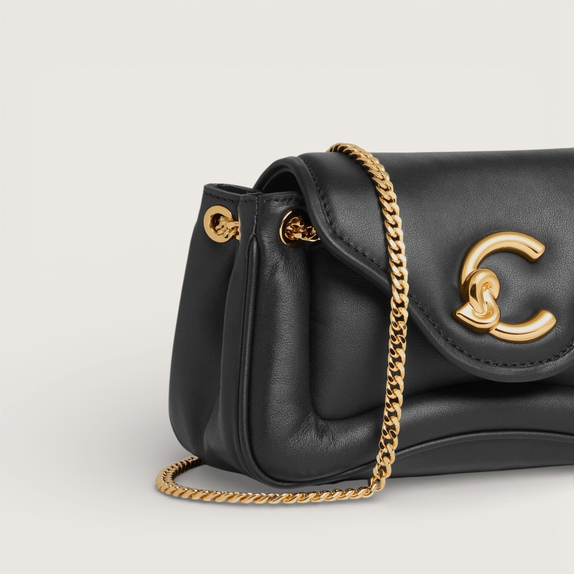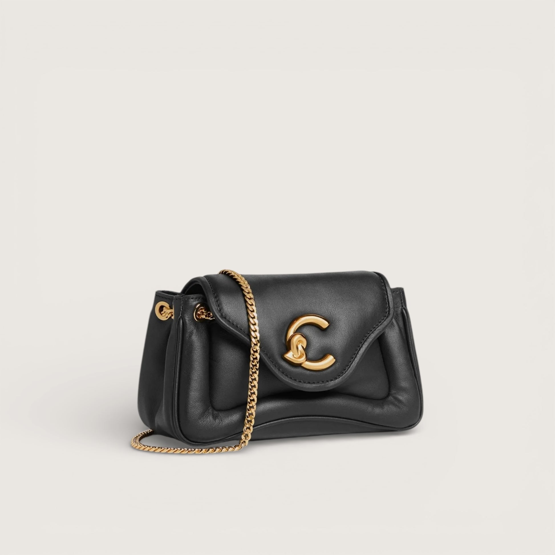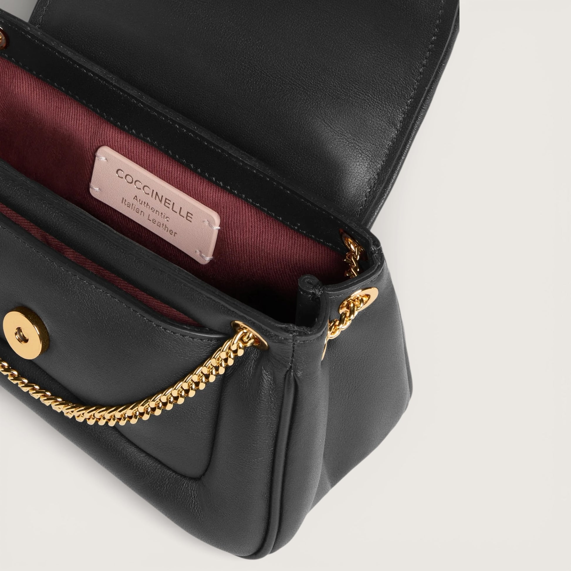 Coccinelle C-Me тепер представлена в новій версії, виготовленій з м’якої, злегка ущільненої гладкої шкіри. Завдяки делікатній конструкції та плечовому ремінцю-ланцюжку ця сумка ідеально доповнює образ жінки Coccinelle для особливих подій. Модель виконана з гладкої шкіри, вичиненої з використанням спеціальних олій, що надають їй надзвичайної м’якості на дотик. Попри шовковистий вигляд, шкіра стійка до впливу погодних умов завдяки застосуванню смол, які роблять матеріал злегка водовідштовхувальним, зберігаючи при цьому його природну текстуру та естетику.