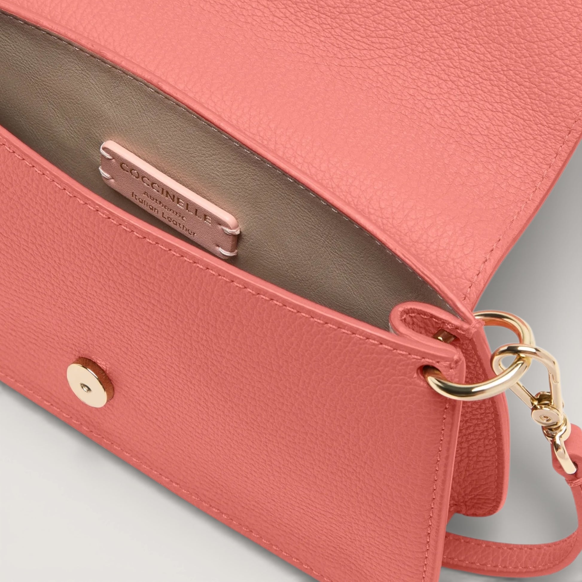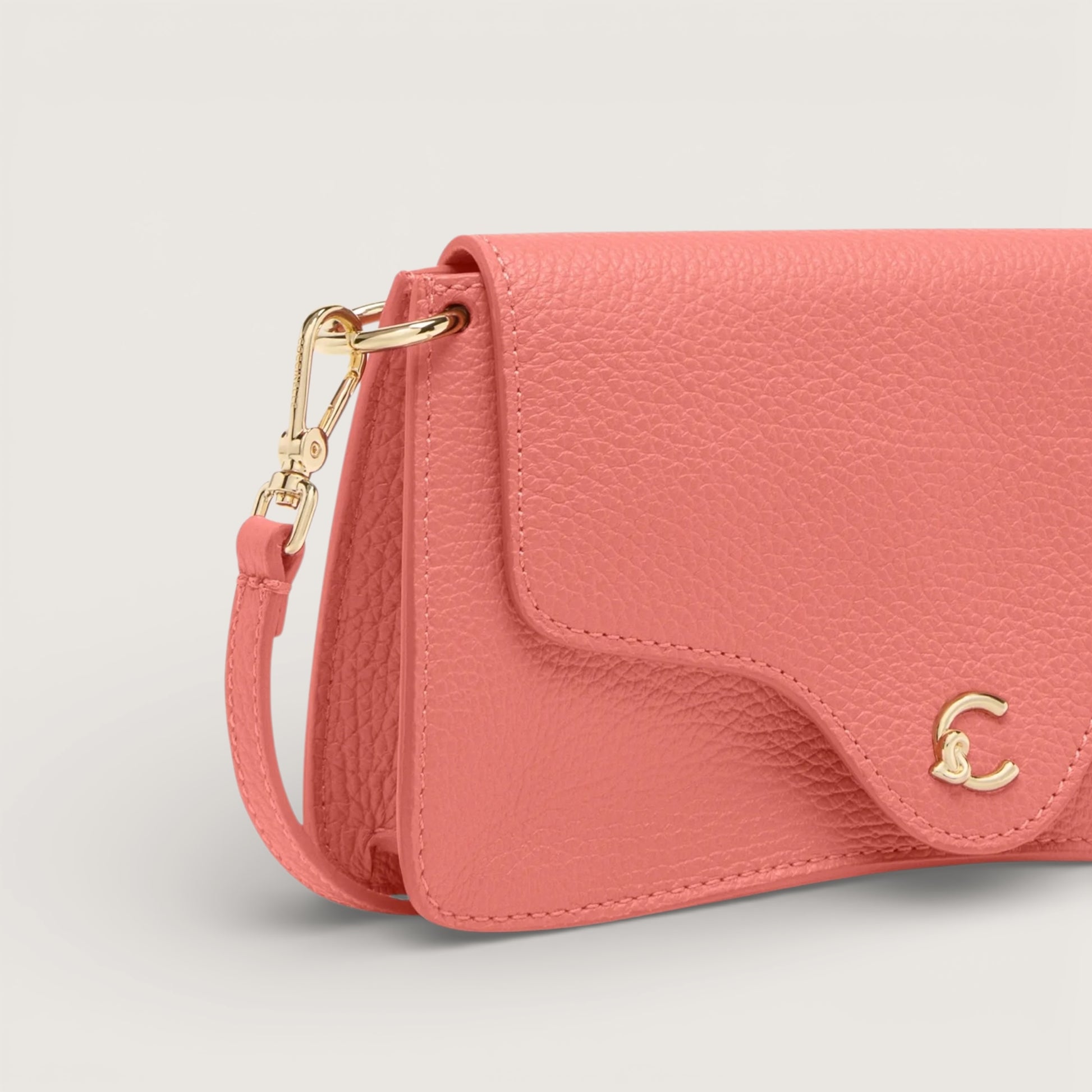 Coccinelle C-Me — новий фірмовий символ бренду. Літера “C” обвиває медіатор — знаковий елемент Coccinelle, уособлюючи зв’язок між минулим і сучасністю в житті жінки. Геометричні лінії та витончені вигини підкреслюють сучасний характер моделі, а складна бокова конструкція (gusseted) додає зручності й стриманої елегантності. Ця сумка задумана як універсальний супутник жінки протягом усього дня. Виготовлена зі шкіри, що проходить спеціальну машинну обробку, завдяки чому зберігає свою природну м’якість. Матеріал міцний, стійкий до зносу й легкий у догляді, тому сумка чудово підходить для щоденного використання.
