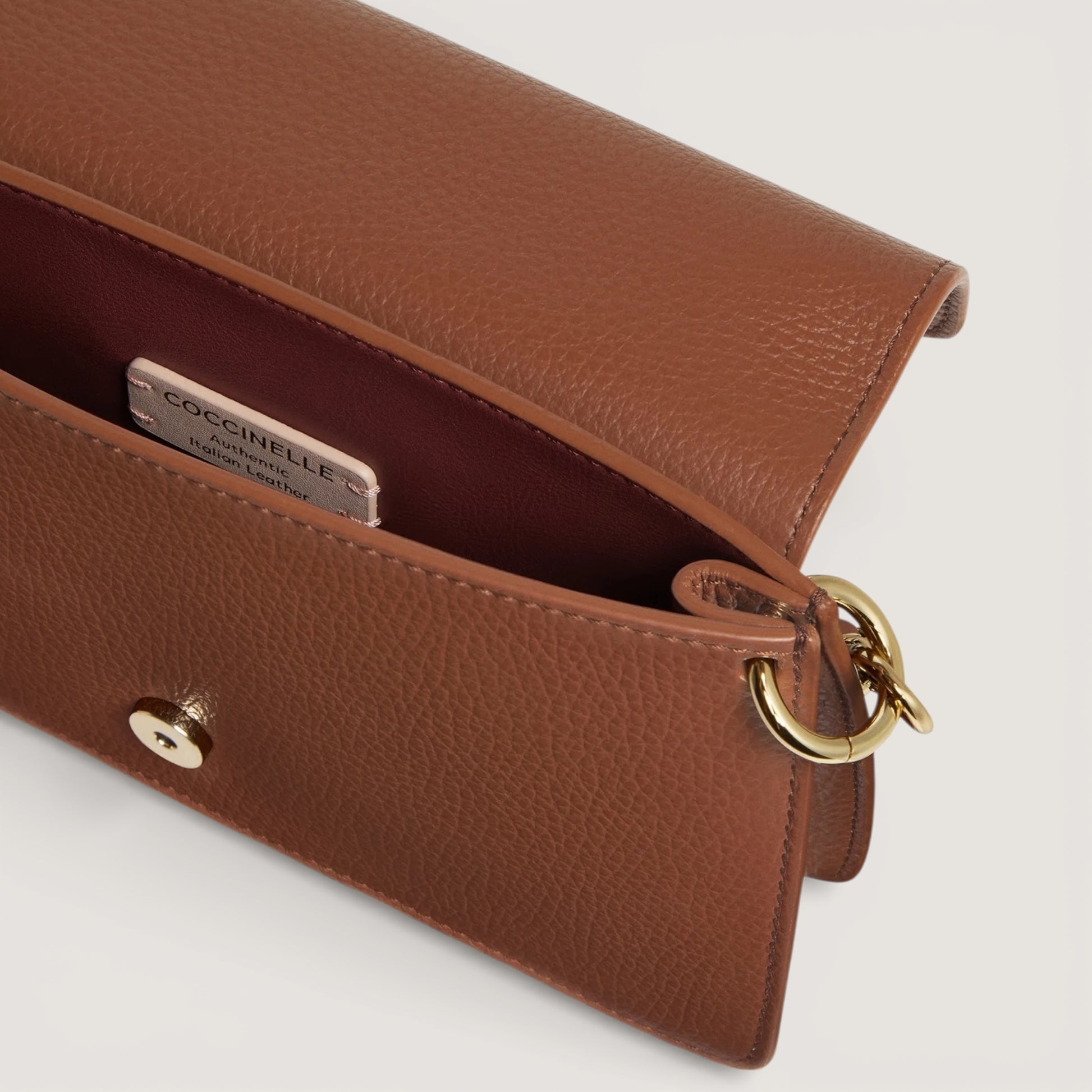 Coccinelle C-Me — новий фірмовий символ бренду. Літера “C” обвиває медіатор — знаковий елемент Coccinelle, уособлюючи зв’язок між минулим і сучасністю в житті жінки. Геометричні лінії та витончені вигини підкреслюють сучасний характер моделі, а складна бокова конструкція (gusseted) додає зручності й стриманої елегантності. Ця сумка задумана як універсальний супутник жінки протягом усього дня. Виготовлена зі шкіри, що проходить спеціальну машинну обробку, завдяки чому зберігає свою природну м’якість. Матеріал міцний, стійкий до зносу й легкий у догляді, тому сумка чудово підходить для щоденного використання.