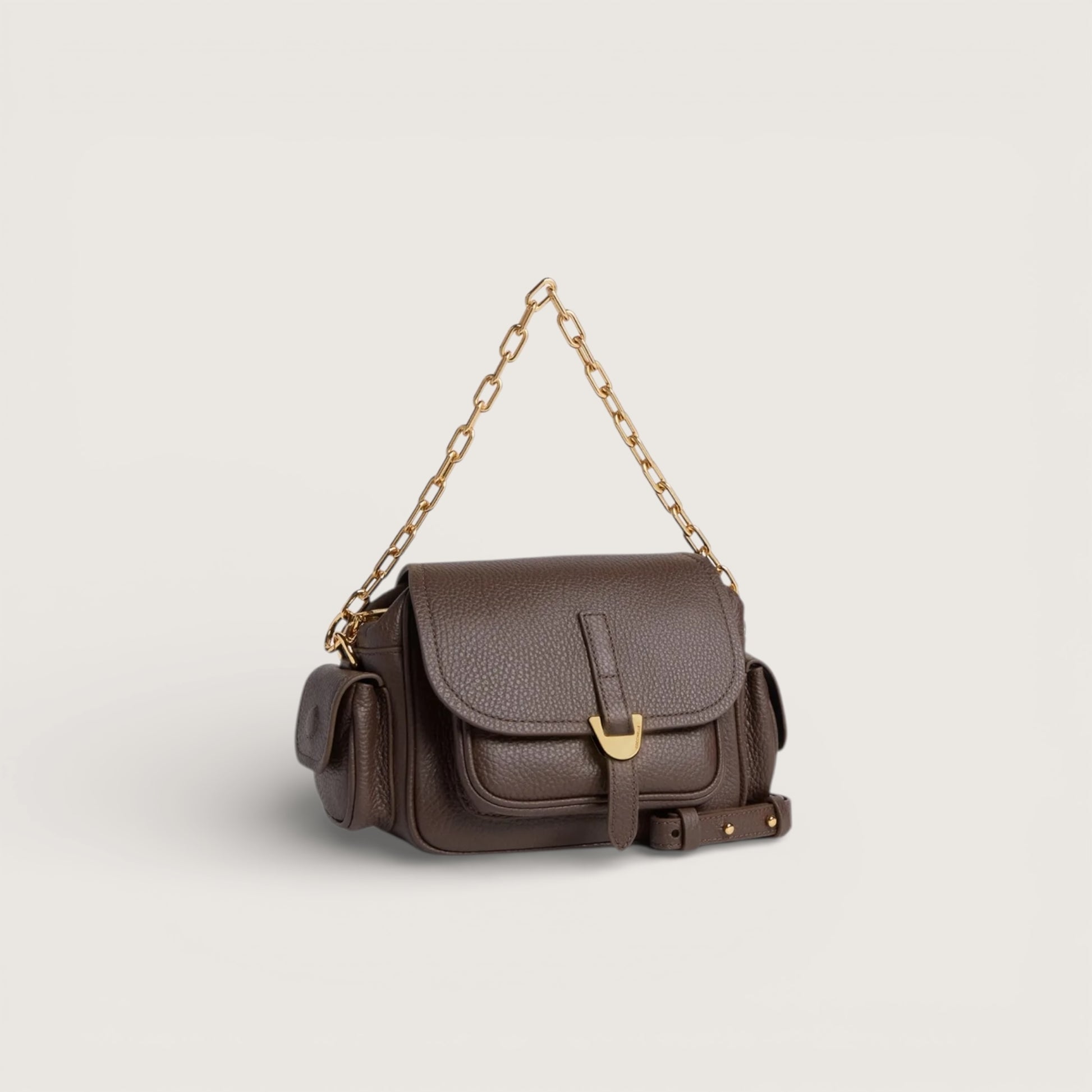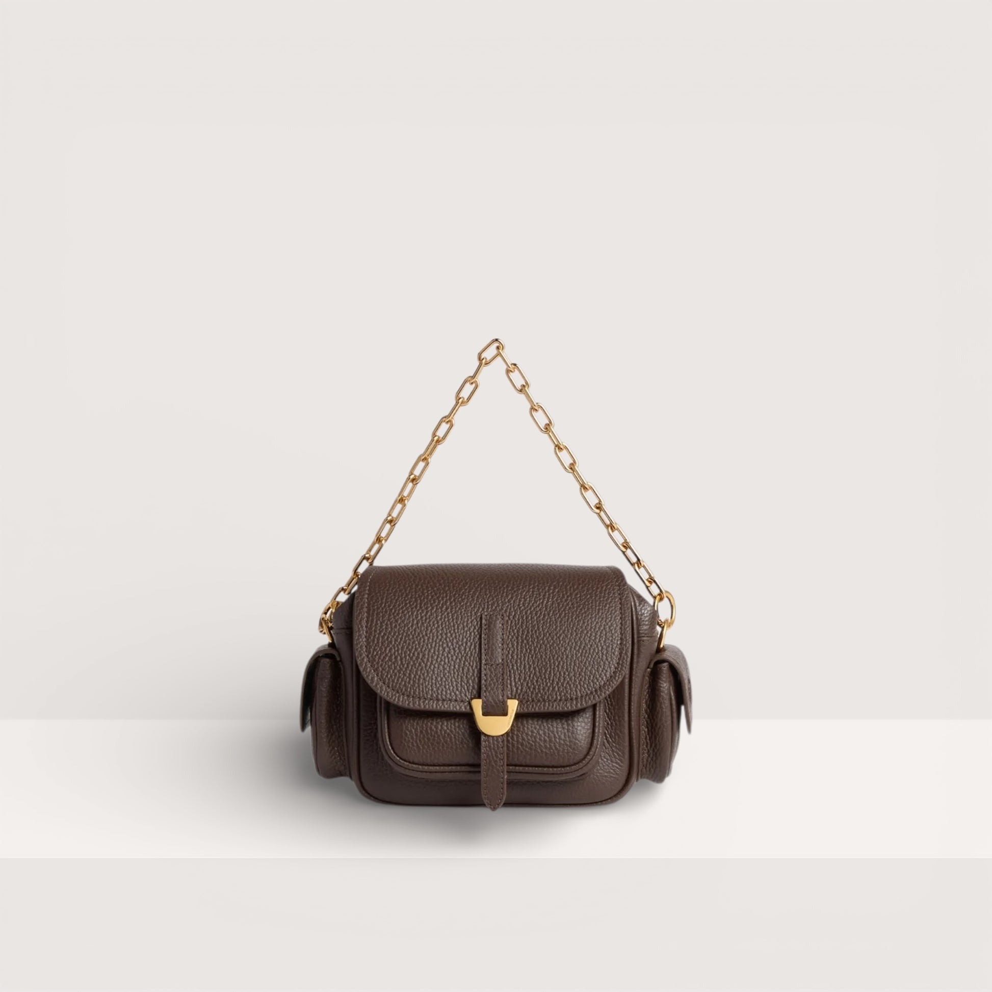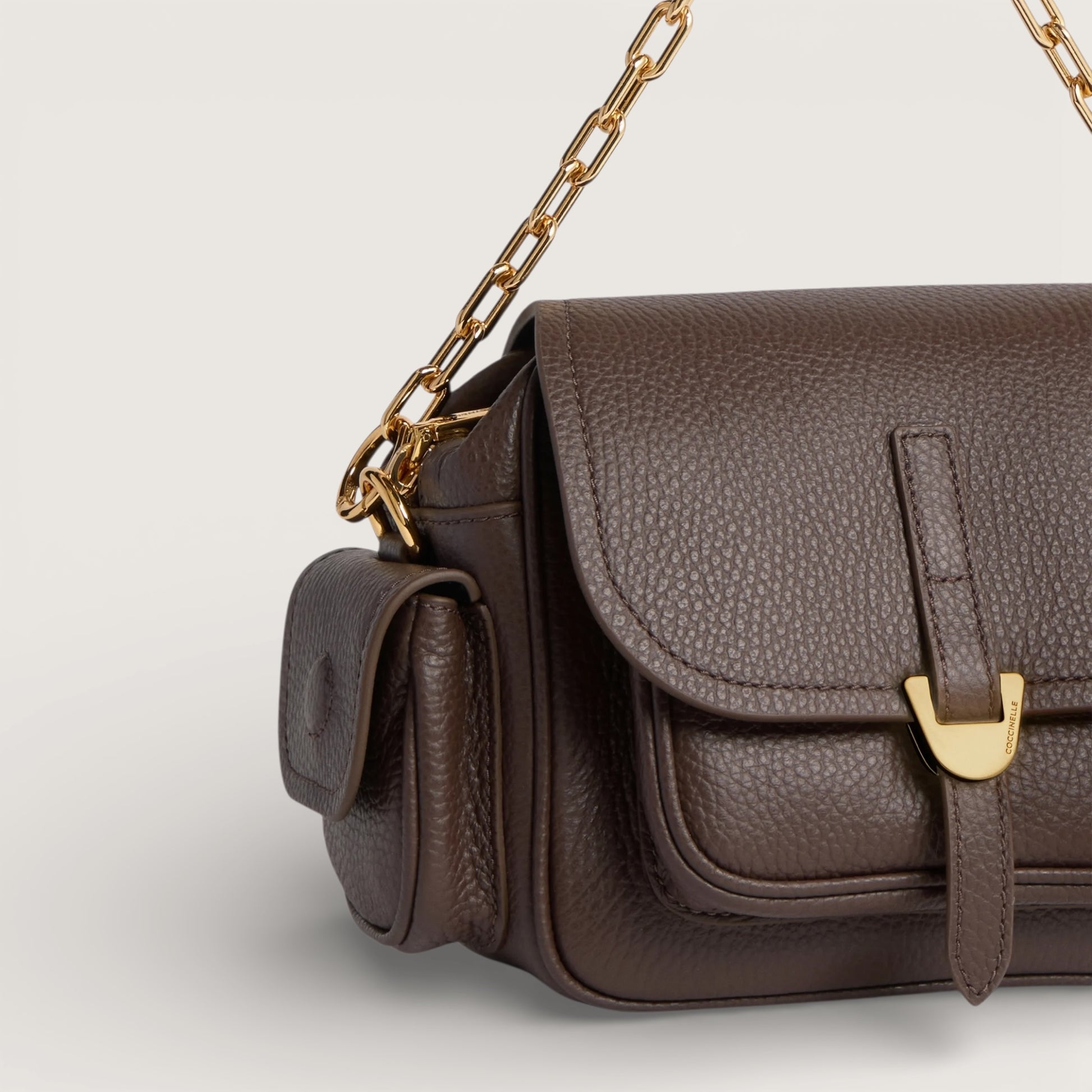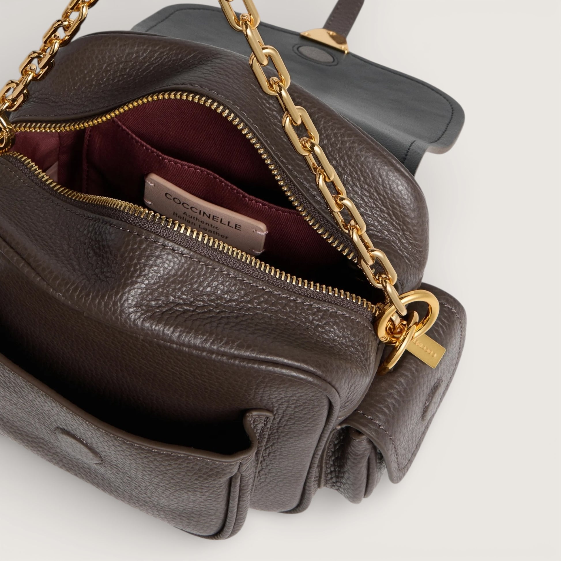 Coccinelle Campus майстерно поєднує фірмові елементи стилю Coccinelle з естетикою класичних студентських портфелів. У результаті створено модель з яскравим і привабливим характером, доповнену металевими деталями в культовій формі плектруму. Ідеальна міні-сумка, що вирізняється космополітичним стилем і багатофункціональним дизайном з кількома кишенями, які забезпечують додатковий простір для зберігання особистих речей — зручно закривається клапаном і внутрішньою блискавкою. Ручка-ланцюжок у поєднанні зі шкіряним ремінцем дозволяє носити сумку як у руці, так і через плече. Модель виготовлена зі шкіри, обробленої на спеціальних машинах і підданої барабанній обробці для збереження м’якості. Це дуже міцна шкіра, яка легко чиститься — ідеальна для щоденного використання.