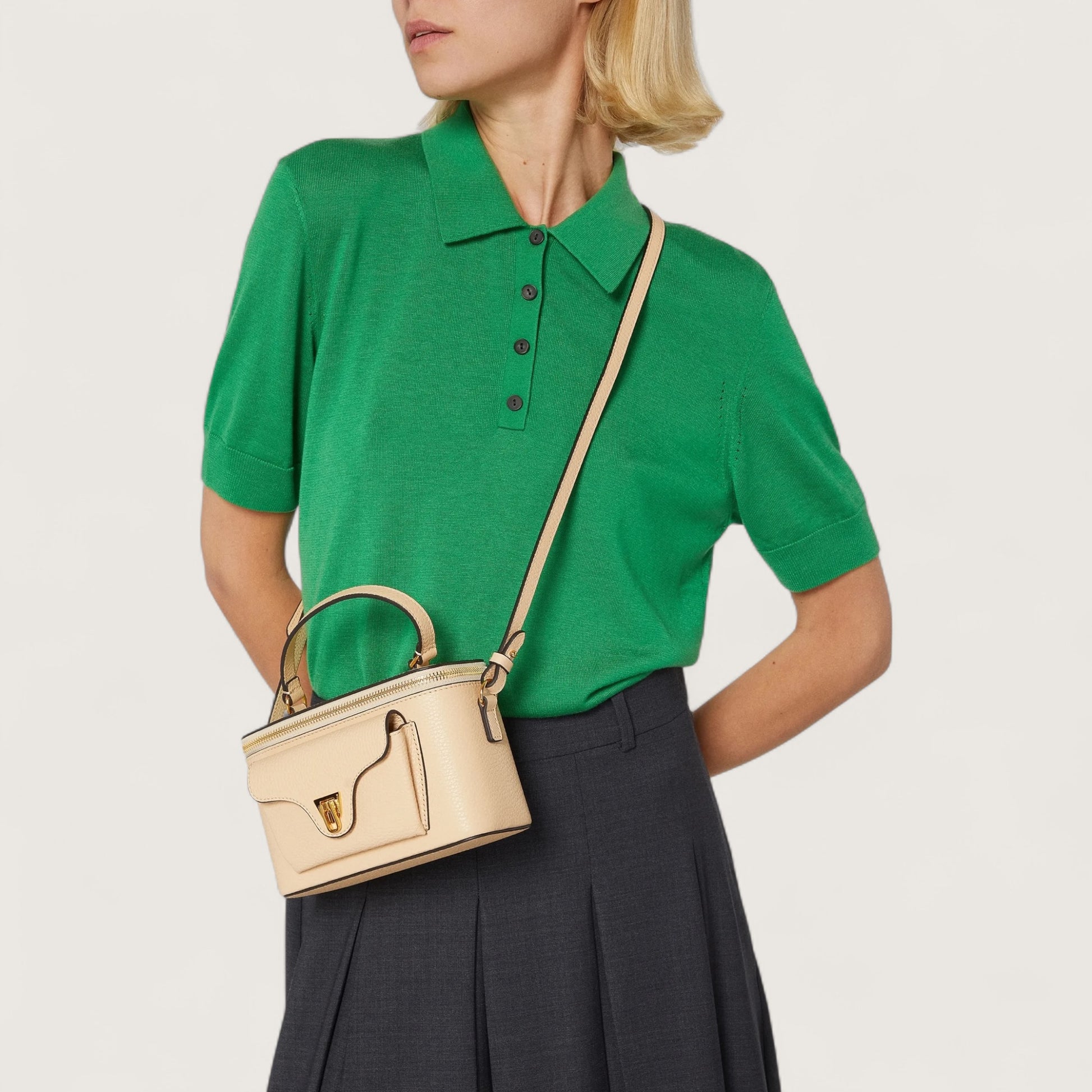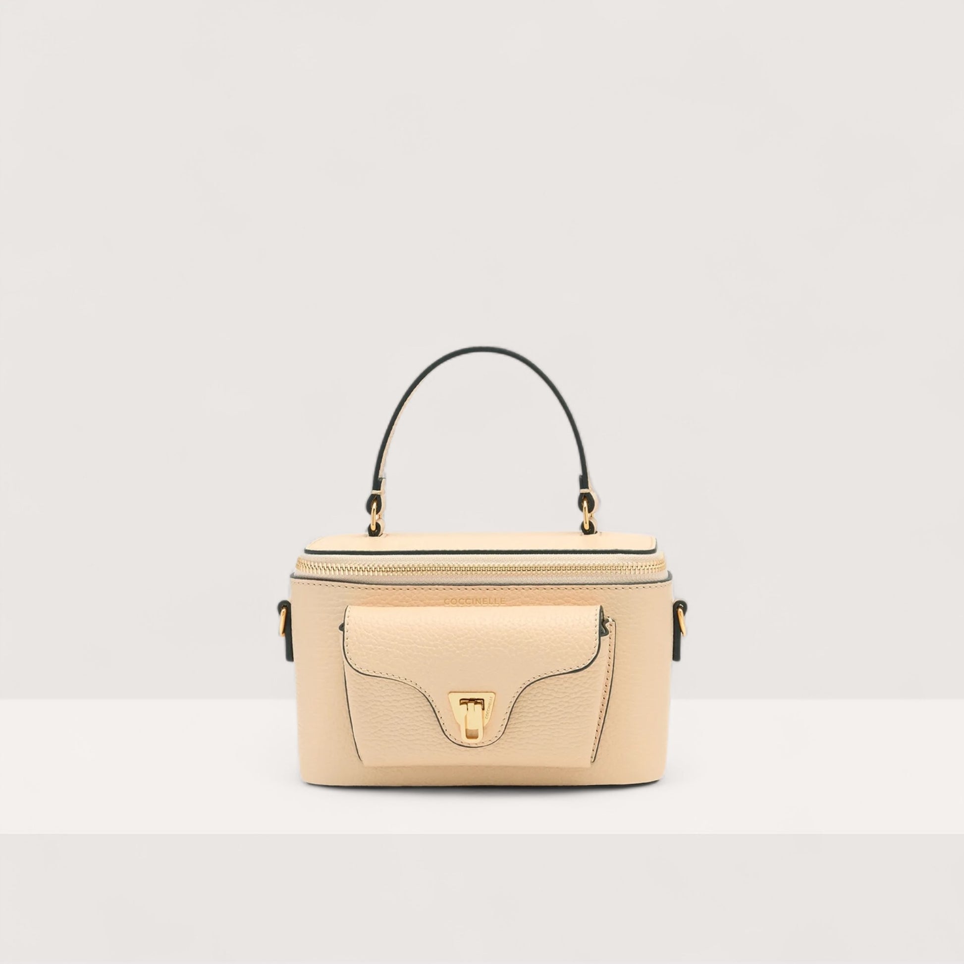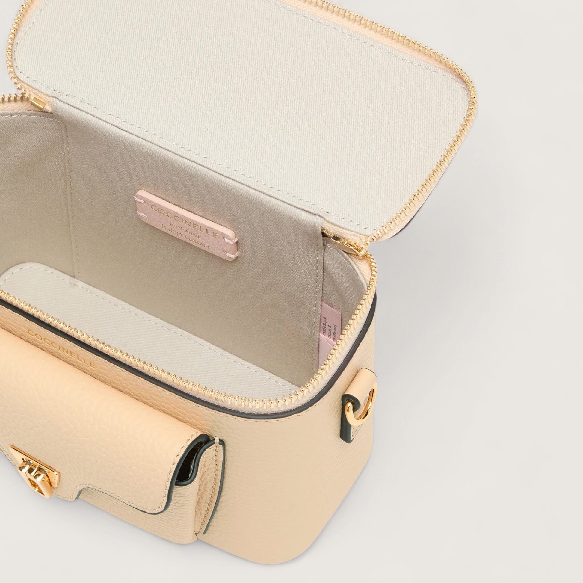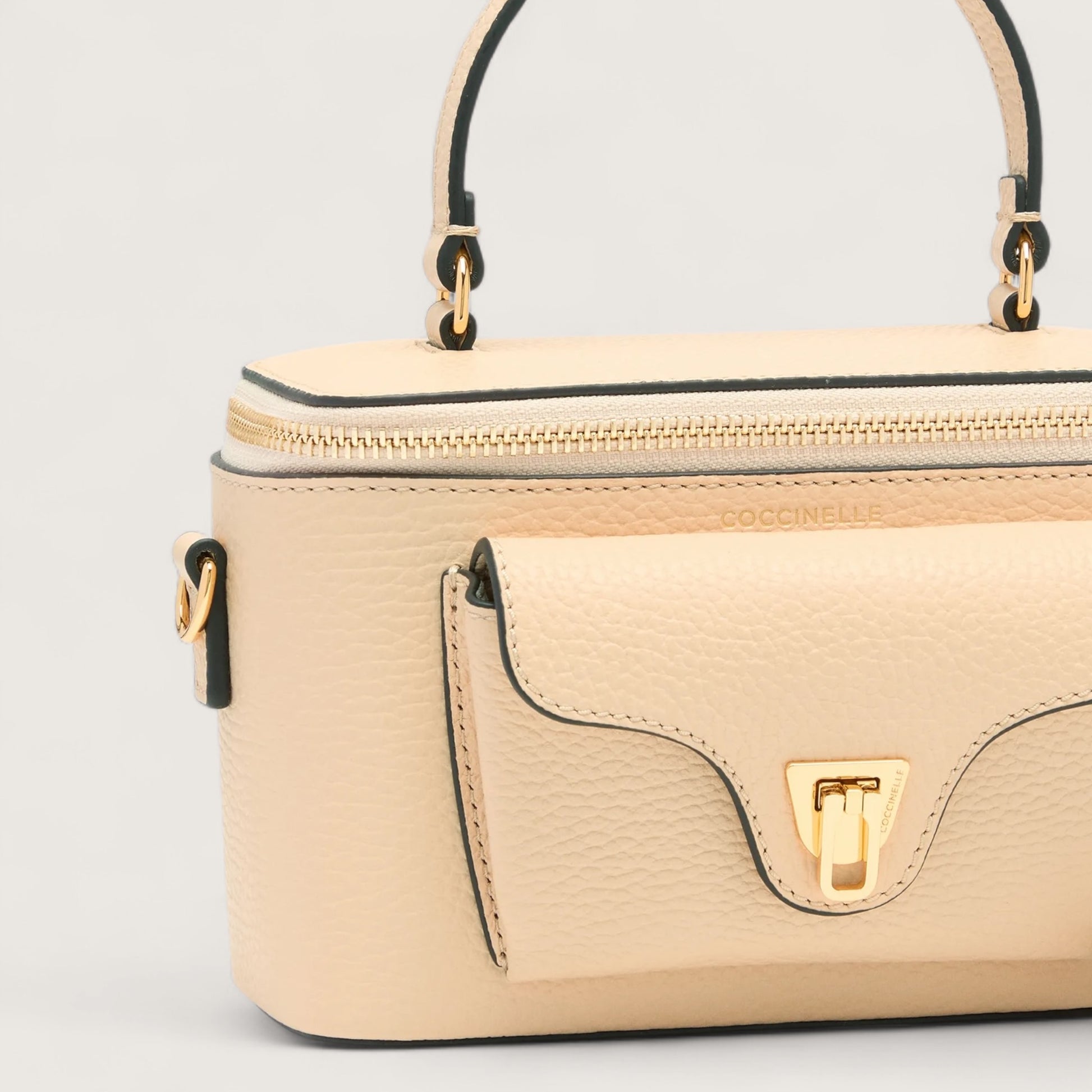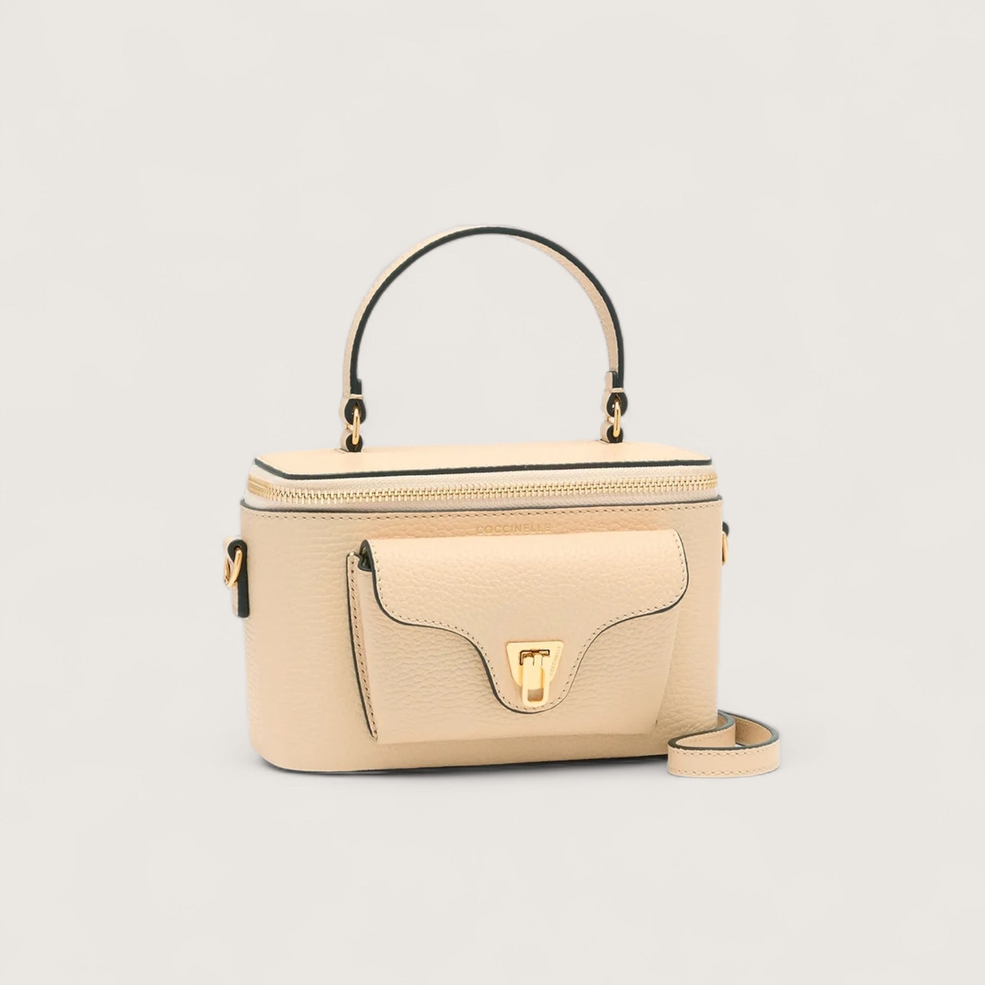 Лінія Coccinelle Beat — одна з найвідоміших у колекції бренду. Її впізнаваною ознакою є застібка у формі плектра, що стала символом стилю Coccinelle. Міні-сумка Beat із шкіряним плечовим ремінцем поєднує чіткий силует і м’які лінії, зручність і сучасну елегантність. Виготовлена зі шкіри, обробленої на спеціальному обладнанні та м’яко протумбованої, щоб зберегти її природну гнучкість. Матеріал витривалий, стійкий до щоденного носіння та легкий у догляді, що робить цю модель ідеальною для щоденного використання.