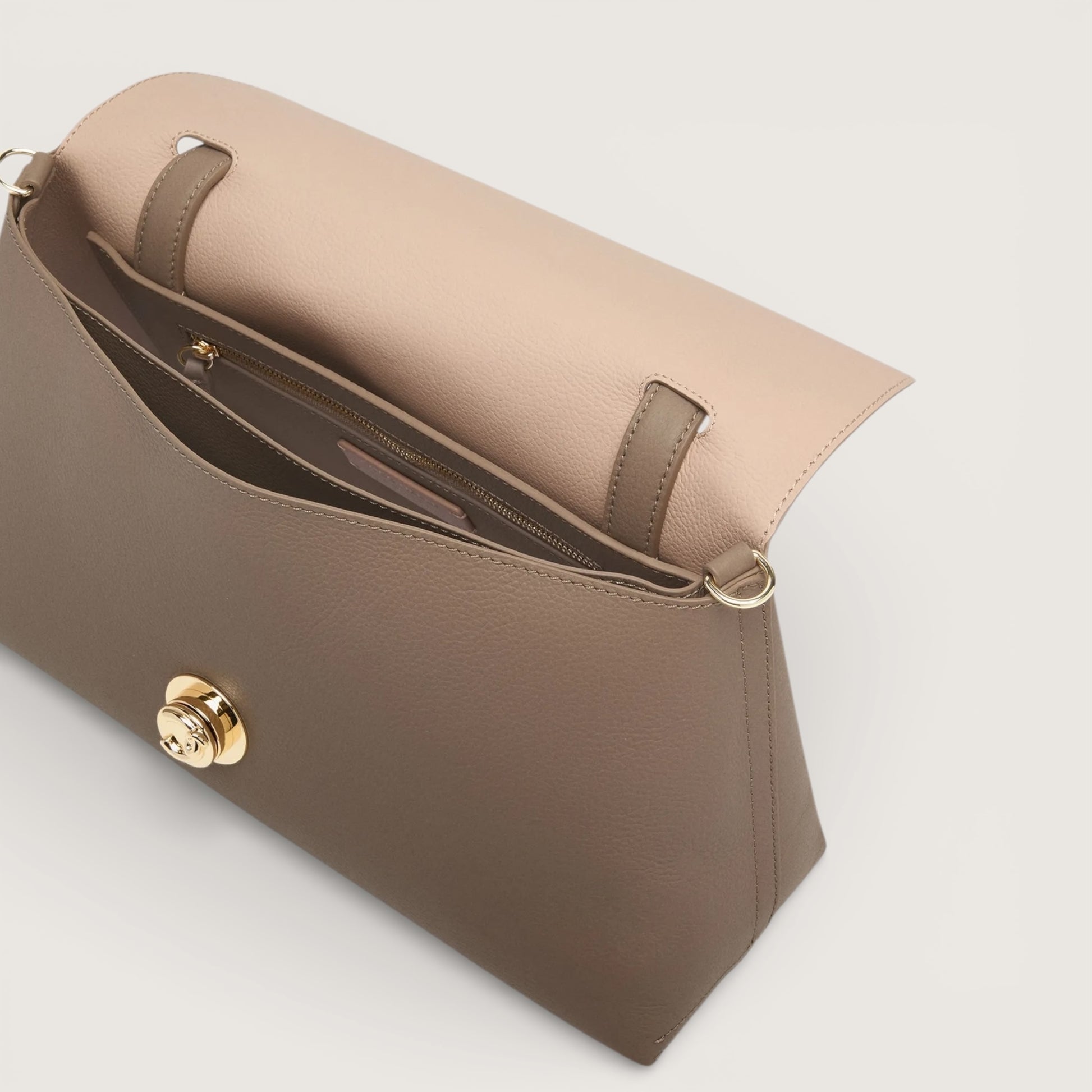 Для лінійки Coccinelle Nikla логотип C-Me набуває вигляду вишуканого поворотного замка, який елегантно доповнює сумку з клапаном. Витончена та сучасна, кожна модель поєднує позачасову елегантність із актуальним силуетом, підкресленим м’якістю шкіри. Сумка має просторе основне відділення та задню кишеню, а також виготовлена з двосторонньої шкіри. Ця модель виконана зі шкіри, обробленої на спеціалізованому обладнанні та додатково пом’якшеної шляхом тумблювання для досягнення надзвичайно м’якої текстури. Особливістю є пігментне покриття з обох боків, що створює ефект двосторонньої шкіри. Матеріал відрізняється міцністю, завдяки чому сумка ідеально підходить для щоденного використання.