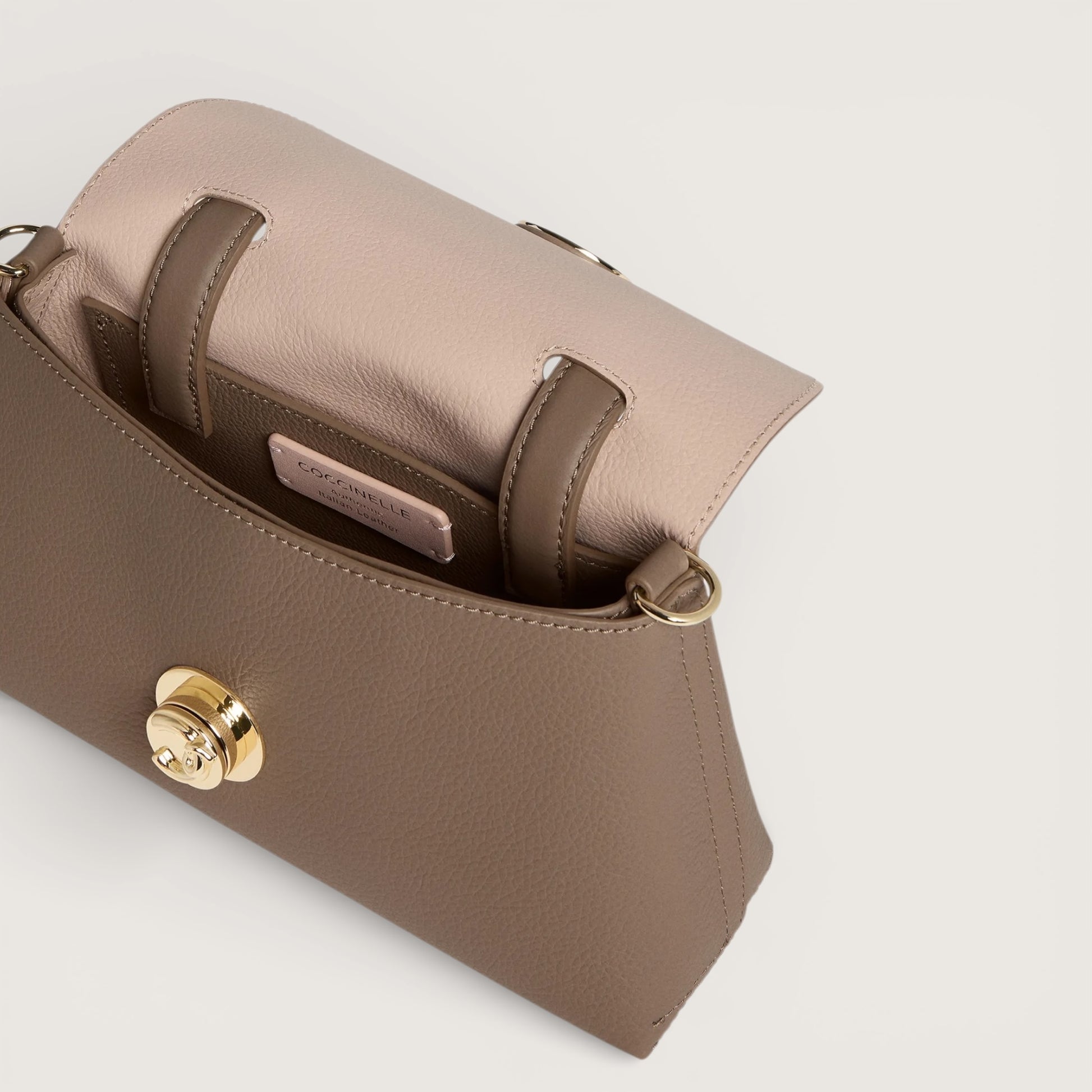 Для лінійки Coccinelle Nikla логотип C-Me набуває вигляду вишуканого поворотного замка, який елегантно доповнює сумку з клапаном. Витончена та сучасна, кожна модель поєднує позачасову елегантність із актуальним силуетом, підкресленим м’якістю шкіри. Сумка має просторе основне відділення та задню кишеню, а також виготовлена з двосторонньої шкіри. Ця модель виконана зі шкіри, обробленої на спеціалізованому обладнанні та додатково пом’якшеної шляхом тумблювання для досягнення надзвичайно м’якої текстури. Особливістю є пігментне покриття з обох боків, що створює ефект двосторонньої шкіри. Матеріал відрізняється міцністю, завдяки чому сумка ідеально підходить для щоденного використання.