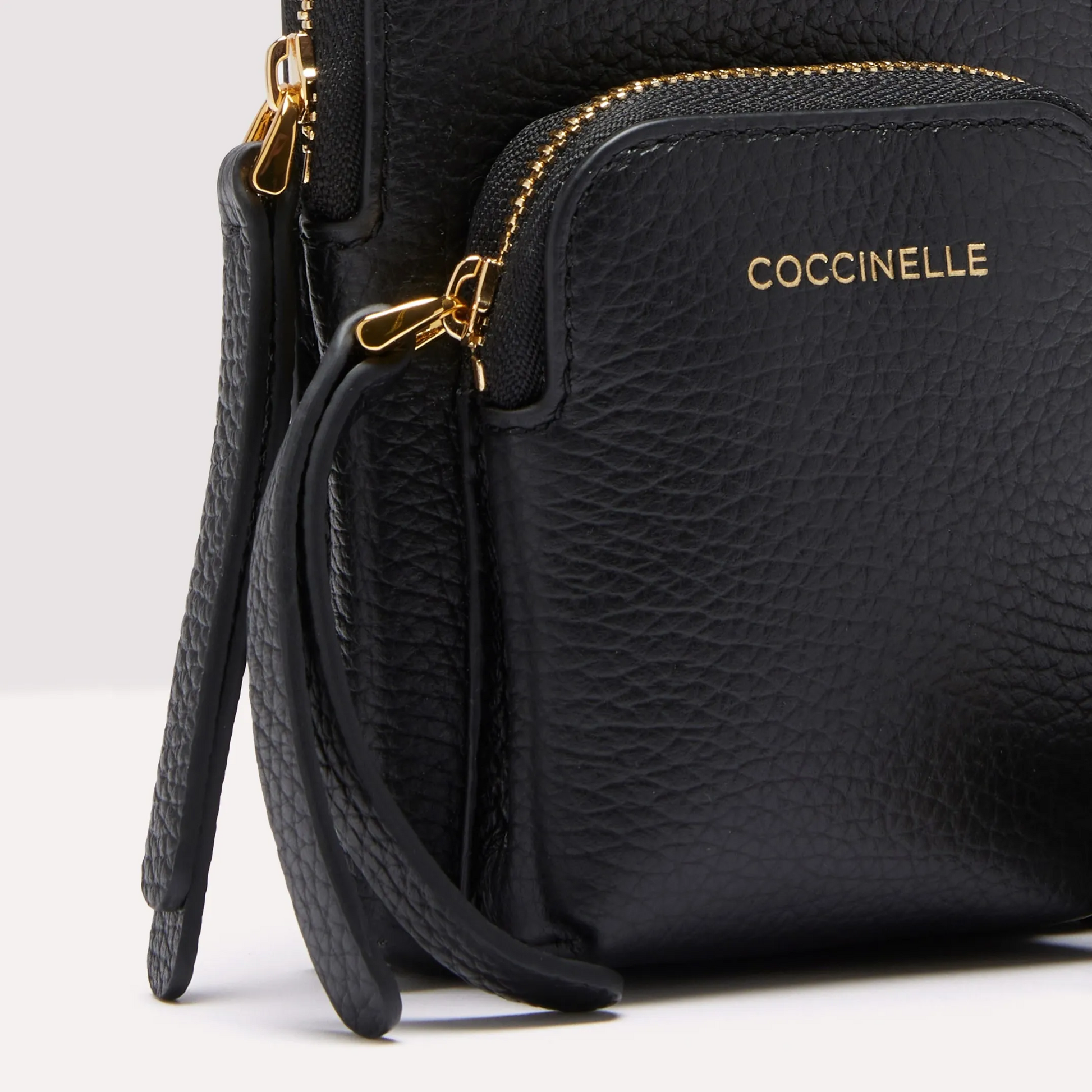 Сумка з лінії Coccinelle Pixie — ідеальний аксесуар для зручного зберігання телефону та навушників. Вбудований тримач для карток додає практичності, а монограмний плечовий ремінь надає сучасного шарму. Унікальний аксесуар для того, щоб носити всі необхідні речі з собою в будь-який час. Модель виготовлена з шкіри, обробленої спеціальними машинами та обробленої в барабані для збереження м'якості. Це дуже міцна, легко очищувана шкіра, що робить її ідеальною для щоденного використання.