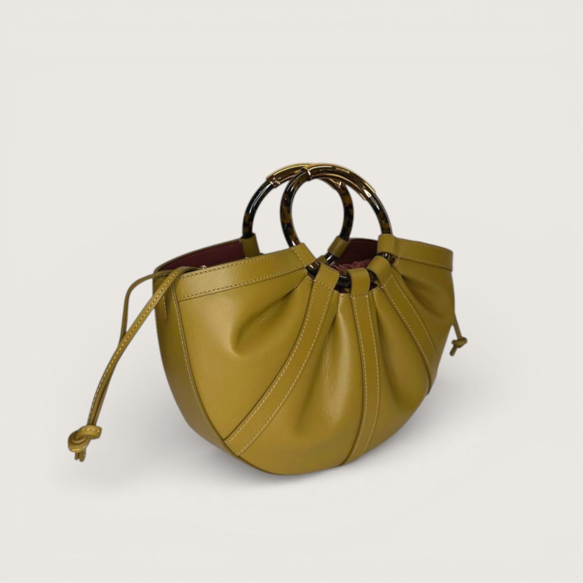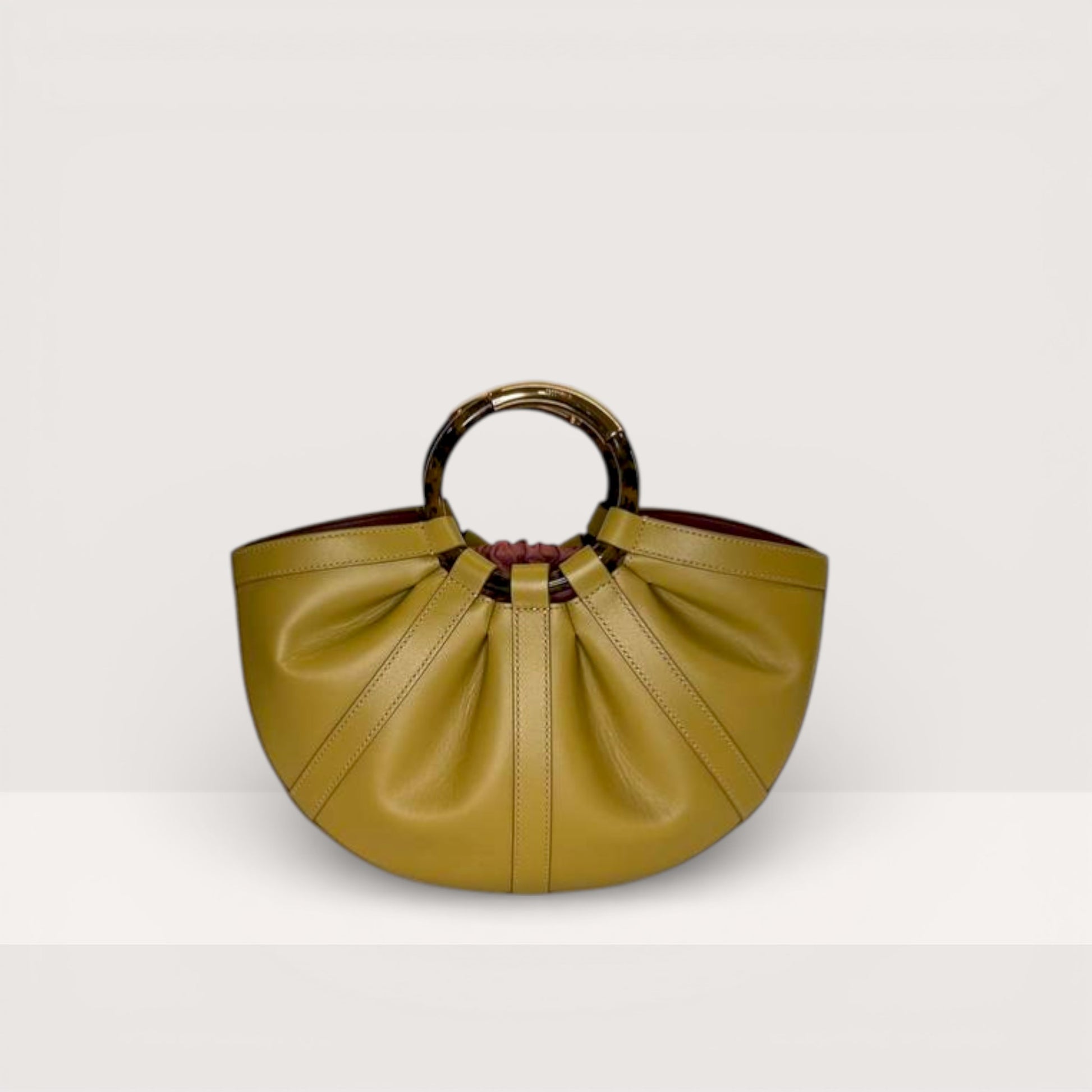 Сумка Coccinelle Shell передає настрій колекції завдяки витонченій формі півмісяця, натхненній силуетом морської мушлі. Елегантна конструкція з гладкої драпірованої шкіри доповнена круглими ручками з ефектом черепахового панцира та металевими елементами, які додають моделі виразності та сучасного характеру. Для зручності та безпеки сумка оснащена знімним внутрішнім мішечком зі шнурком, що дозволяє акуратно та надійно зберігати особисті речі. Модель виконана з гладкої натуральної шкіри зі спеціальною обробкою, яка надає матеріалу м’якості та приємної текстури. Попри шовковистий вигляд, шкіра вирізняється міцністю, стійкістю до зовнішніх впливів і має легкі водовідштовхувальні властивості, зберігаючи свій природний вигляд.