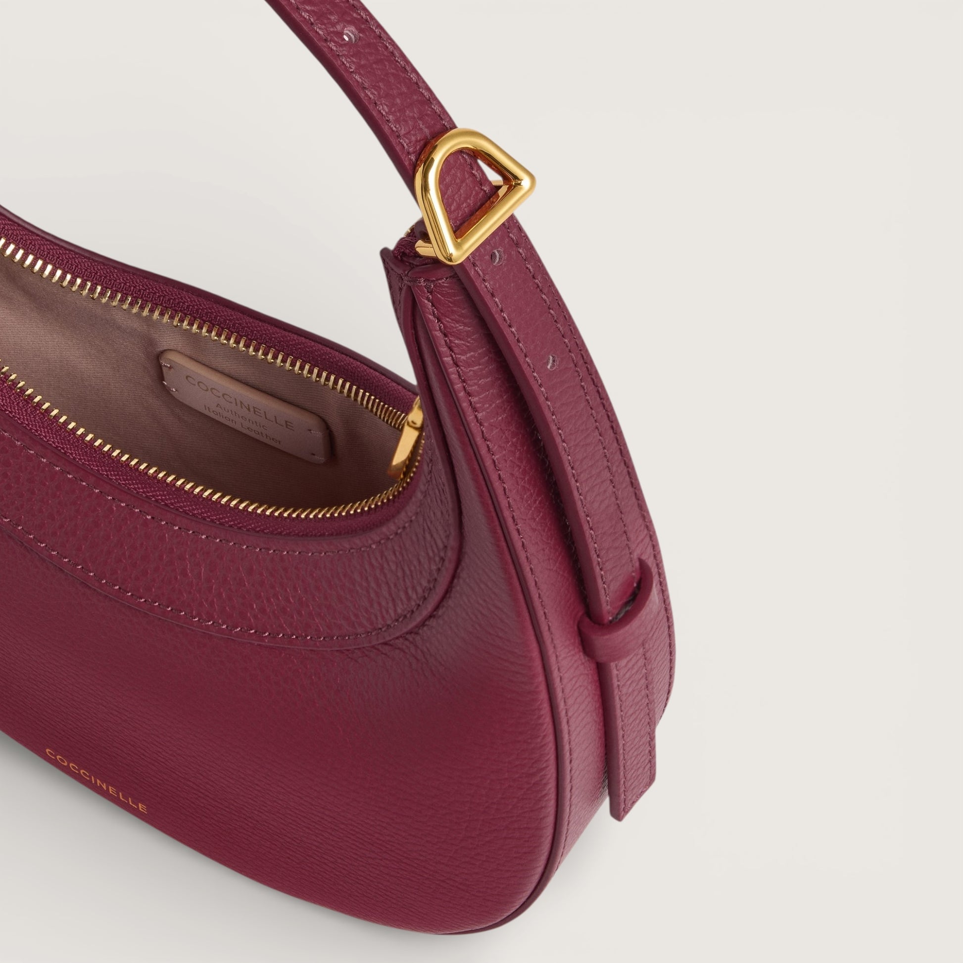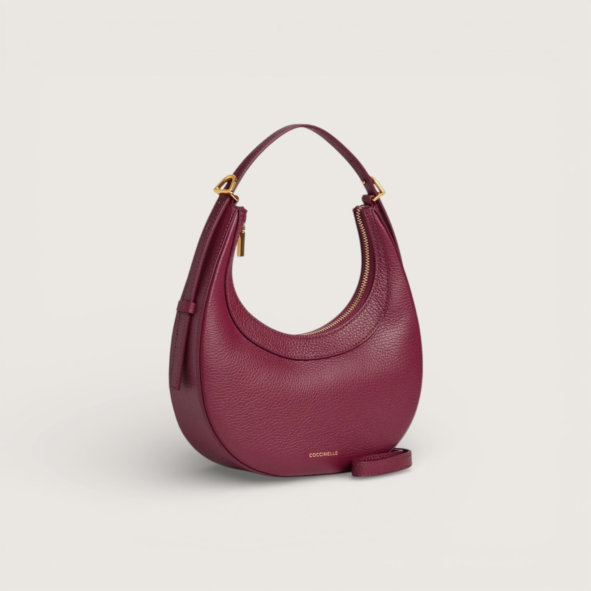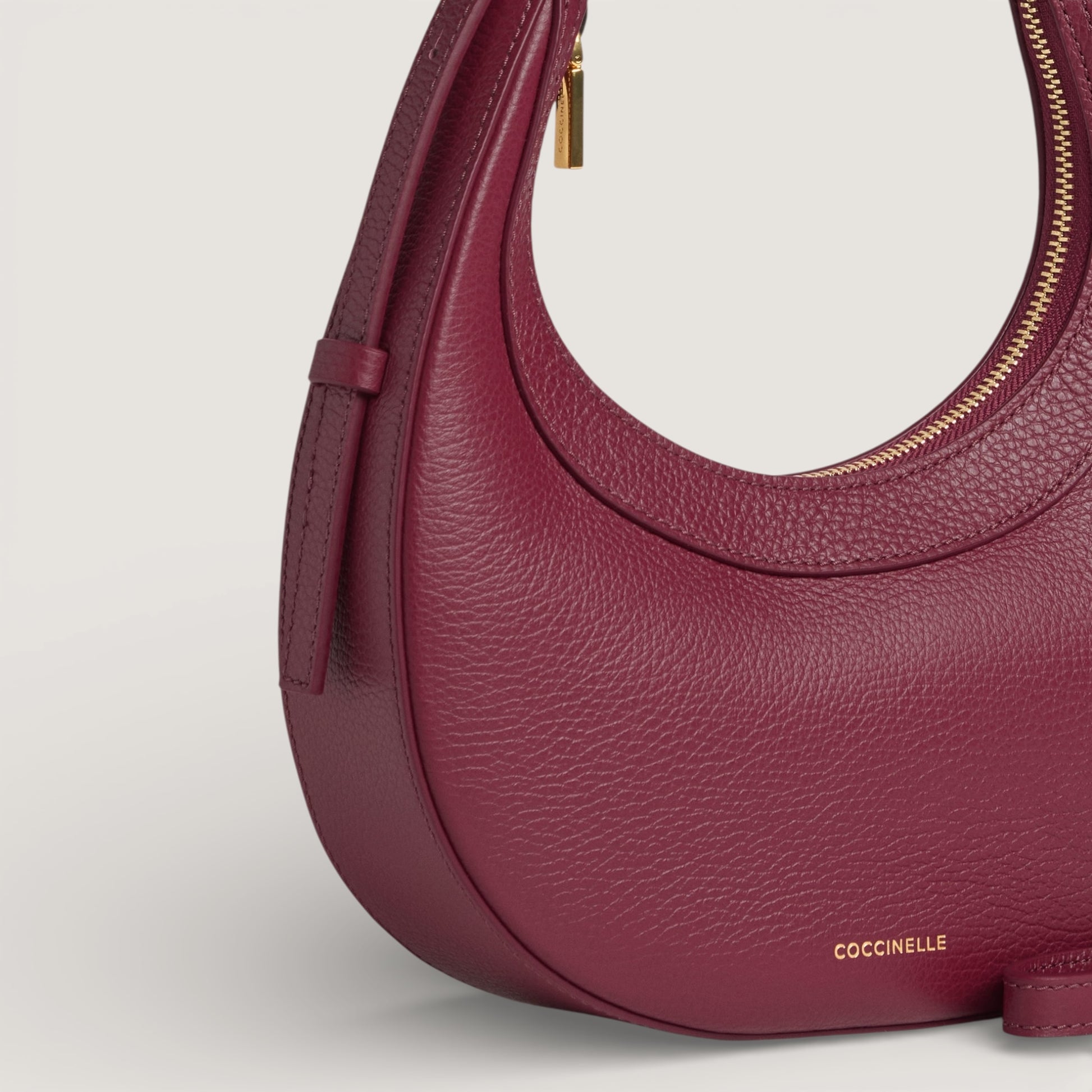 Coccinelle Whisper — це сумка з мінімалістичним дизайном, яку вирізняє округлий силует. Регульований шкіряний плечовий ремінець і деталі у формі медіатора надають їй вишуканості й елегантності, роблячи цю модель ідеальним аксесуаром для будь-якої нагоди. Сумку виготовлено зі шкіри, обробленої на спеціалізованому обладнанні, а потім пом’якшеної методом барабанного тиснення, щоб зберегти її м’якість. Це дуже міцна та легка в догляді шкіра, що робить виріб зручним для щоденного використання.