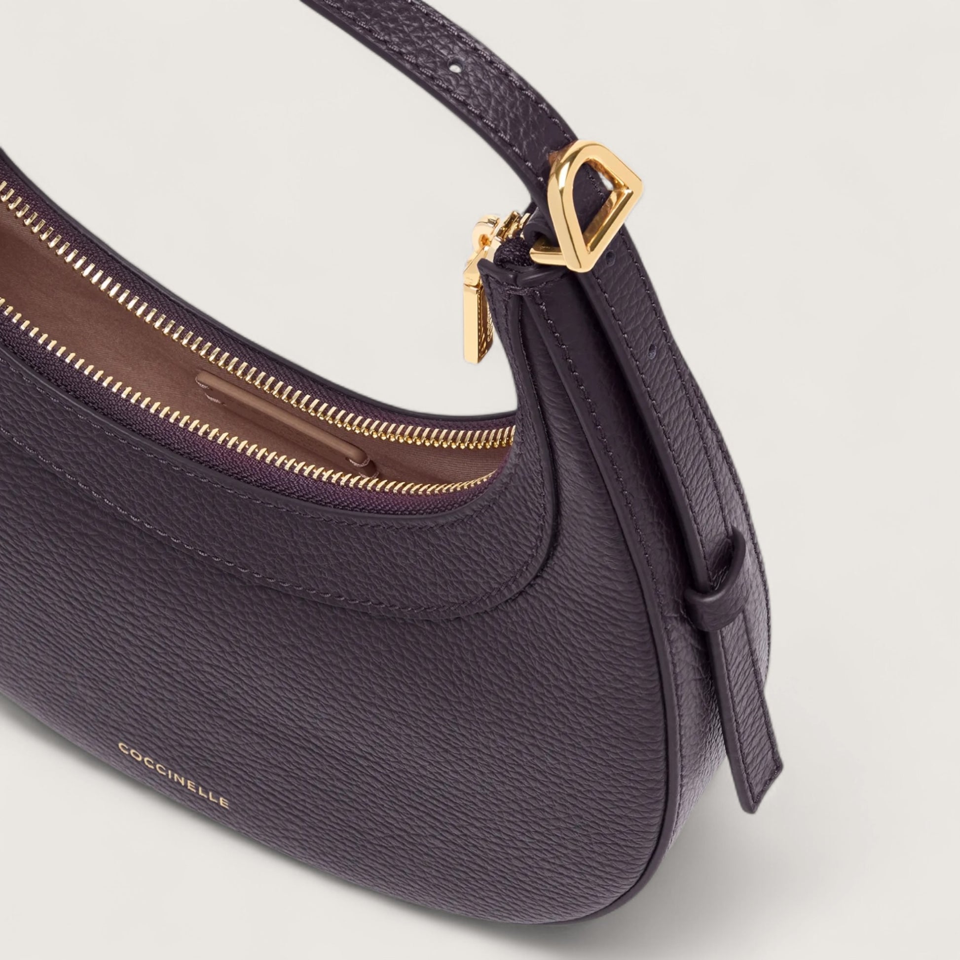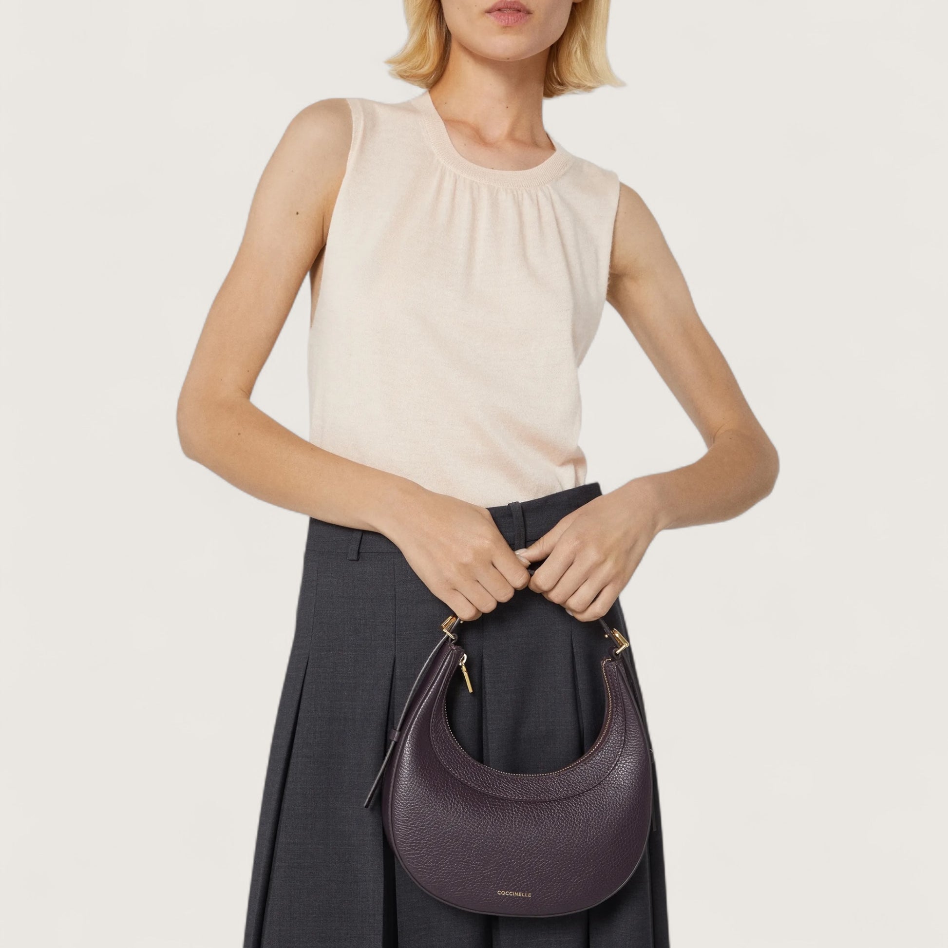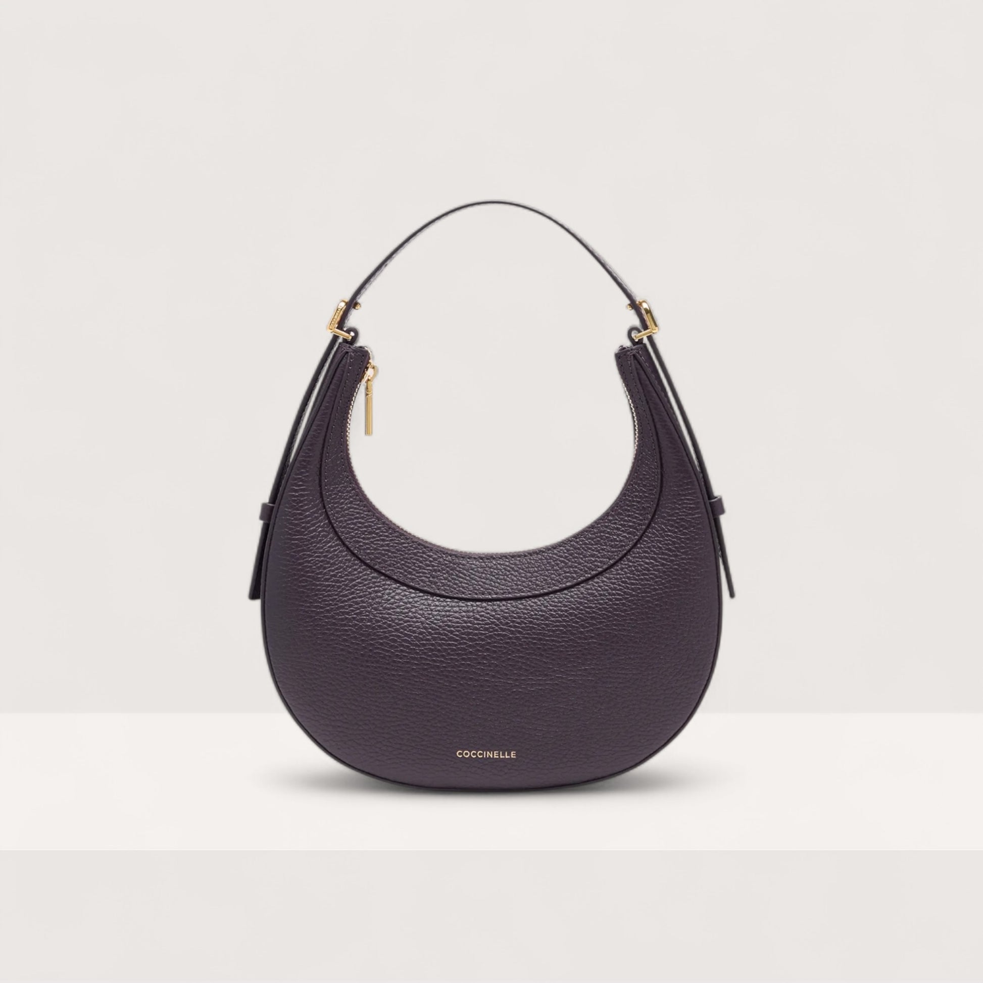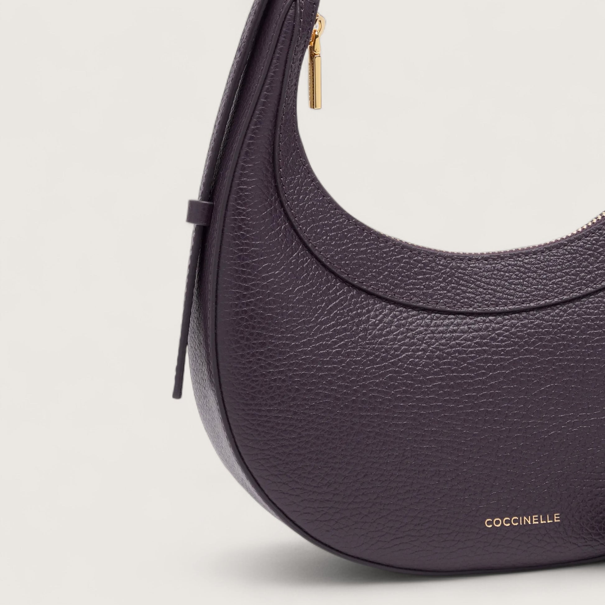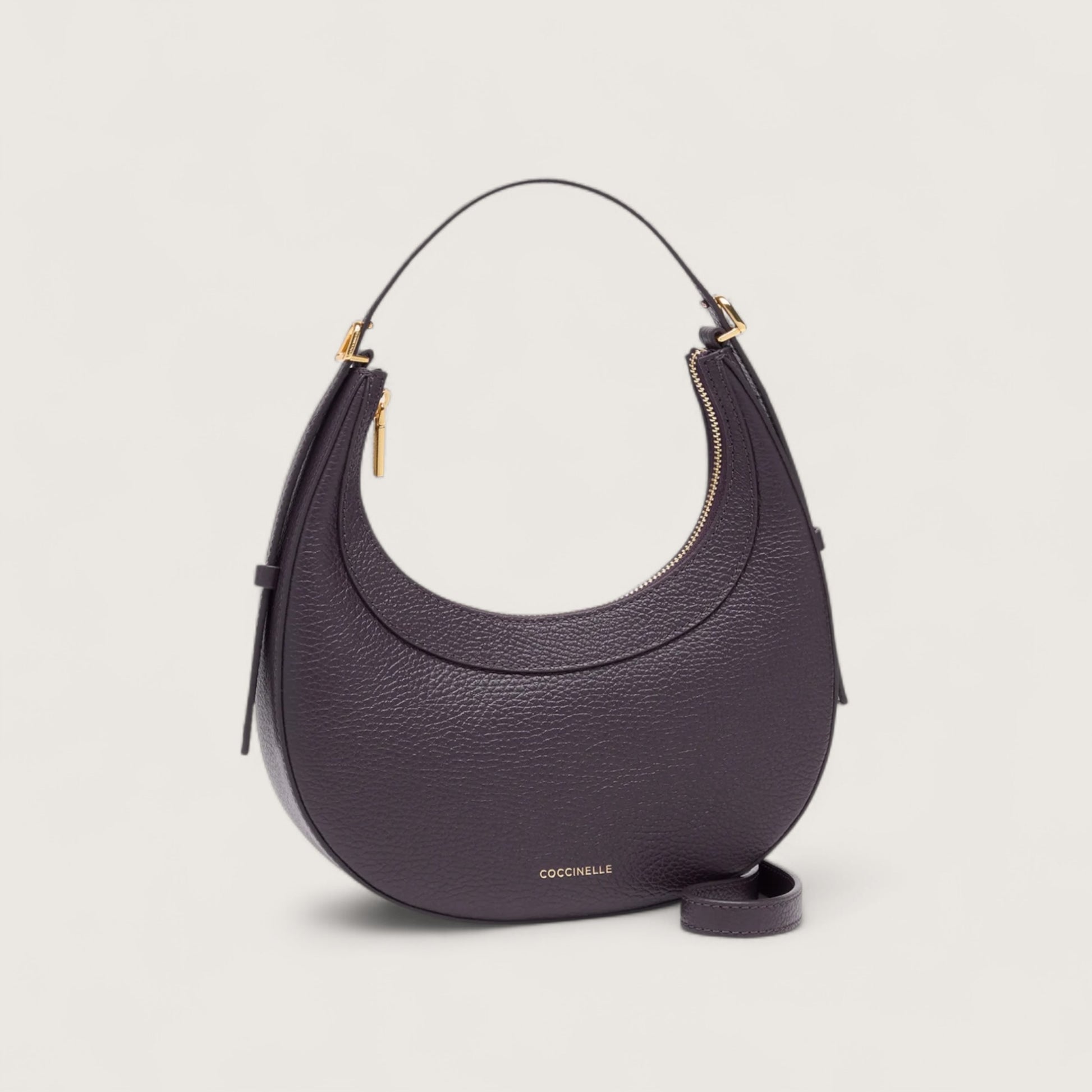 Coccinelle Whisper — це сумка з мінімалістичним дизайном, яку вирізняє округлий силует. Регульований шкіряний плечовий ремінець і деталі у формі медіатора надають їй вишуканості й елегантності, роблячи цю модель ідеальним аксесуаром для будь-якої нагоди. Сумку виготовлено зі шкіри, обробленої на спеціалізованому обладнанні, а потім пом’якшеної методом барабанного тиснення, щоб зберегти її м’якість. Це дуже міцна та легка в догляді шкіра, що робить виріб зручним для щоденного використання.