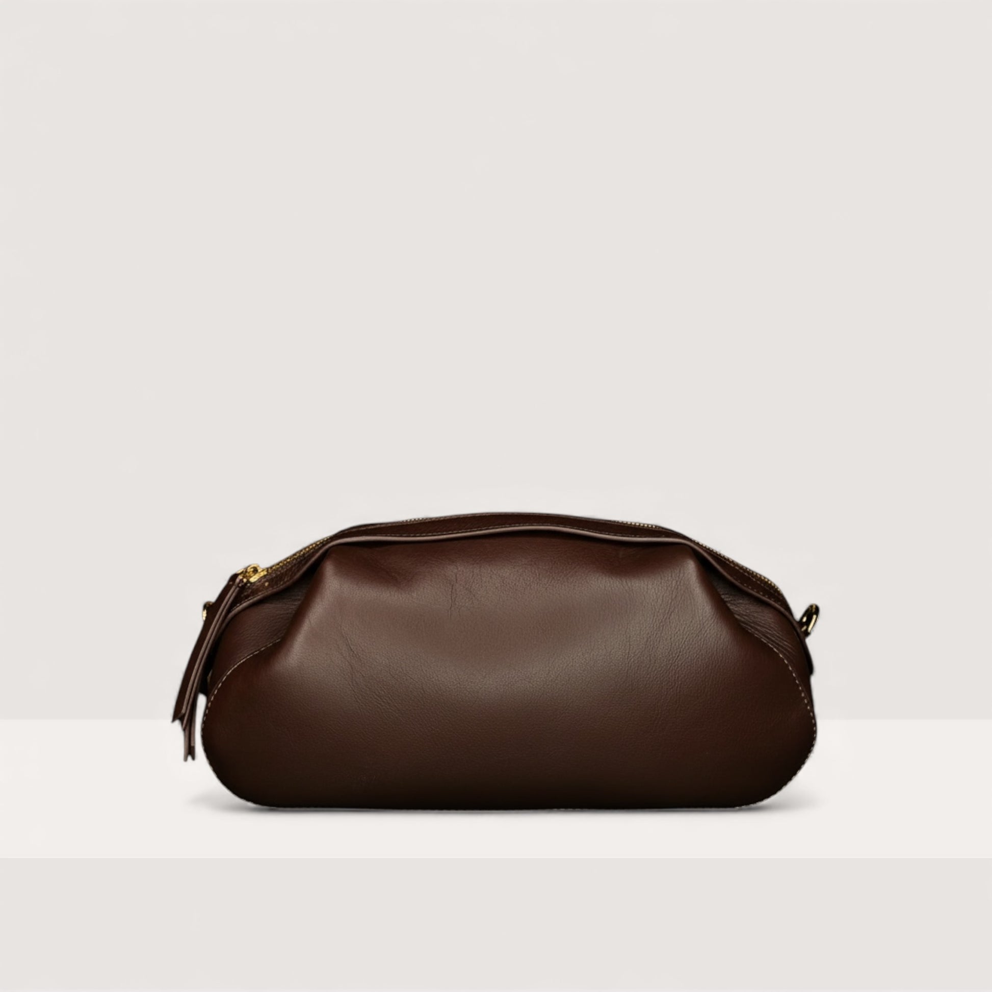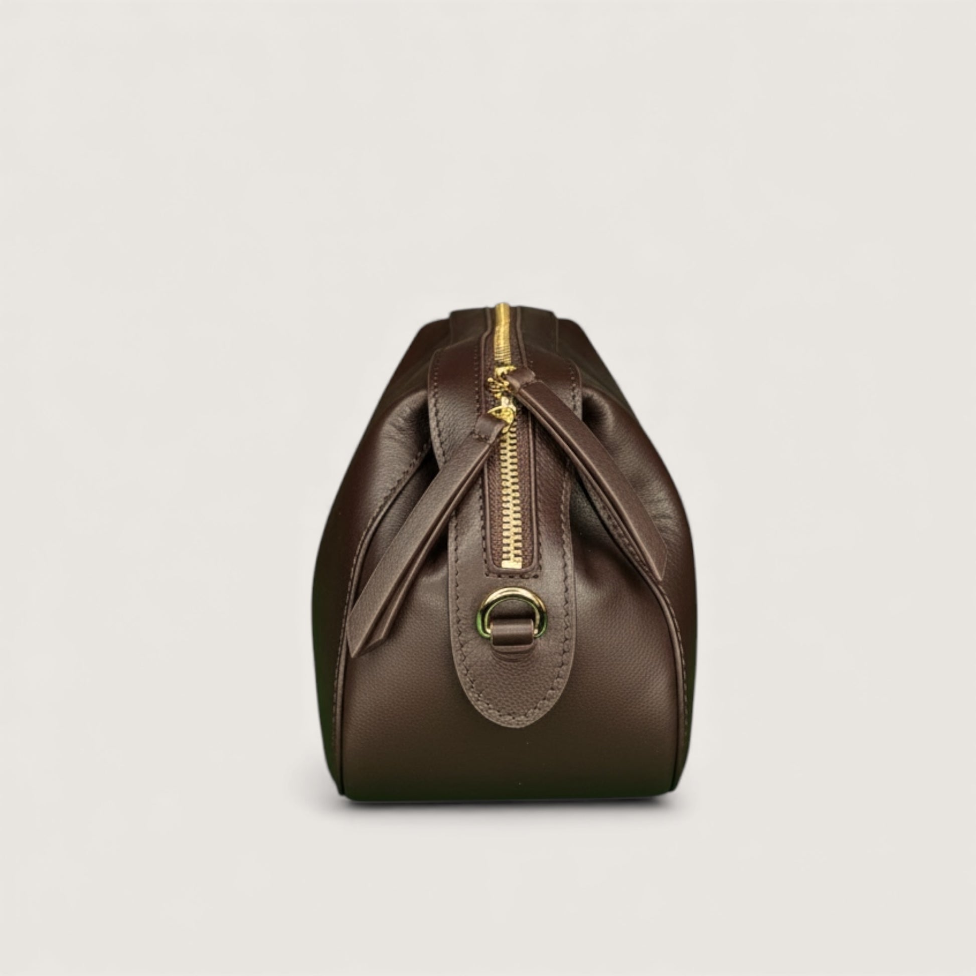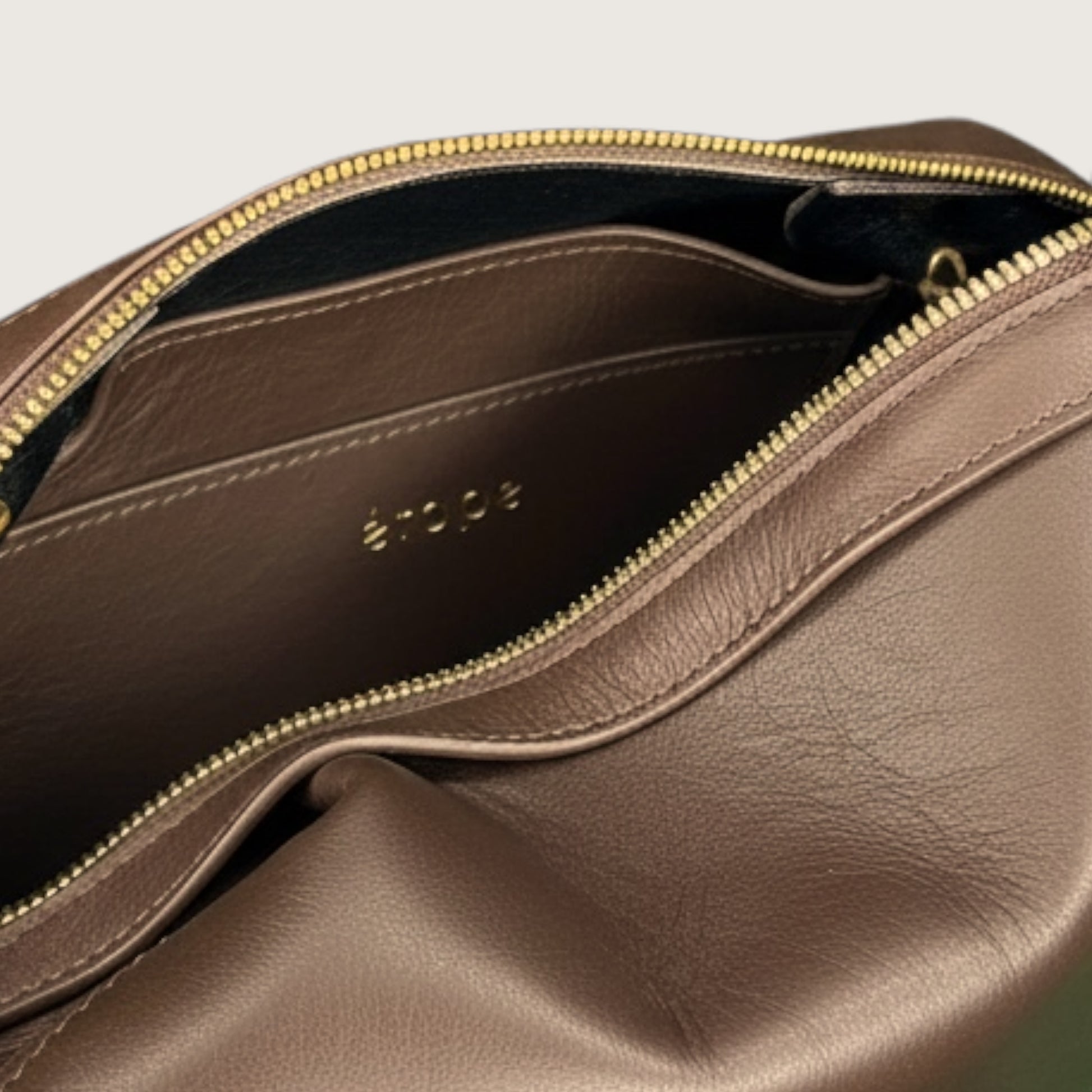 Сумка вирізняється витонченим дизайном з плавними, округлими лініями, які створюють відчуття м’якості та комфорту. Її форма наче обіймає простір — без зайвих кутів, лише гармонія силуету. Вона виглядає стримано, але водночас нестандартно — ніби сучасна інтерпретація класичної елегантності. Така модель легко адаптується до різних образів: буде доречною як у повсякденному житті, так і в більш вишуканих поєднаннях. Її привабливість — у формі, що говорить сама за себе, без потреби в надмірному декорі.