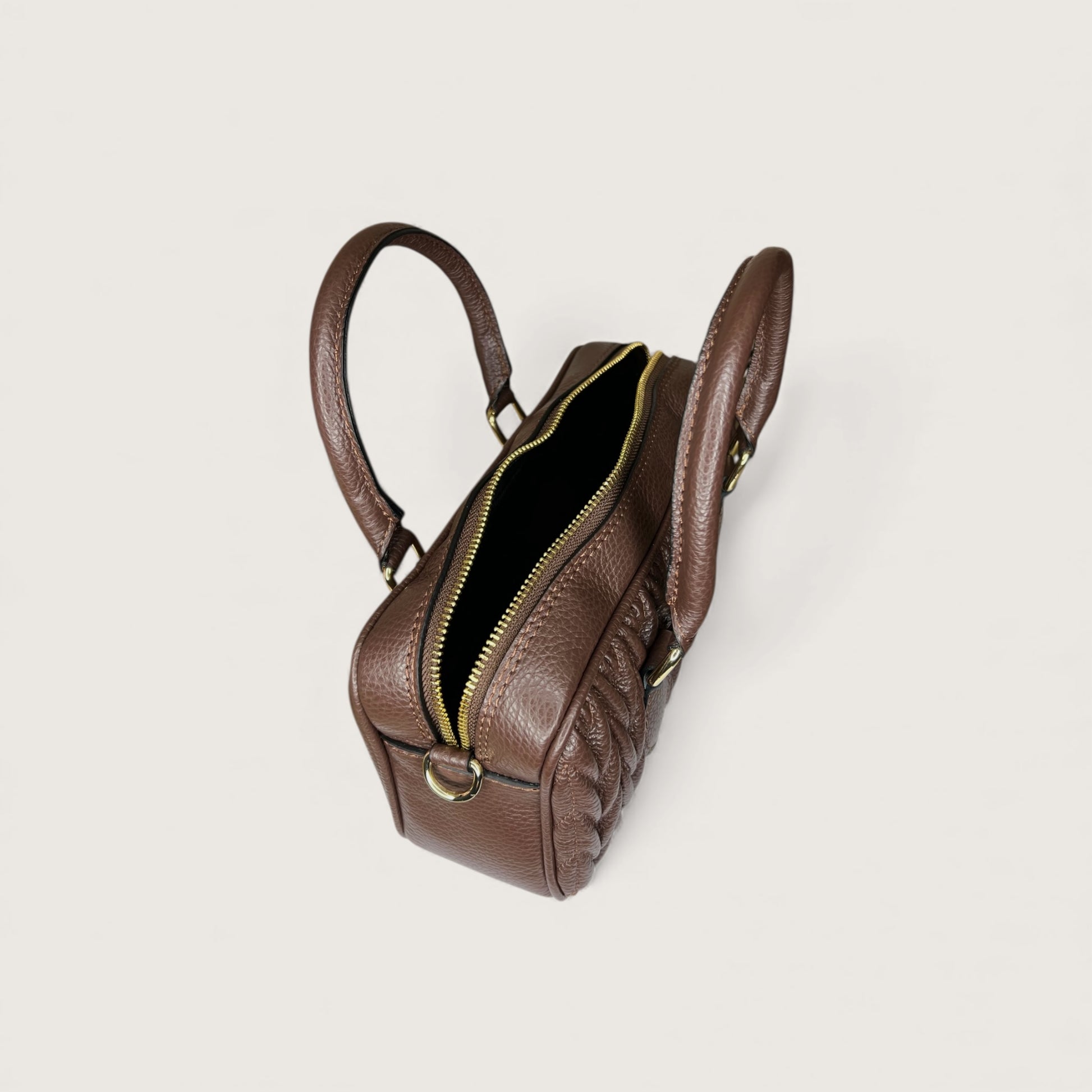 Сумка Piumelli поєднує м’які округлі лінії та акцент на фірмовому мінімалізмі бренду. Компактна, але містка, вона зберігає чітку силуетність завдяки щільній шкірі та рівномірному об’єму по всій довжині. Лаконічний логотип підкреслює елегантність моделі, не перевантажуючи дизайн. Всередині — організований простір для щоденних речей, а зручна застібка забезпечує швидкий доступ.