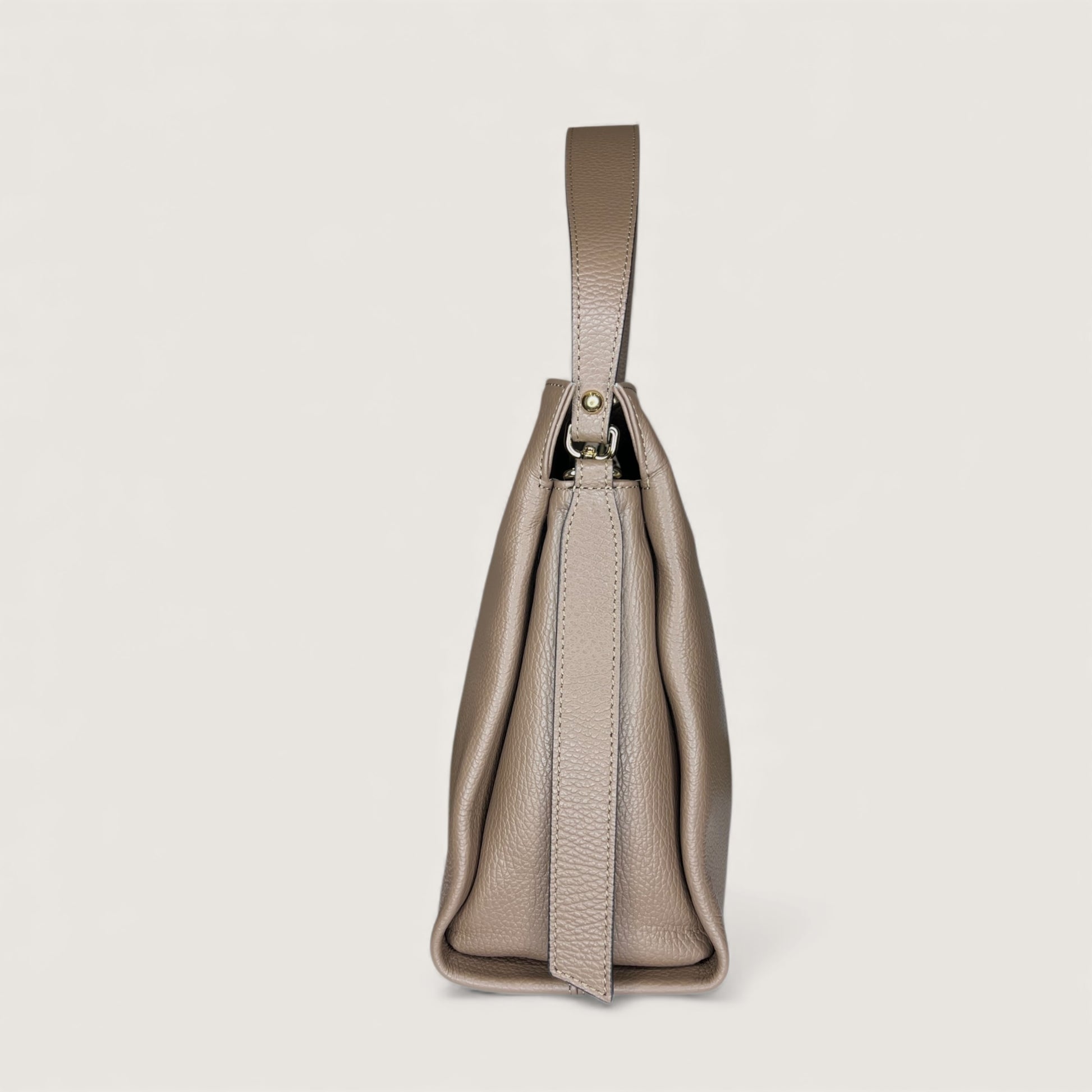 Ця сумка – елегантна та стильна, виконана з зернистої шкіри. Її прикрашають фірмовий логотип бренду та плетена ручка, що додають їй витонченості. Вона виглядає ідеально для щоденного використання або для виходу в світ – поєднує в собі практичність, розкіш та сучасний стиль