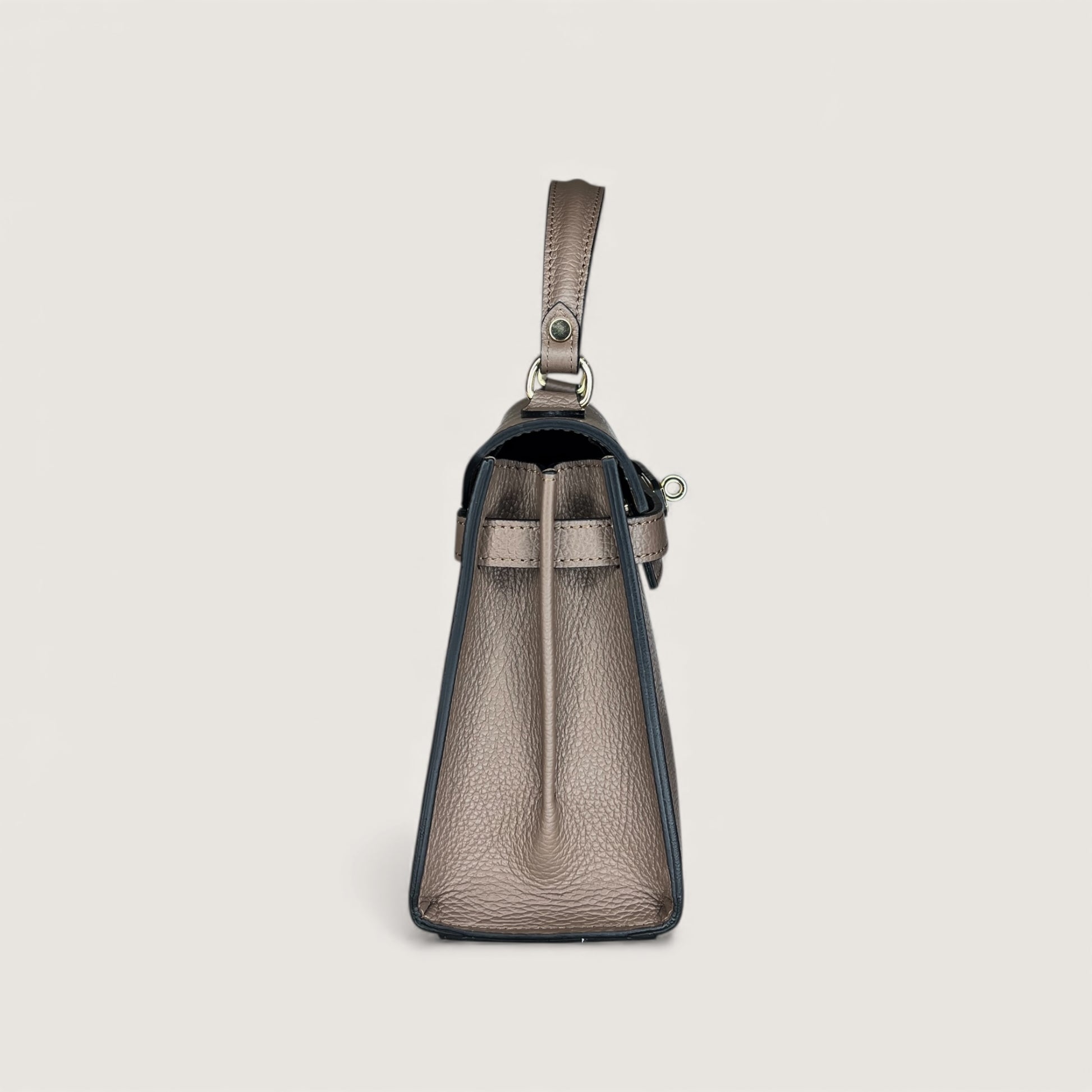 Ця сумка є вдалим поєднанням витонченого стилю та функціональності. Вона створена як надійний супутник жінки на кожен день, відзначаючись увагою до деталей і зручно спланованим внутрішнім простором. Зерниста фактура шкіри надає моделі м’якості та вишуканості. Для її виготовлення використовується натуральна шкіра, яка проходить спеціальну механічну обробку, а потім пом’якшується в барабані для збереження її ніжної структури. Такий матеріал не тільки приємний на дотик, а й довговічний та невибагливий у догляді, що робить сумку ідеальним вибором для щоденного використання.