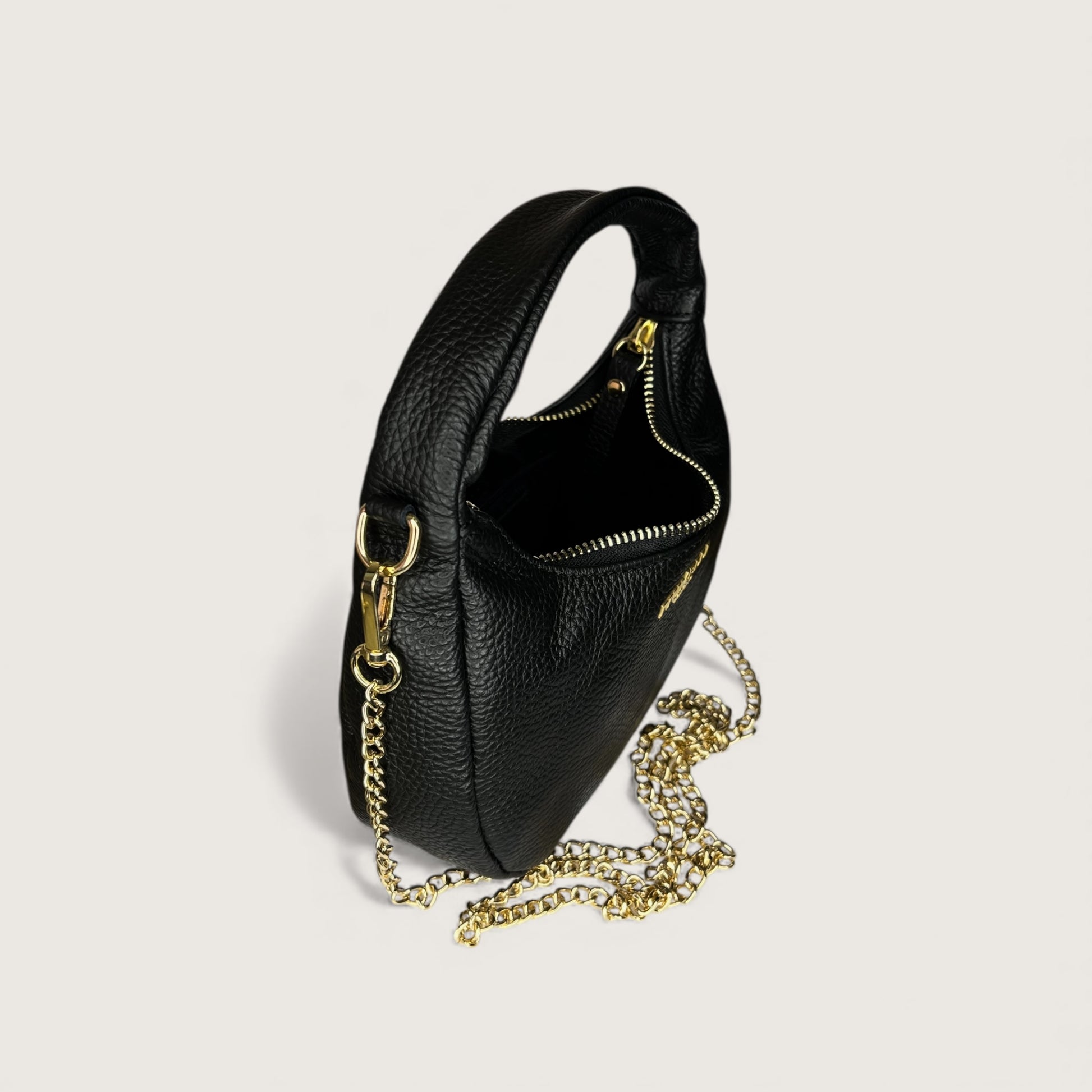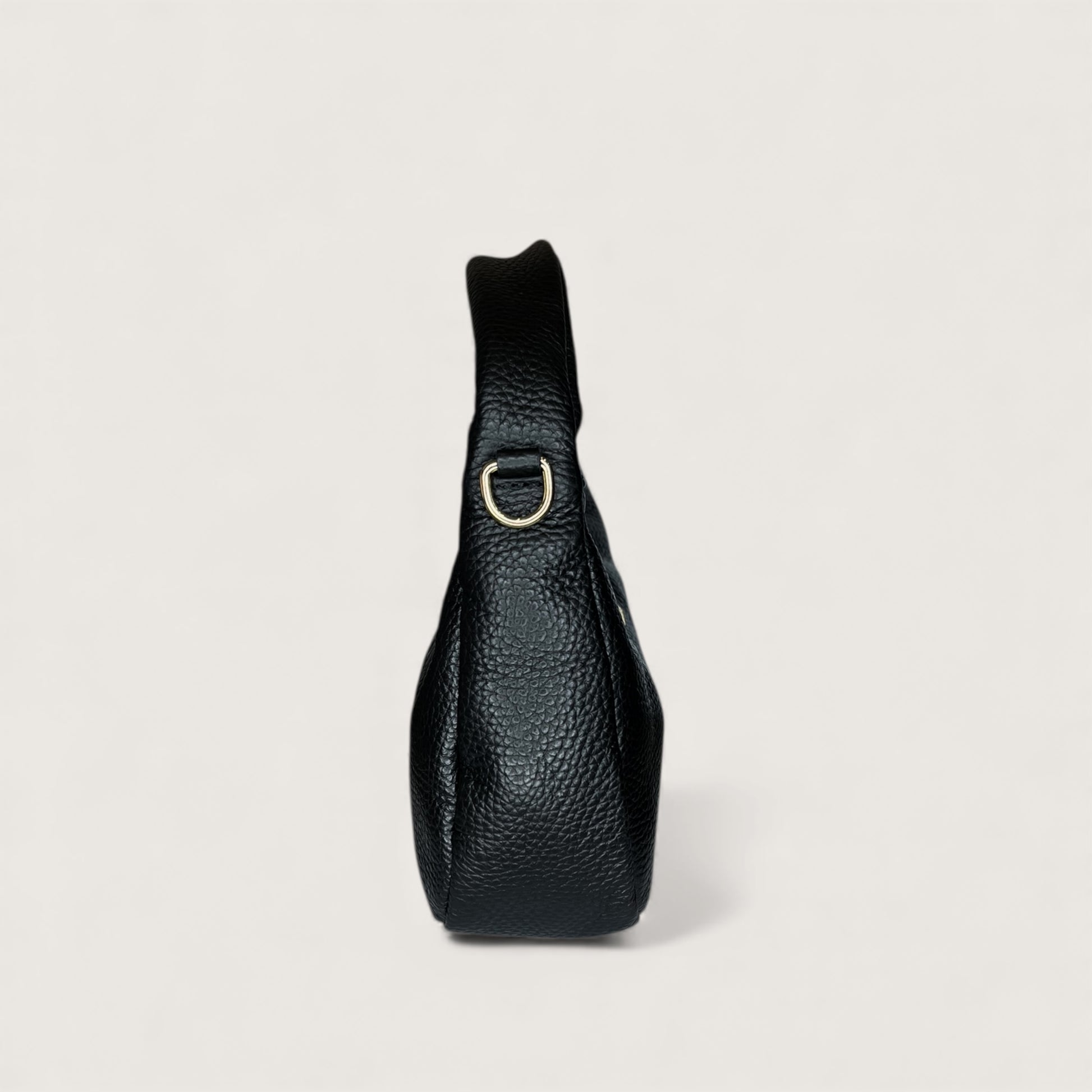 Сумка має плавний, м’який силует, що створює вишуканий і жіночний вигляд. Округла форма робить модель компактною, але водночас місткою — необхідні речі легко розташовуються завдяки продуманому внутрішньому простору. Шкіра зерниста, приємна на дотик текстура та мінімалістичні деталі підкреслюють стриманий елегантний стиль.