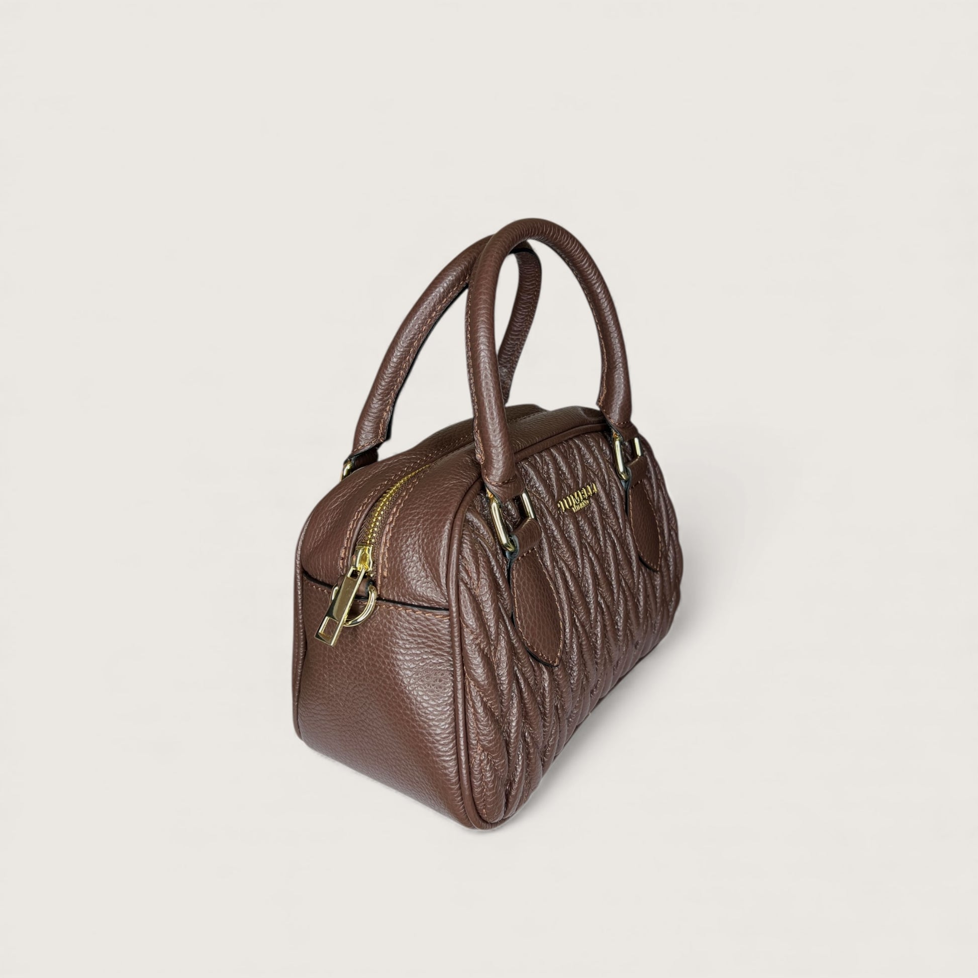 Ця сумка – елегантна та стильна, виконана з зернистої шкіри. Її прикрашають фірмовий логотип бренду та плетена ручка, що додають їй витонченості. Вона виглядає ідеально для щоденного використання або для виходу в світ – поєднує в собі практичність, розкіш та сучасний стиль.